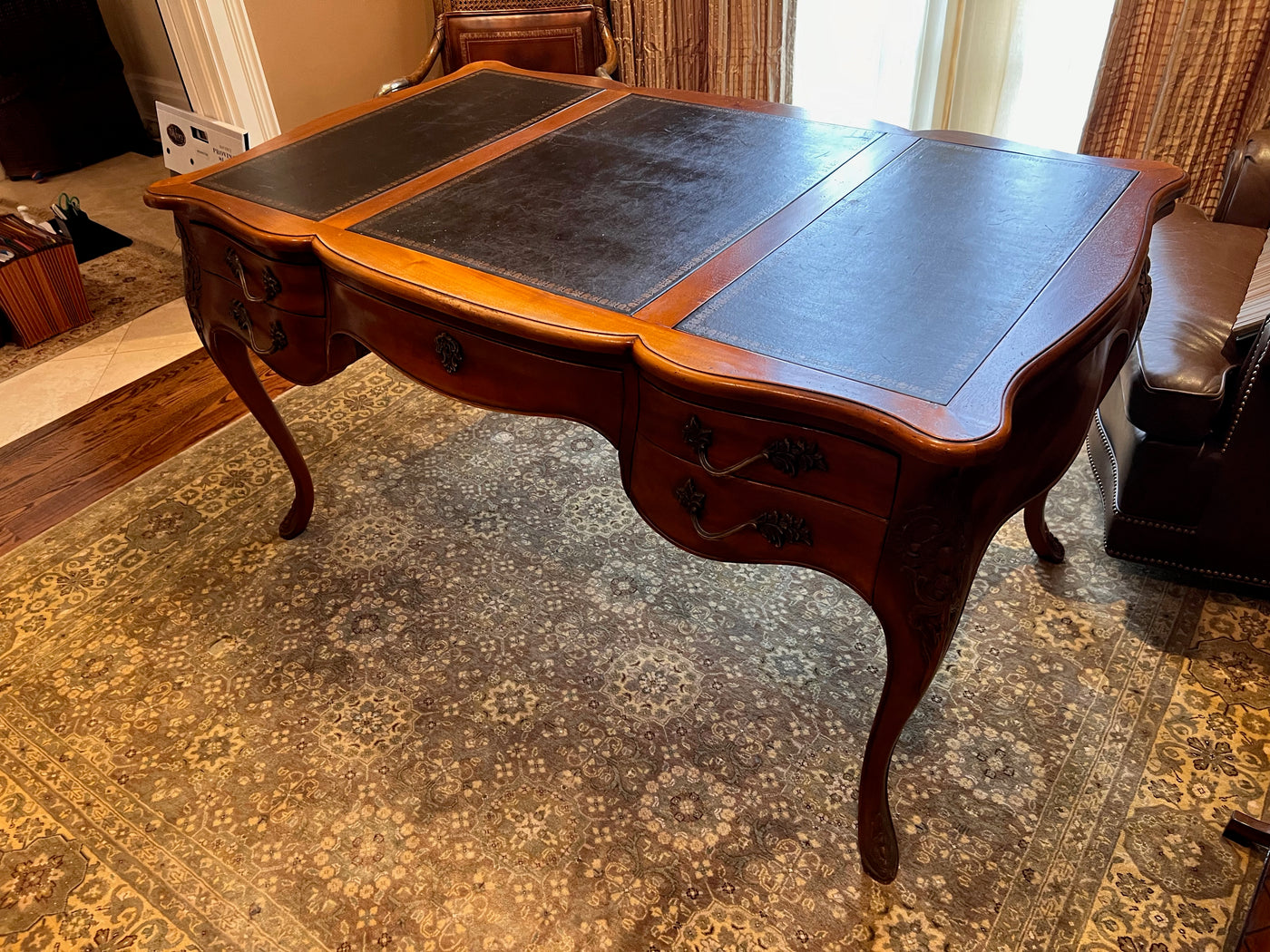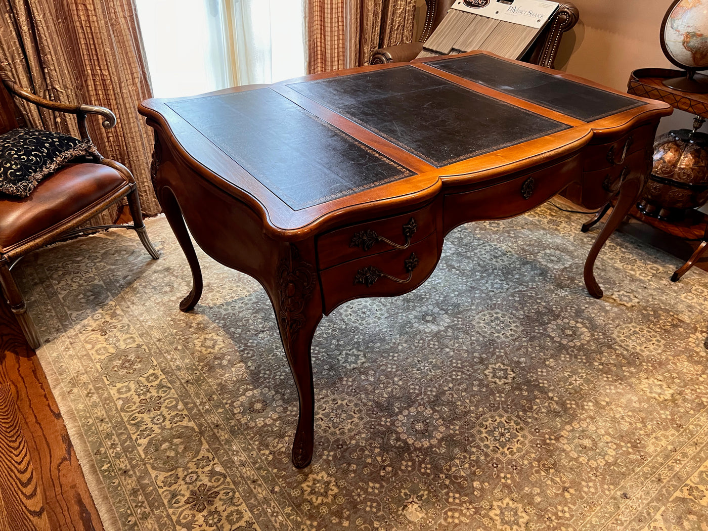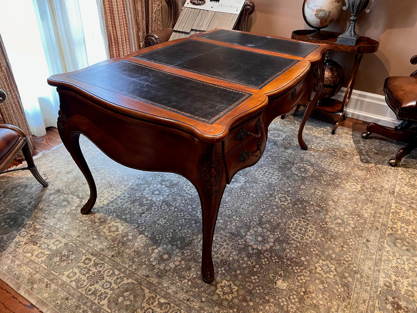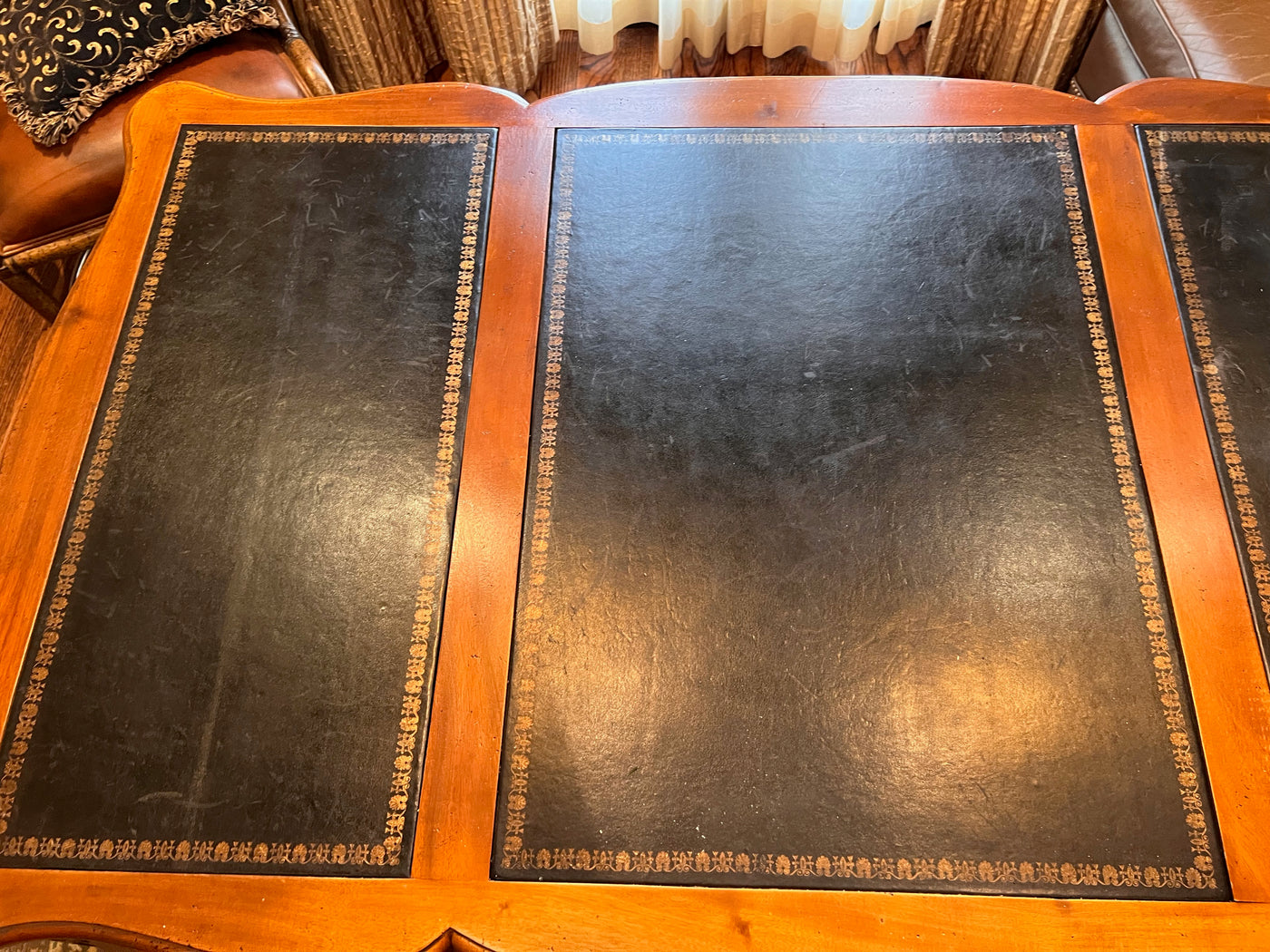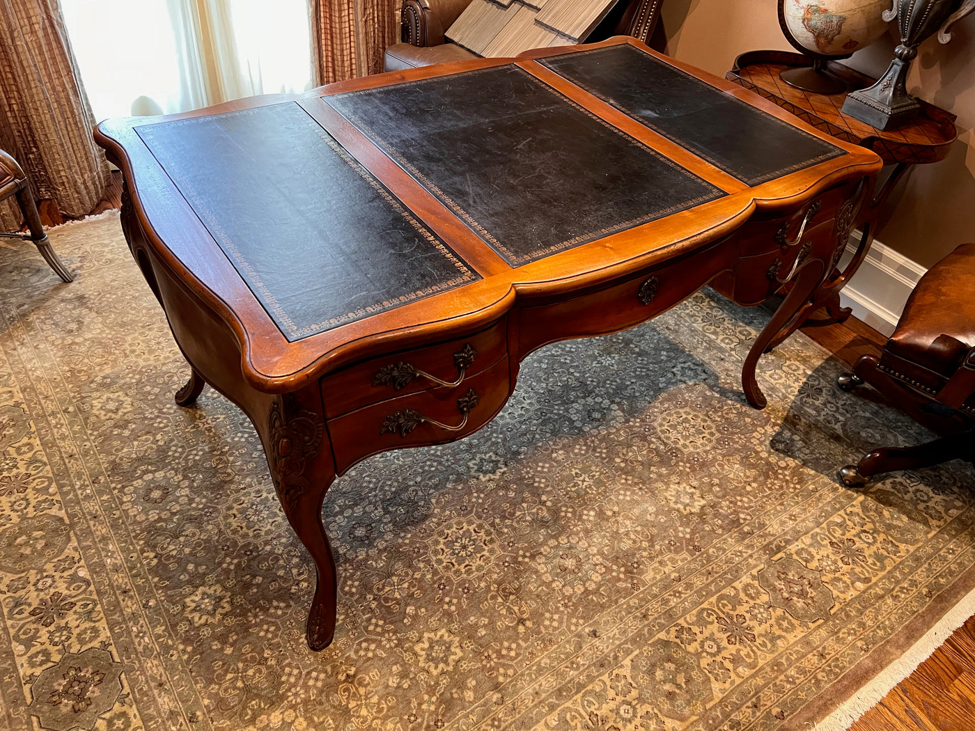 Louis XV Executive Leather Top Desk, Made in Indonesia. There are 5 drawers on BOTH sides of the desk. 56" x 34" 30"h