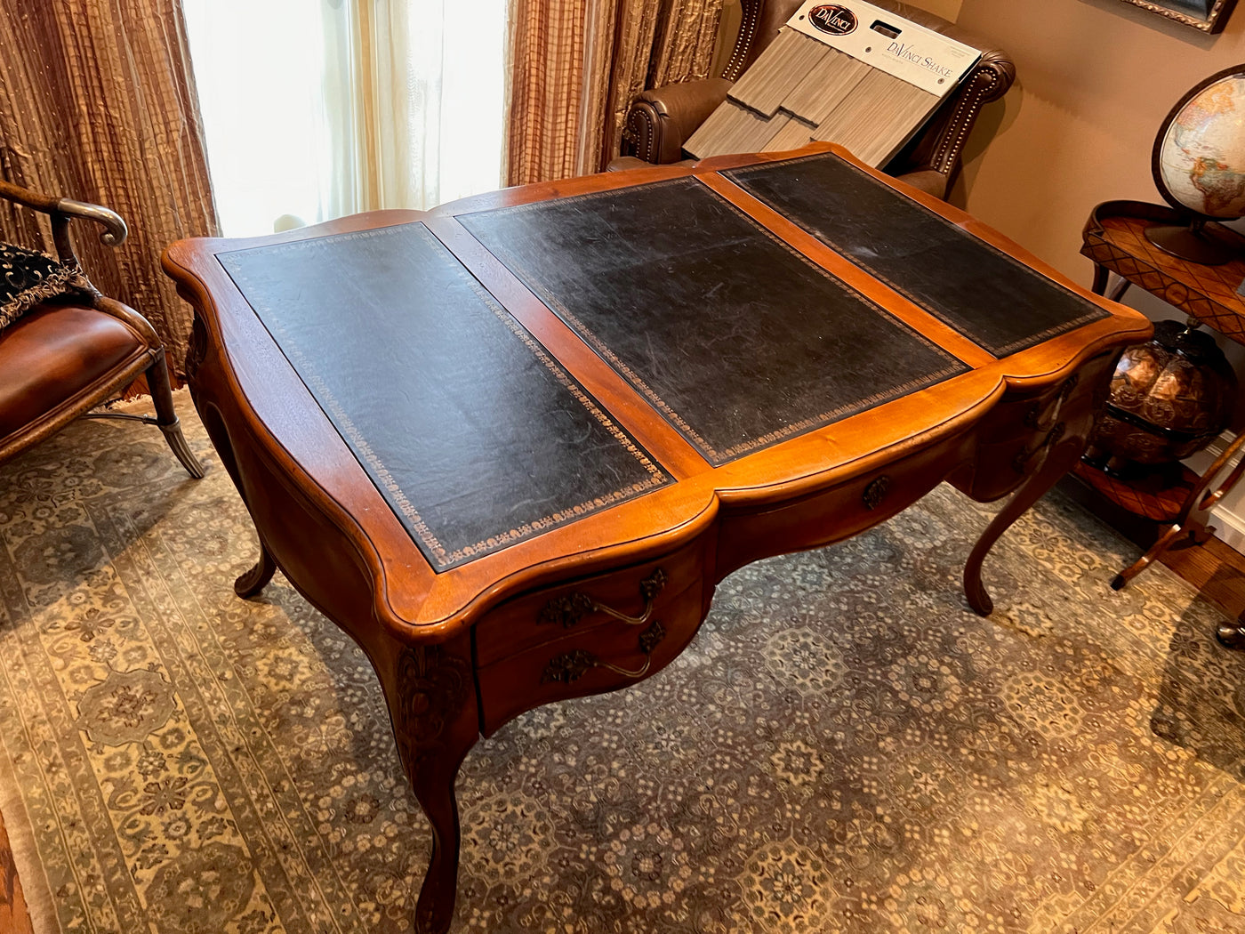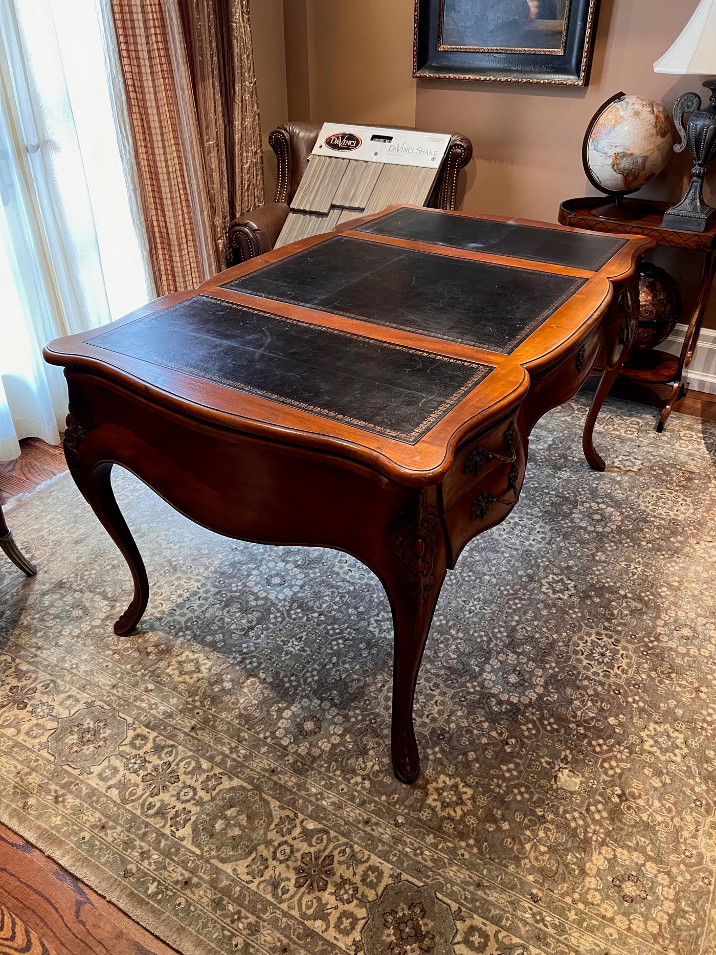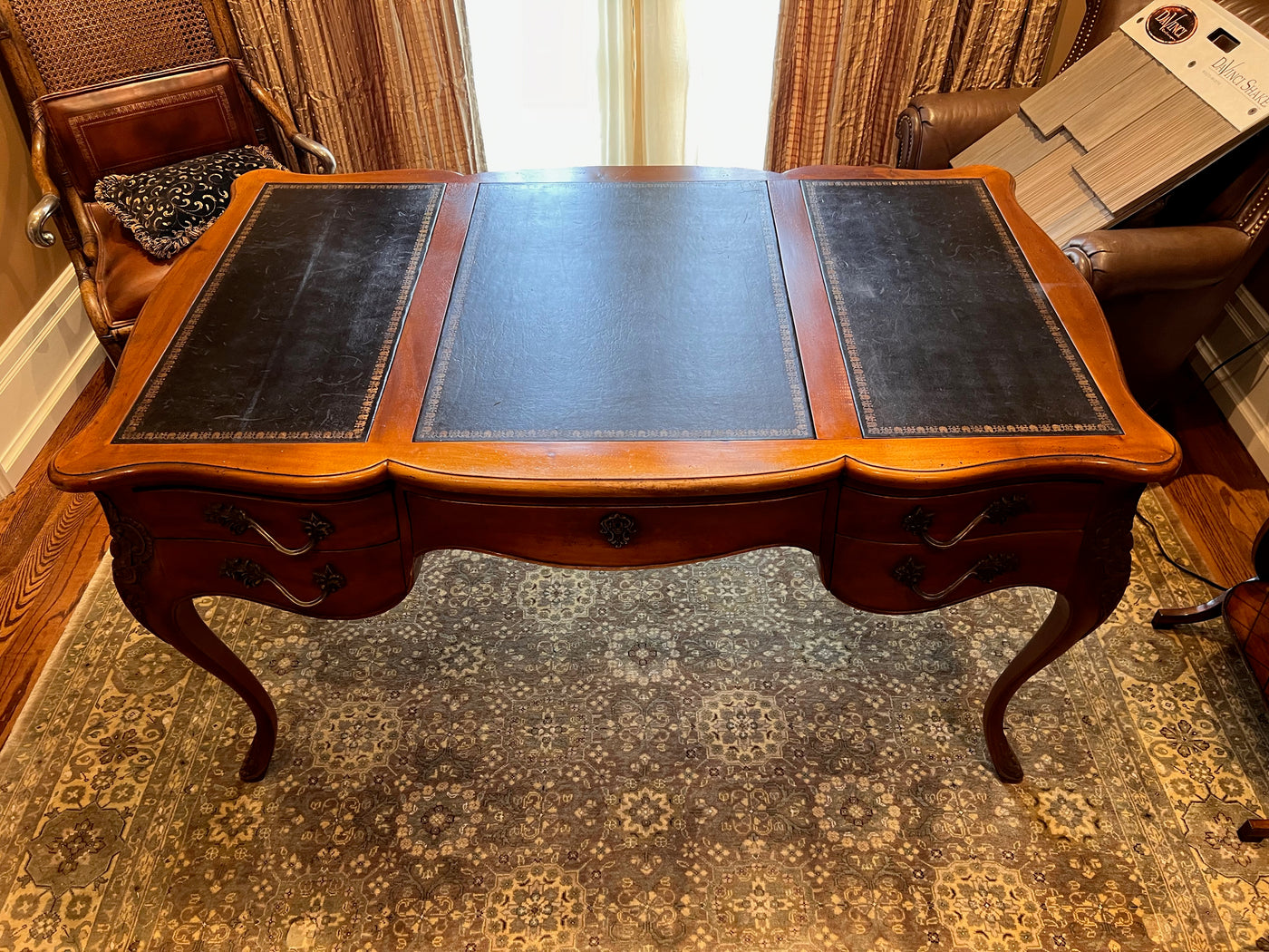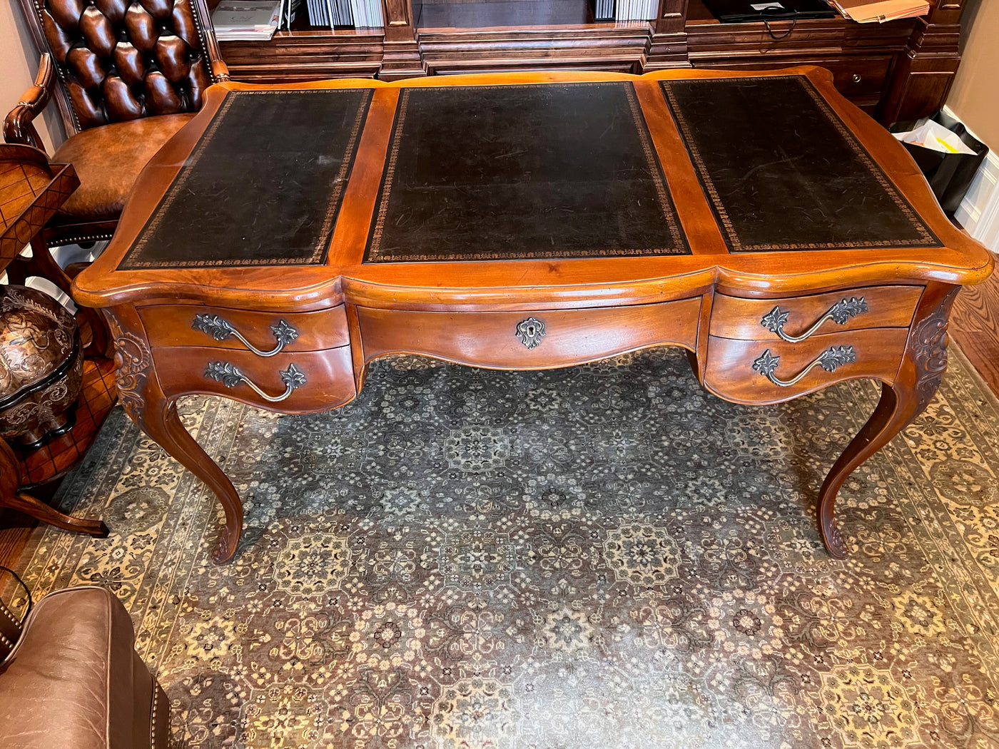 Louis XV Executive Leather Top Desk, Made in Indonesia. There are 5 drawers on BOTH sides of the desk. 56" x 34" 30"h