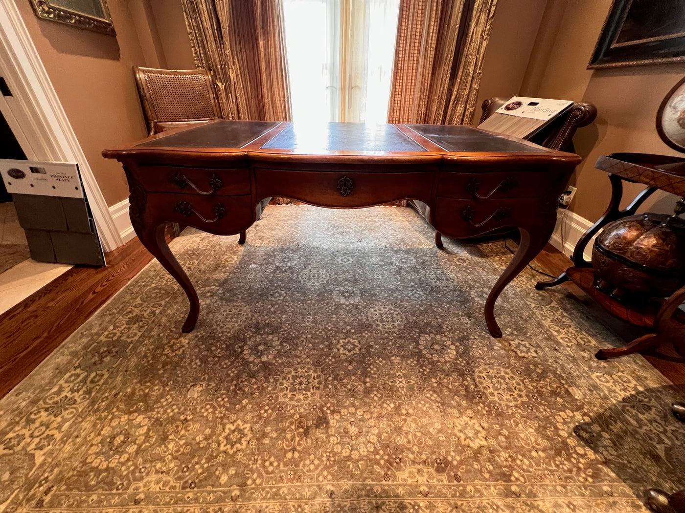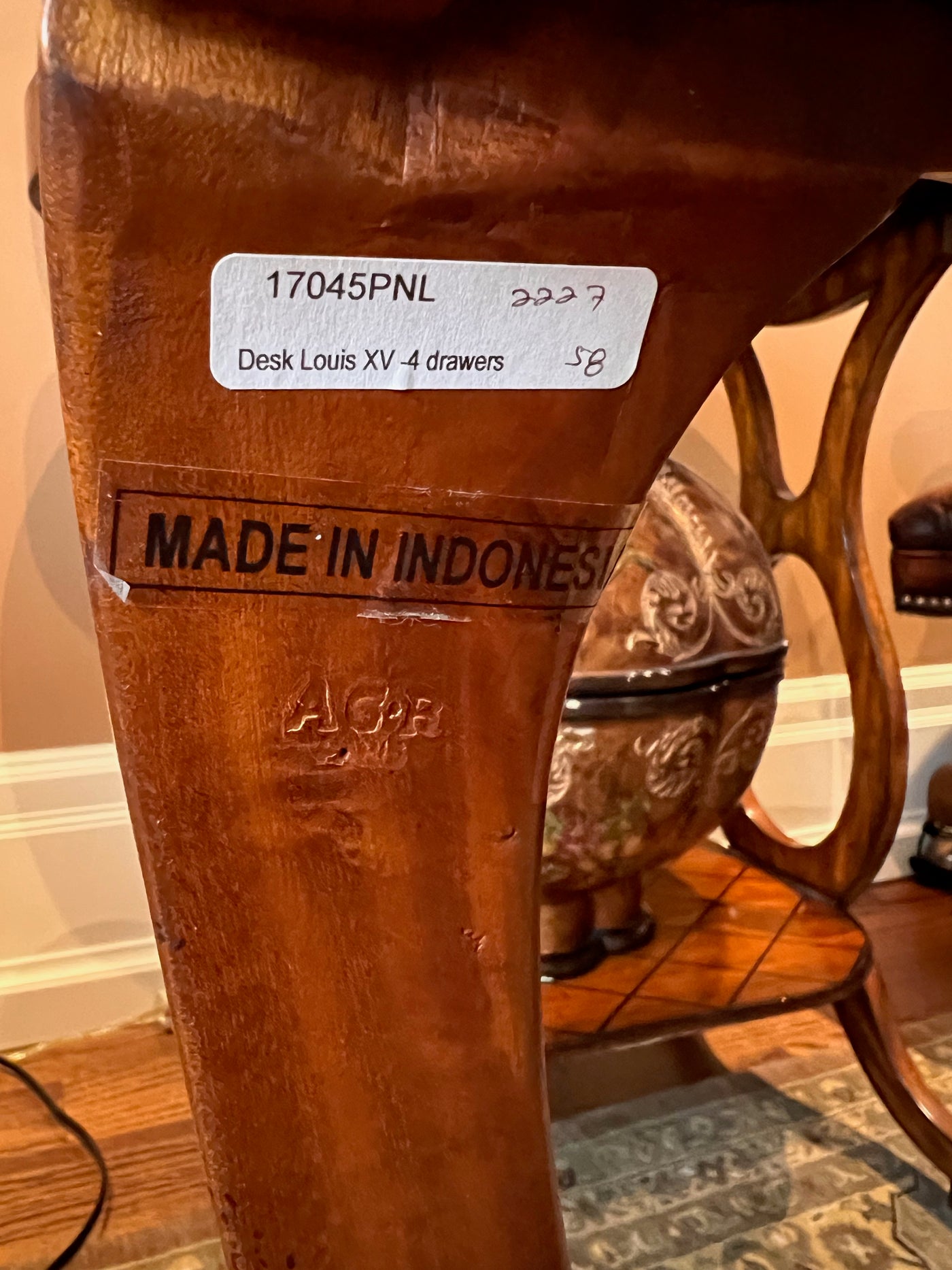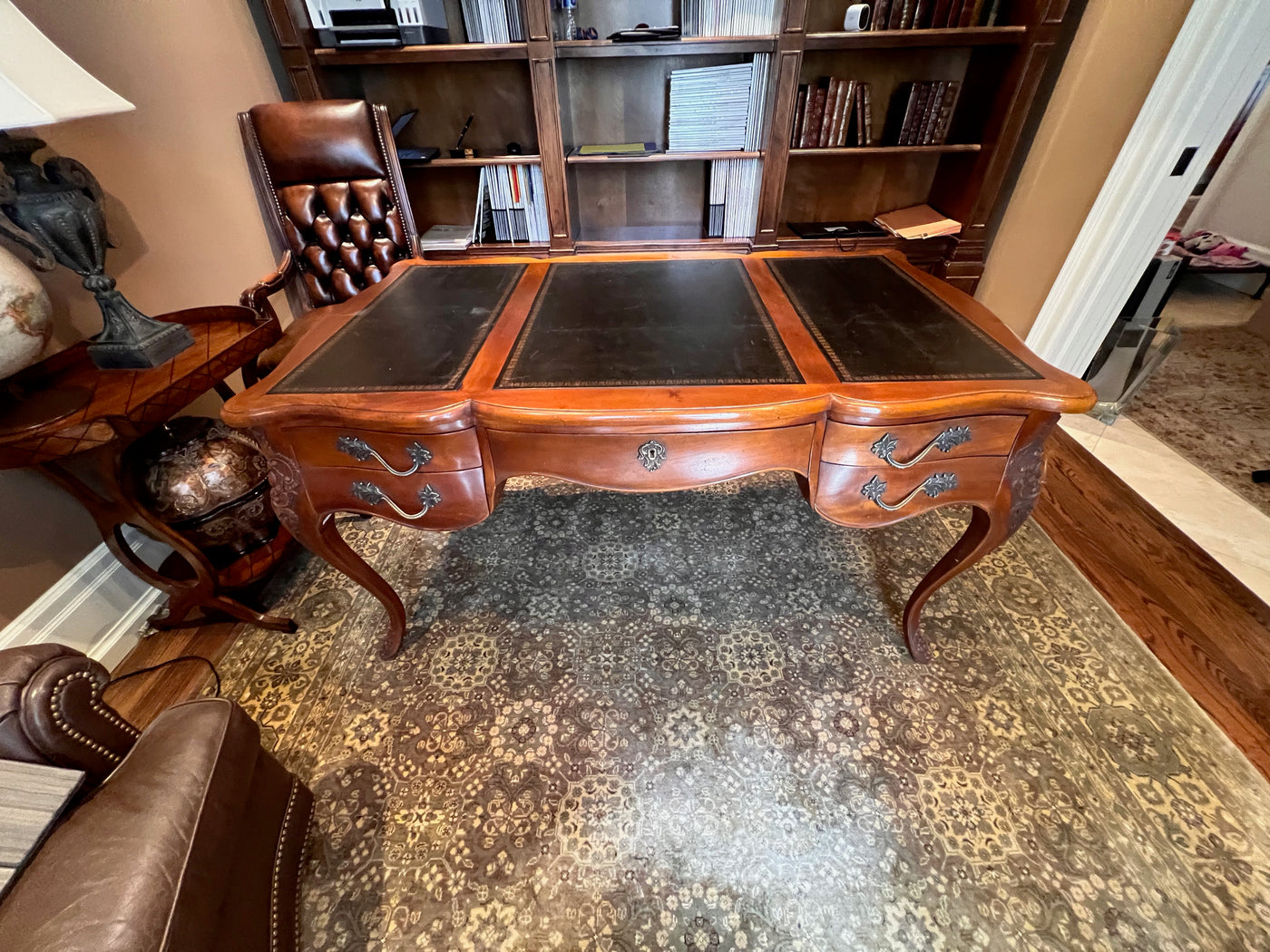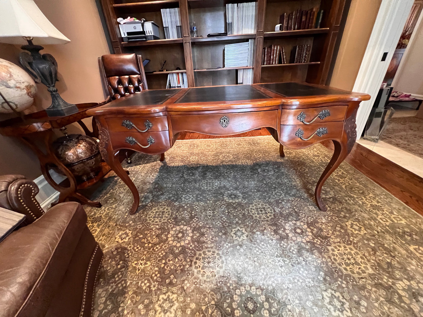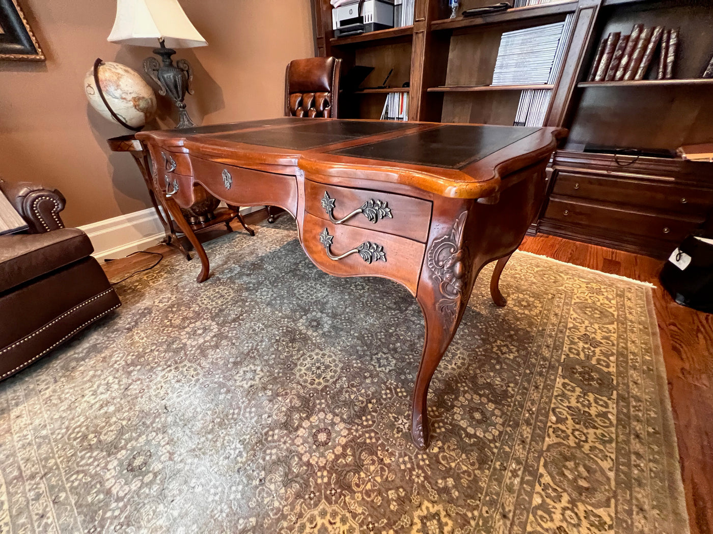 Louis XV Executive Leather Top Desk, Made in Indonesia. There are 5 drawers on BOTH sides of the desk. 56" x 34" 30"h