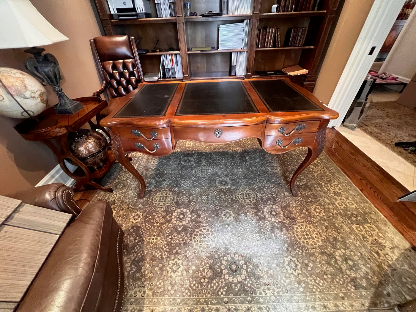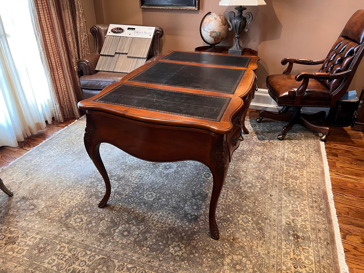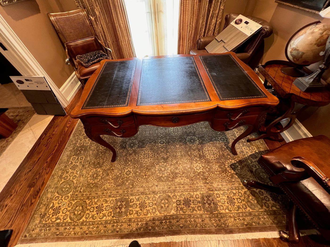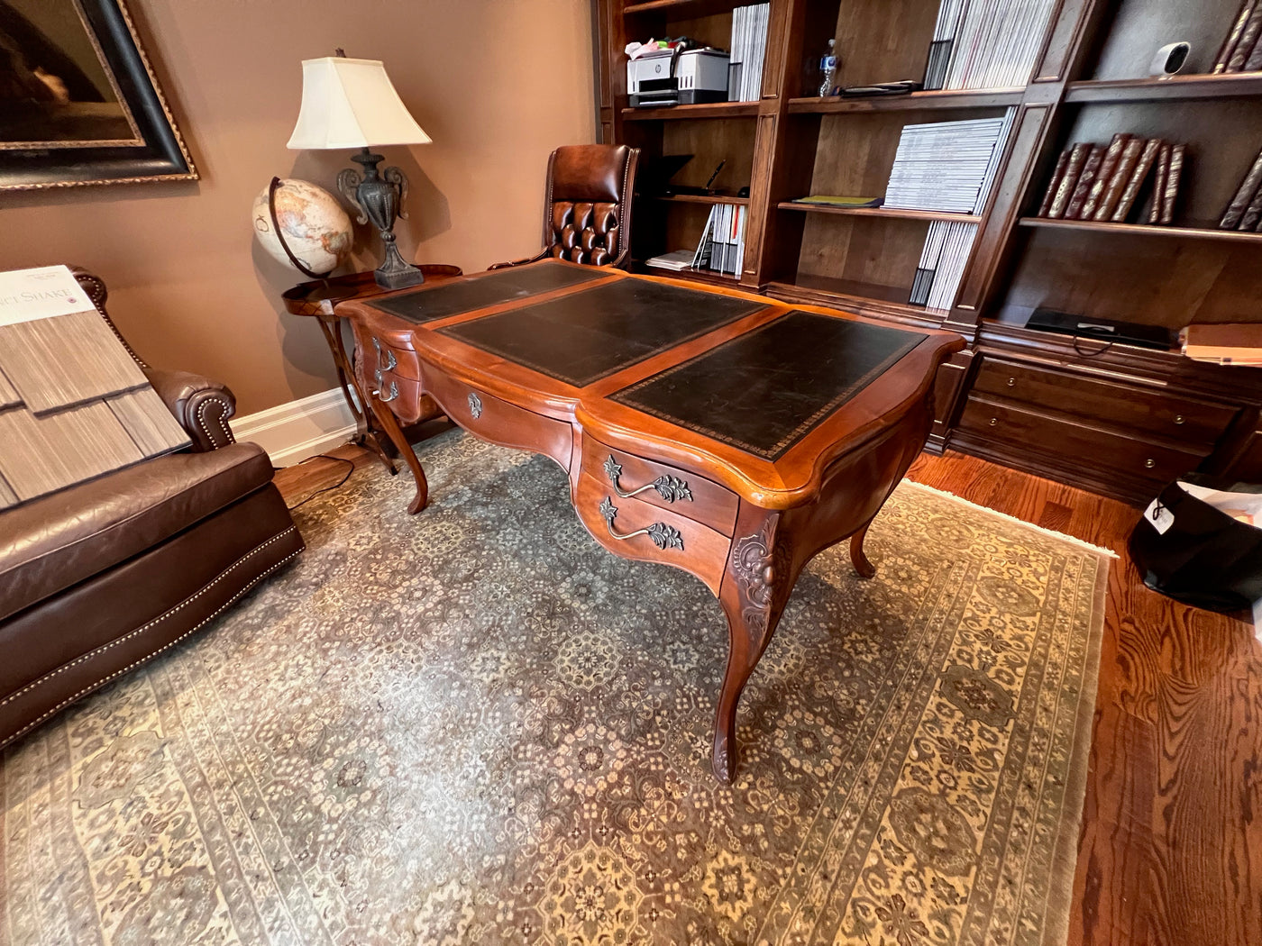 Louis XV Executive Leather Top Desk, Made in Indonesia. There are 5 drawers on BOTH sides of the desk. 56" x 34" 30"h