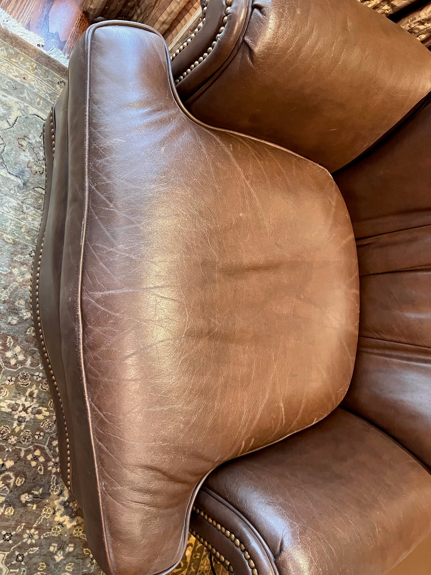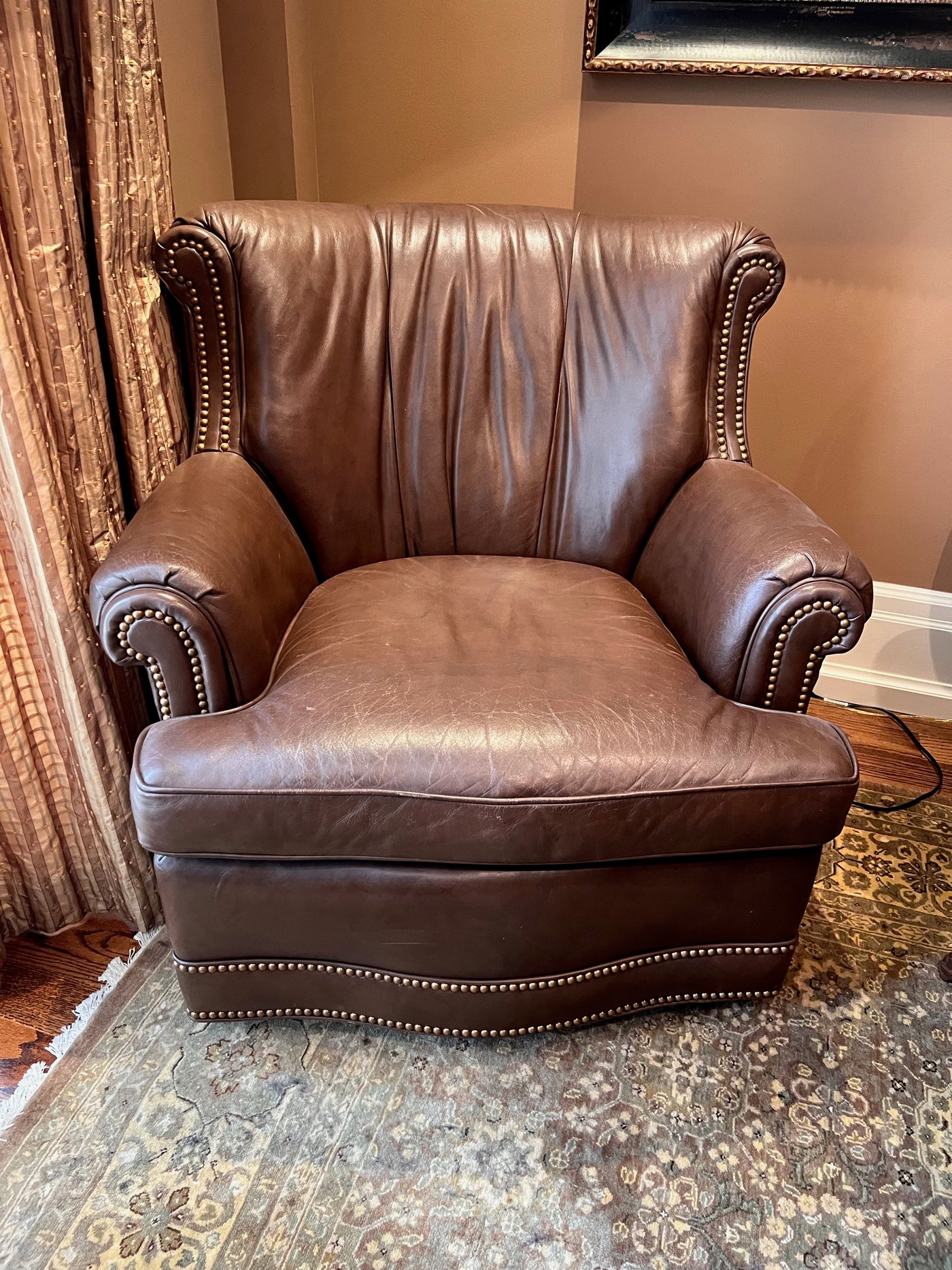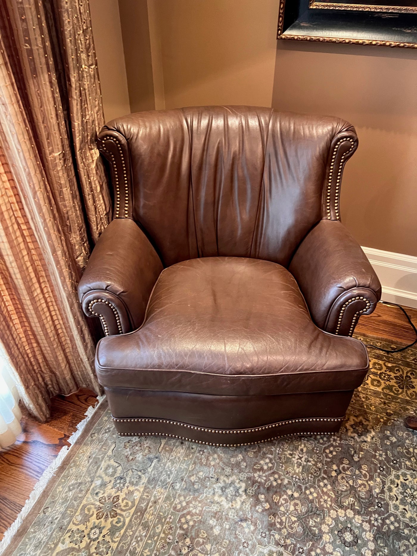 Condition: Overall in good condition. The front edge and arms have slight wear consistent with age and normal use. There are 2 marks on the top edge of the chair. Please clearly view all pictures.