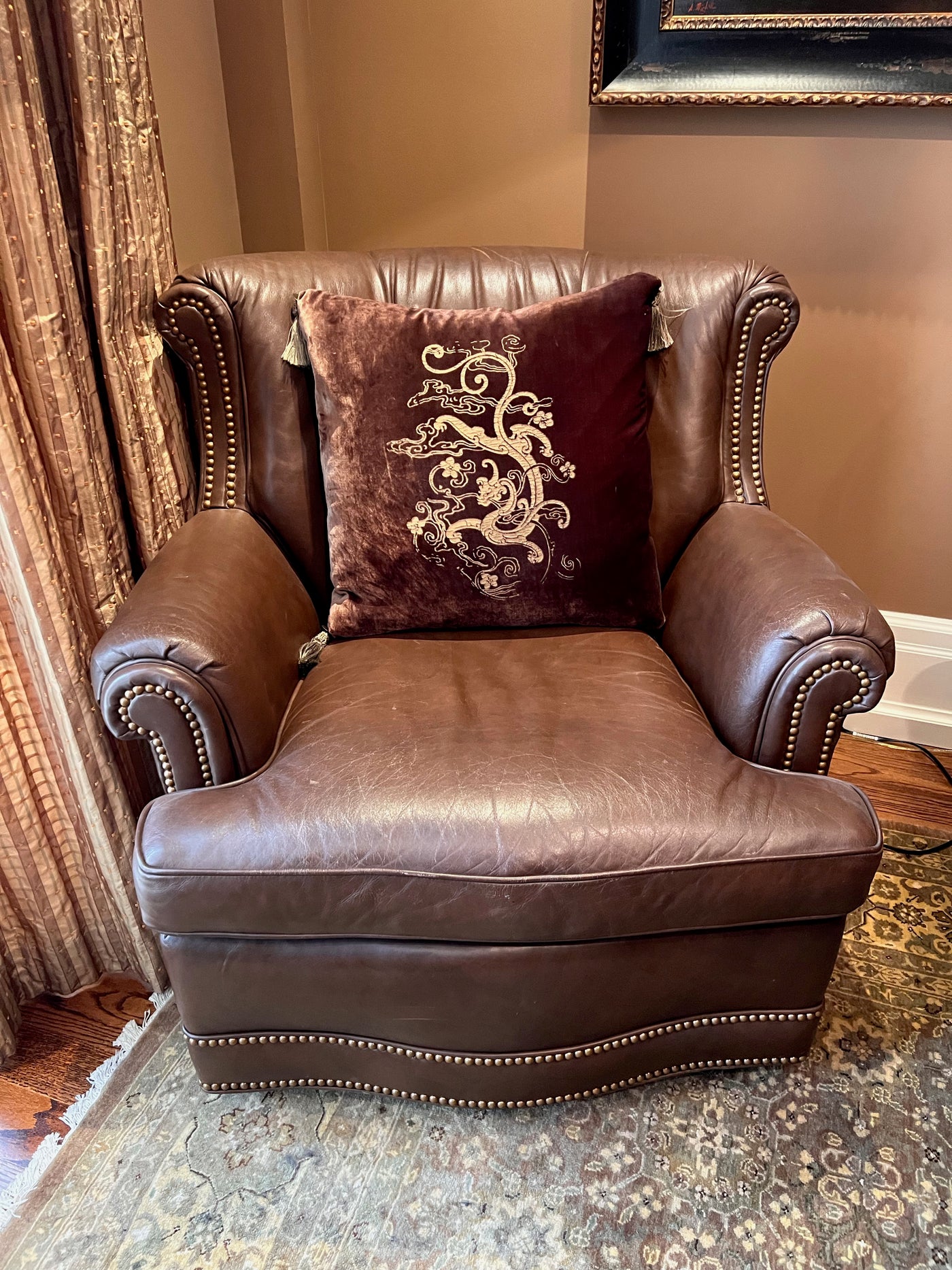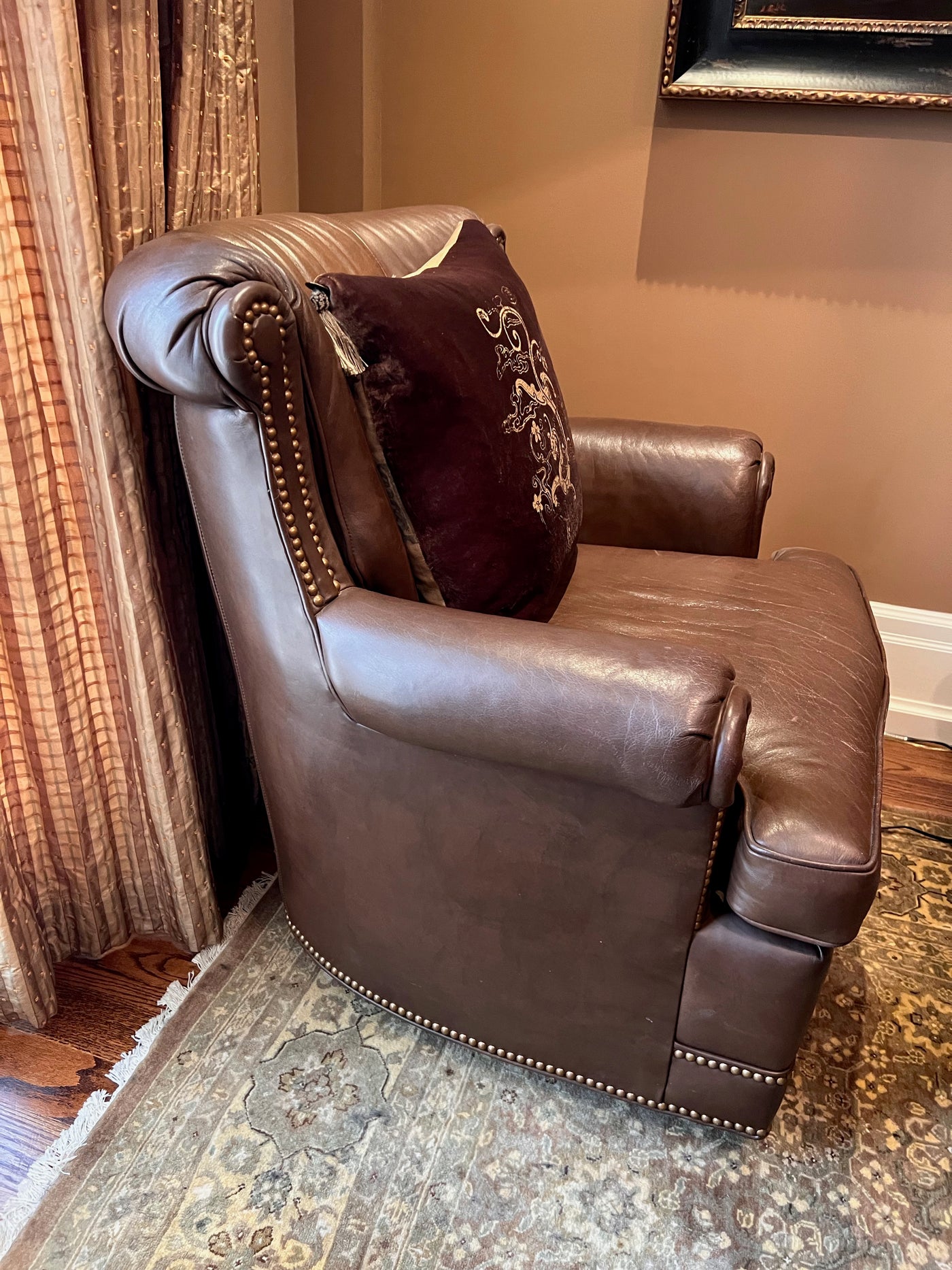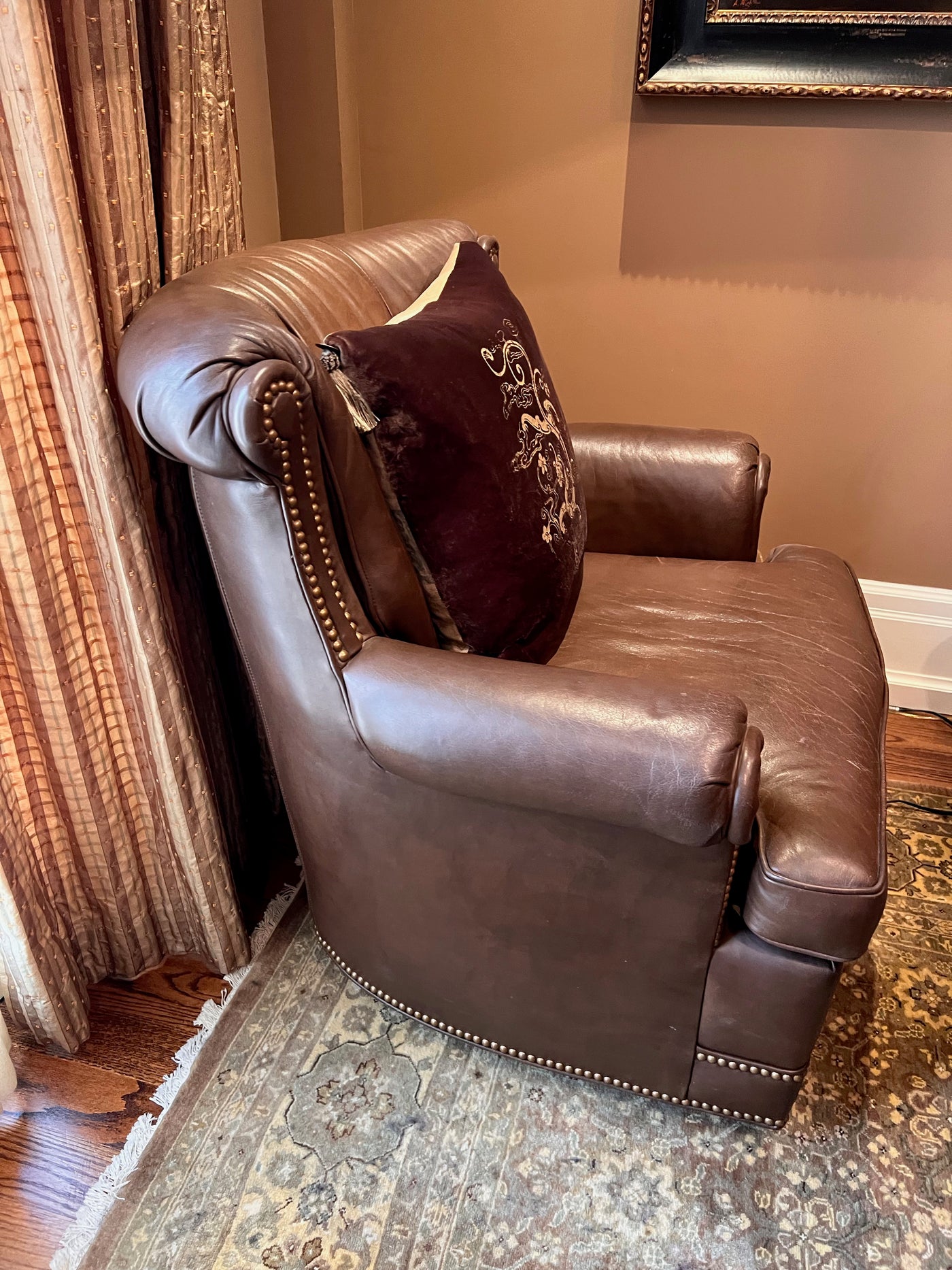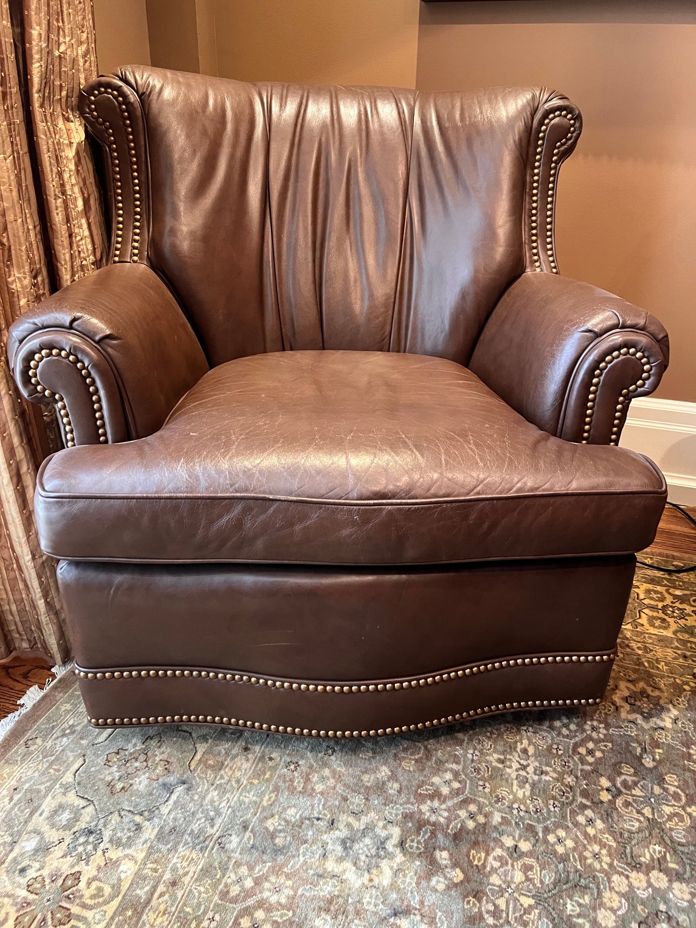Condition: Overall in good condition. The front edge and arms have slight wear consistent with age and normal use. There are 2 marks on the top edge of the chair. Please clearly view all pictures.