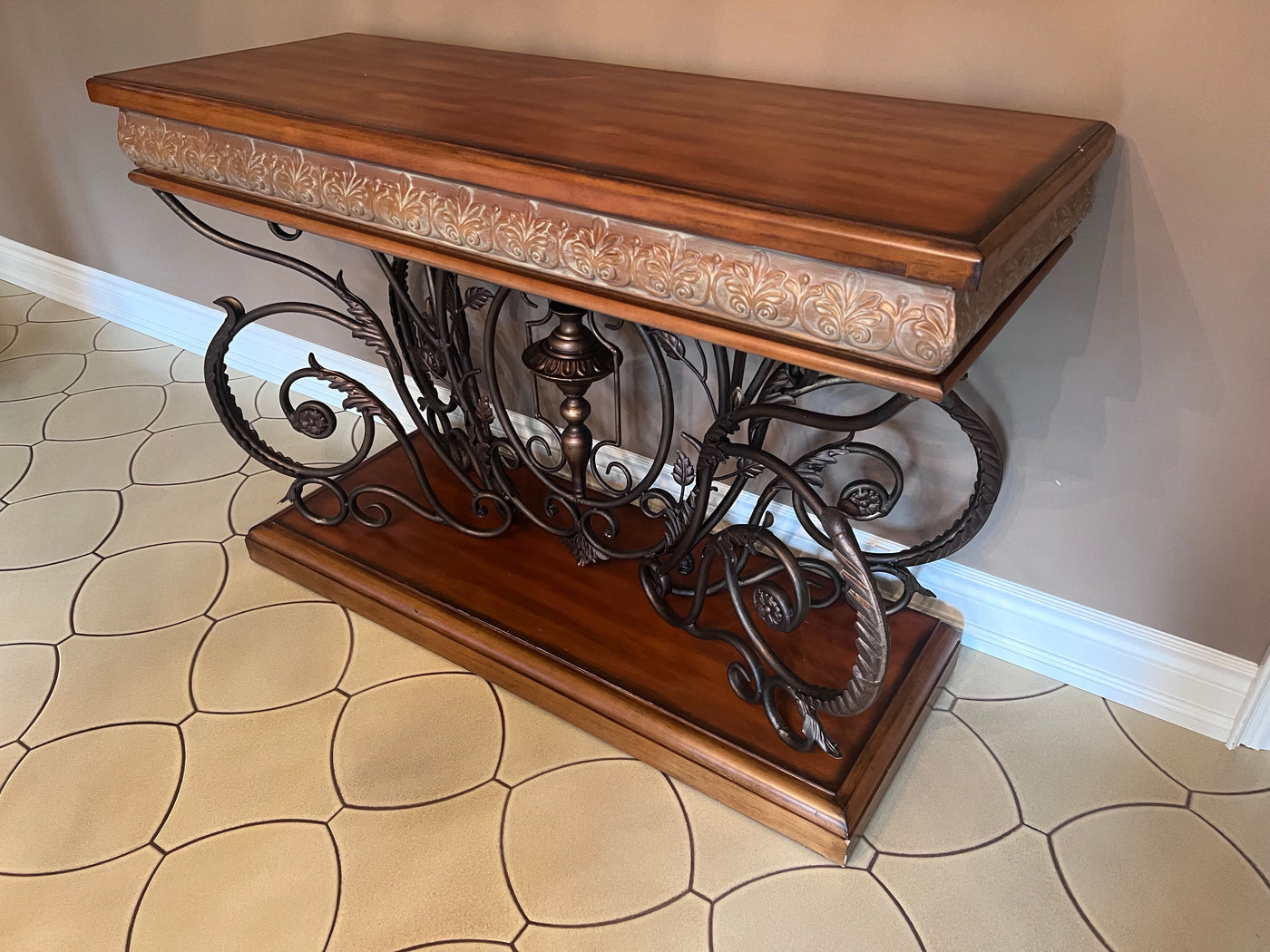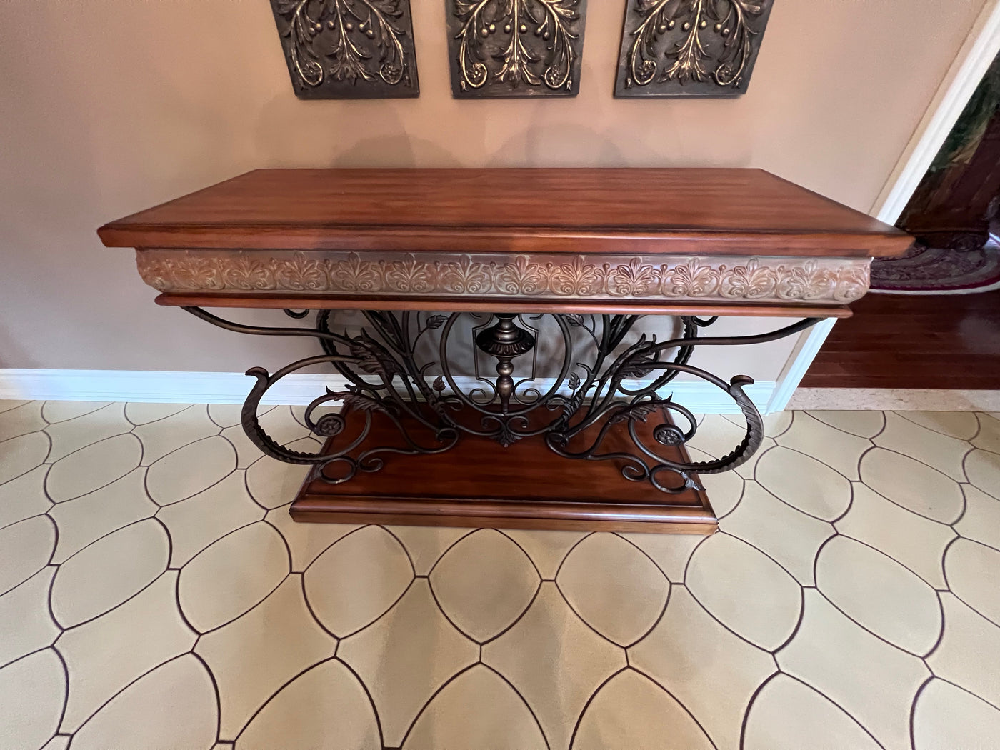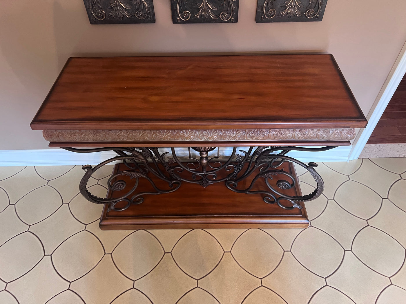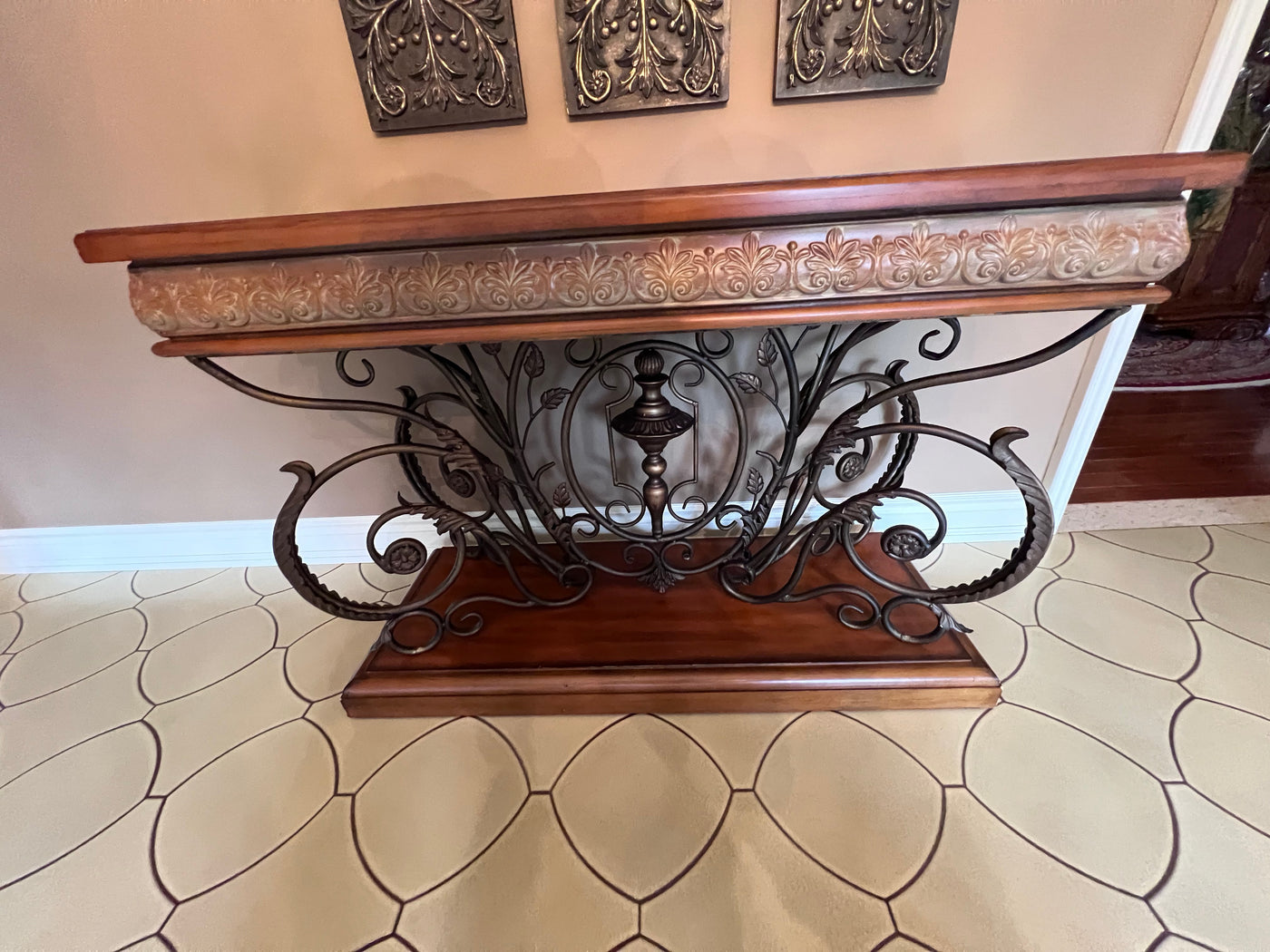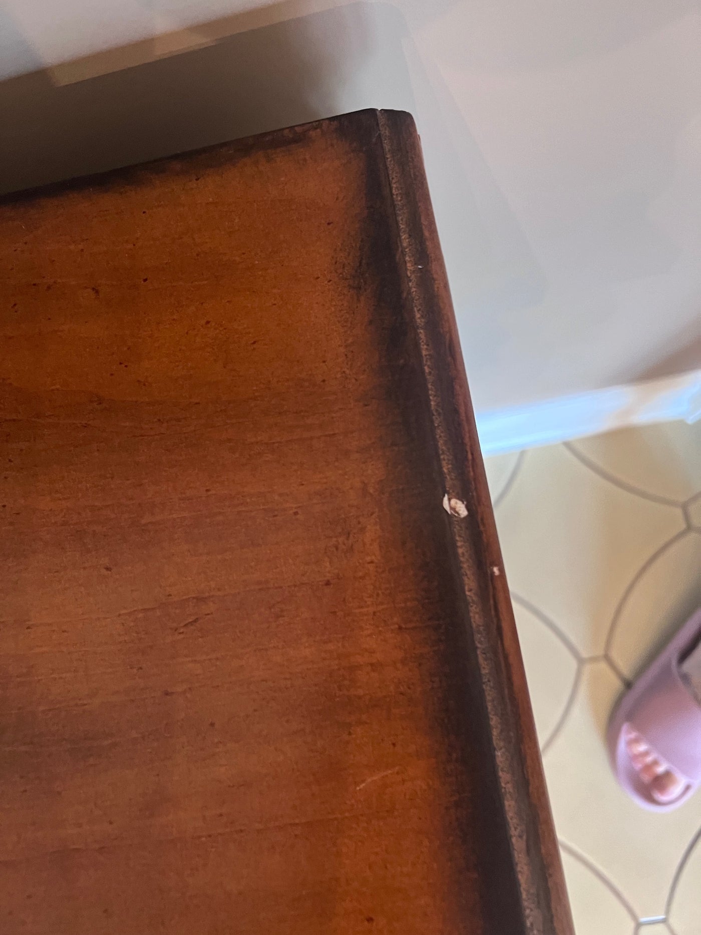 there are a few small marks on the edge of the table and the base. in no way is this major damage-- please see up close pictures.