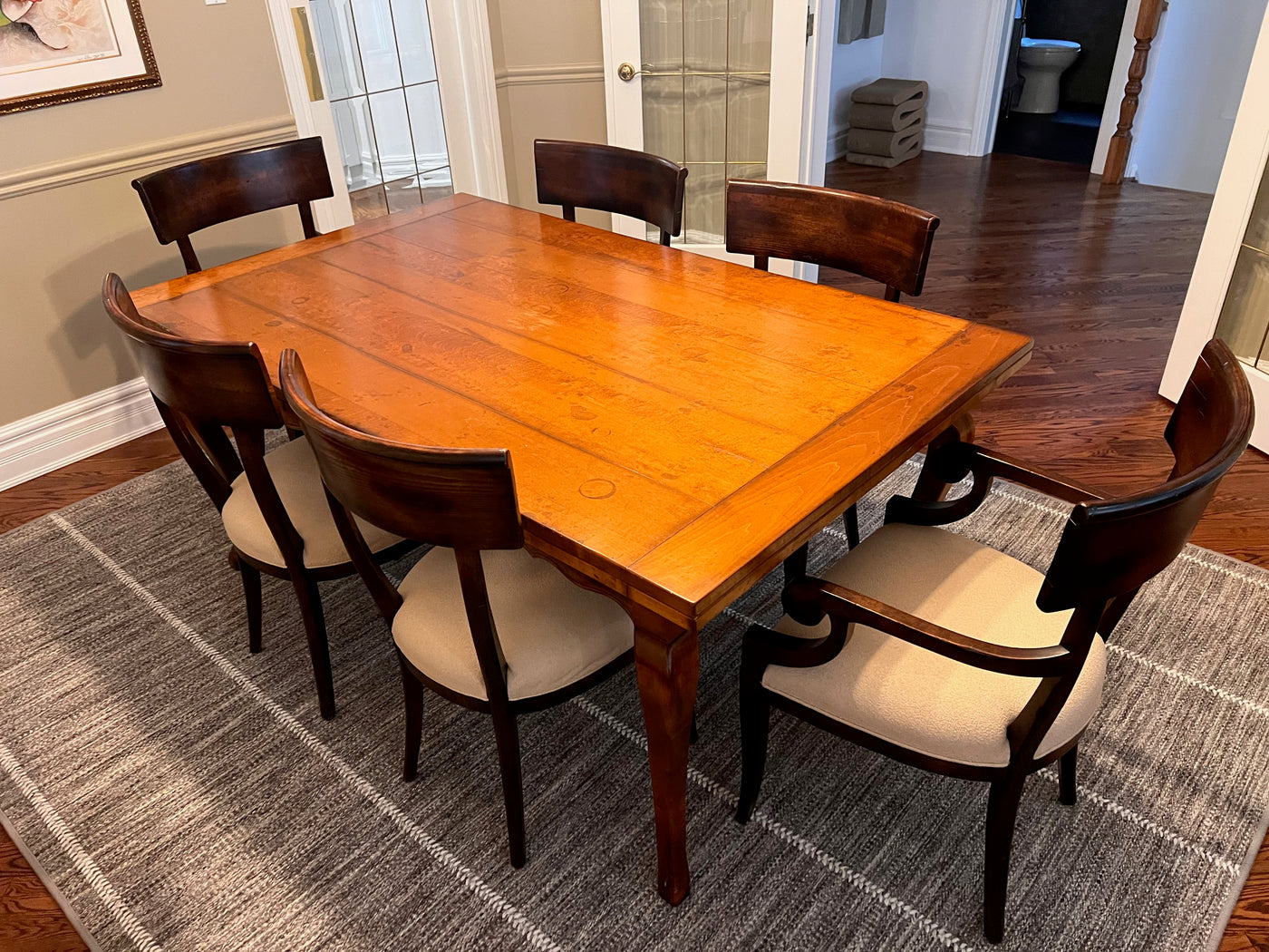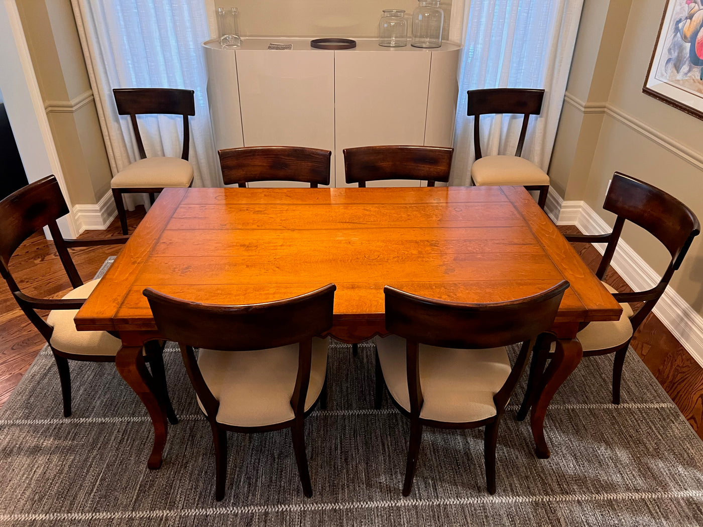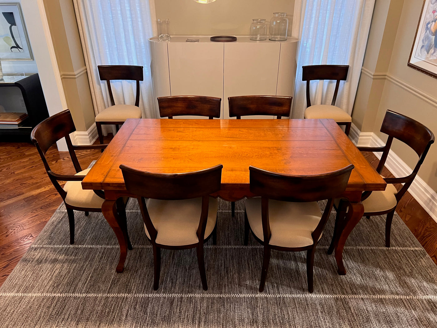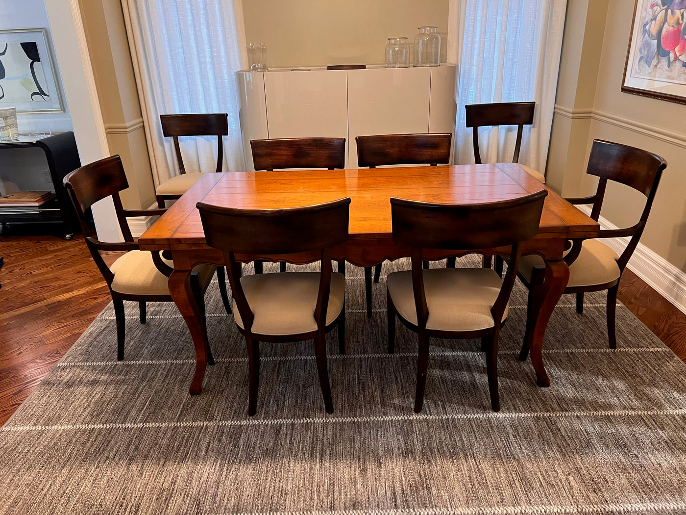 Milling Road Baker Furniture "Hildebran Collection" Maple Dining Table + 8 Chairs, Made in Italy