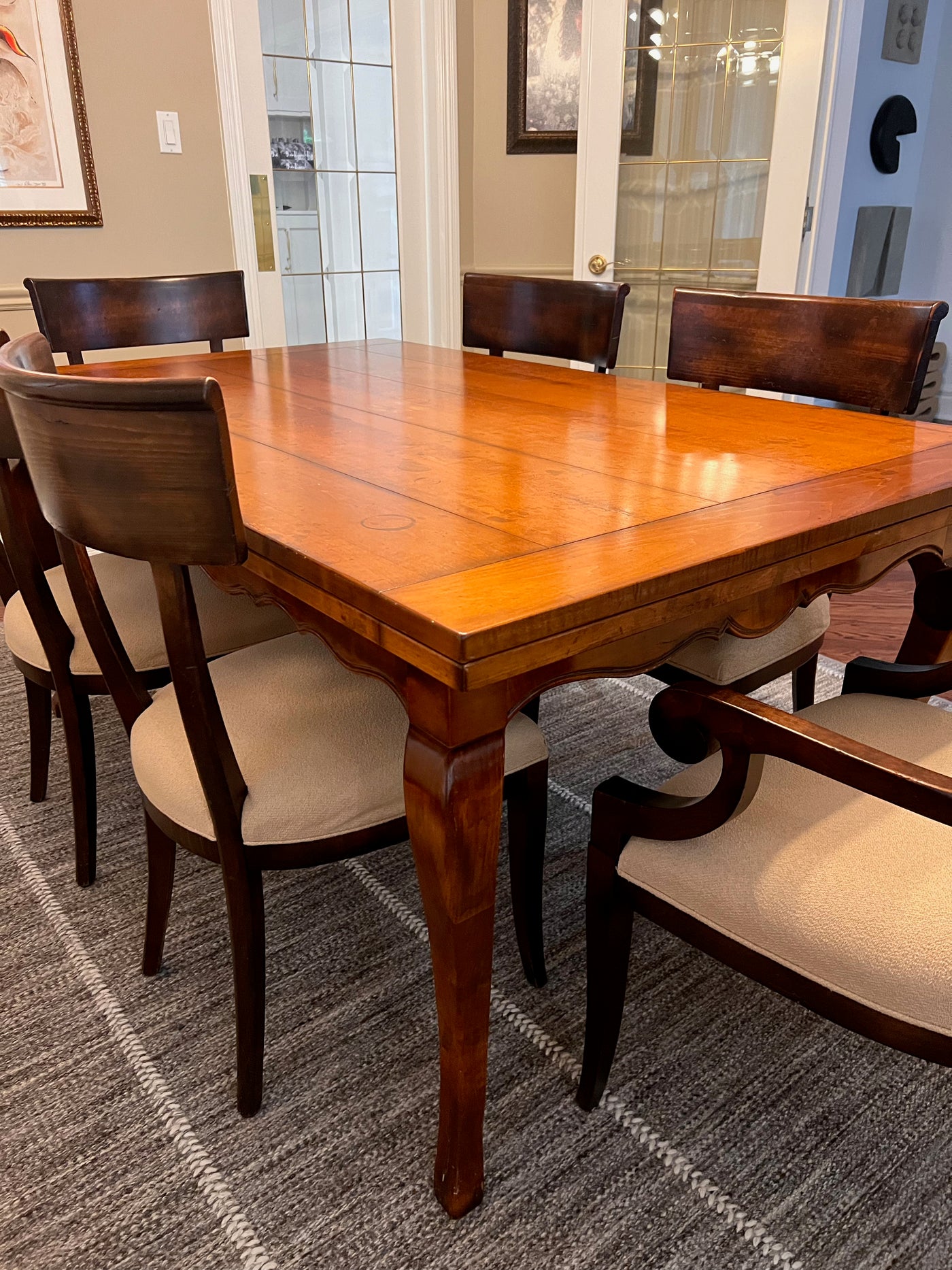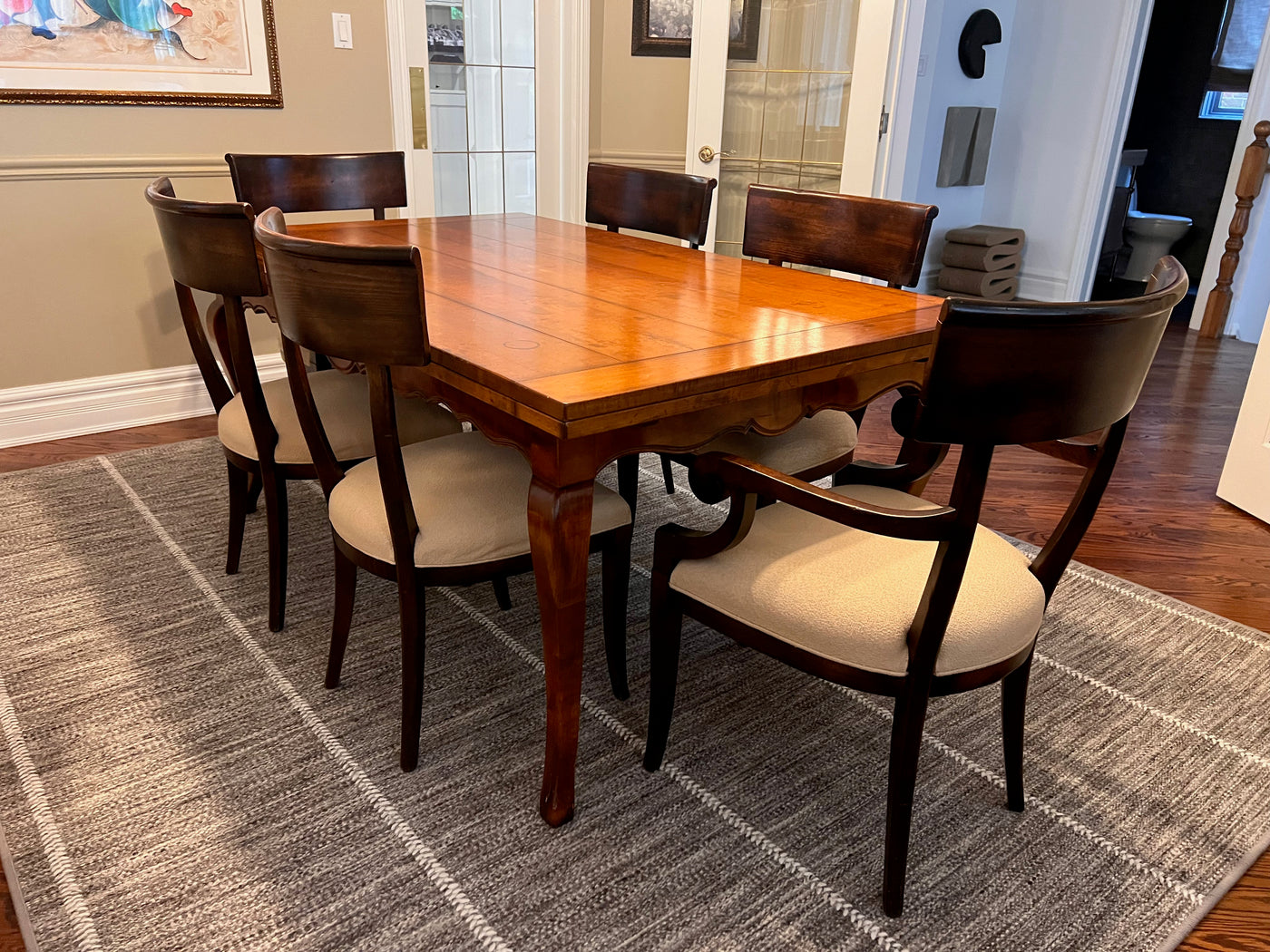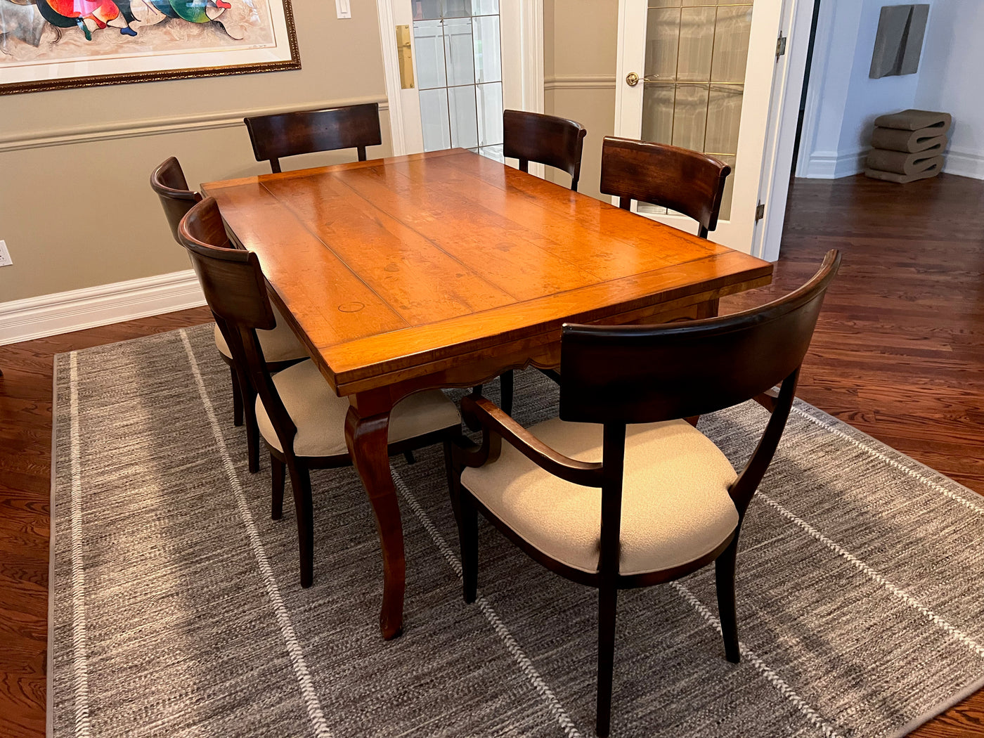 Milling Road Baker Furniture "Hildebran Collection" Maple Dining Table + 8 Chairs, Made in Italy.