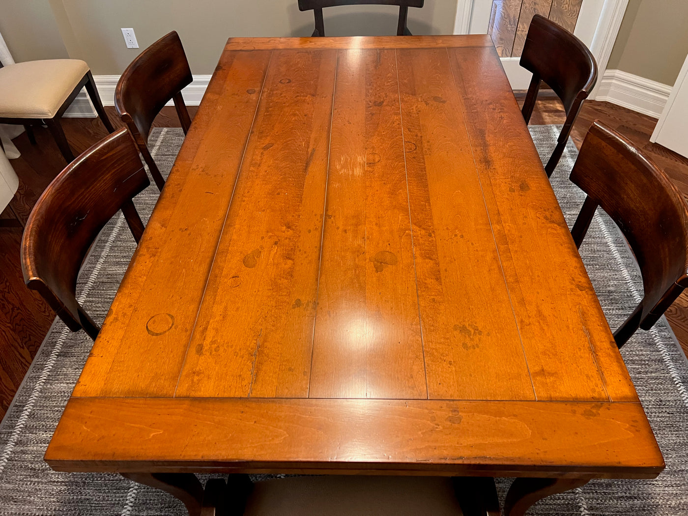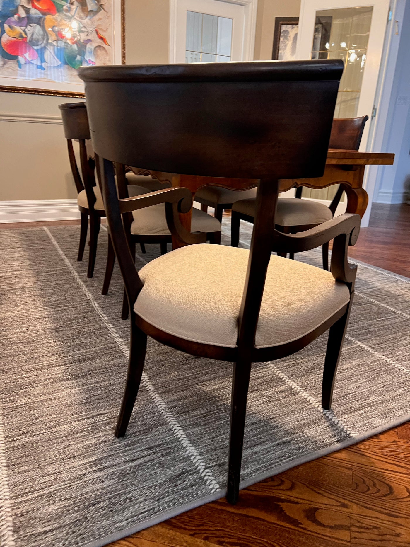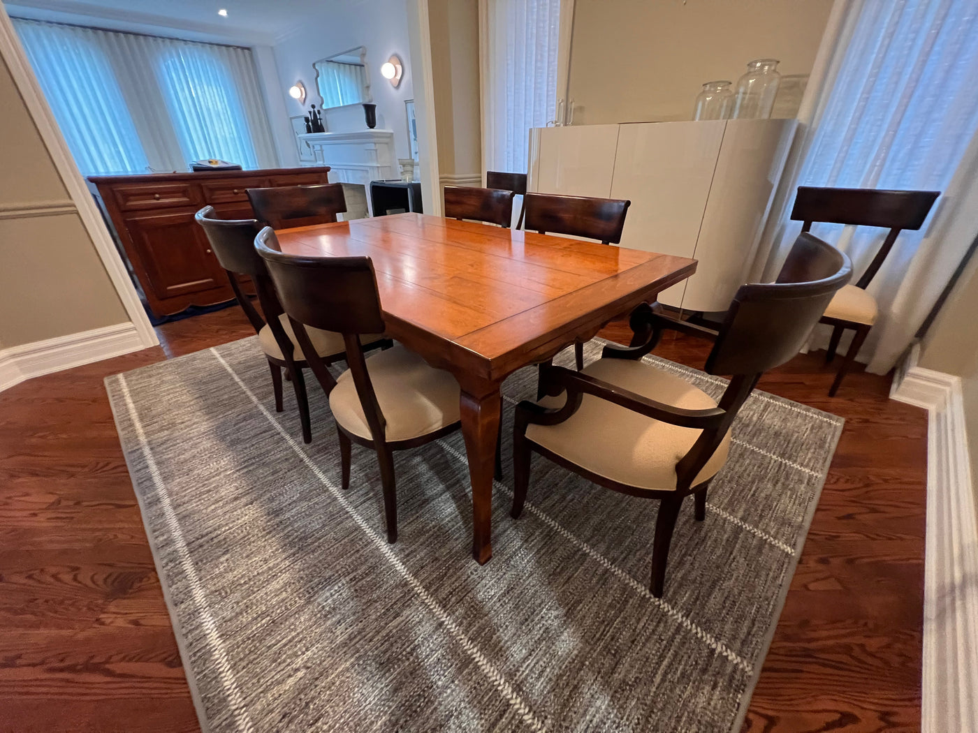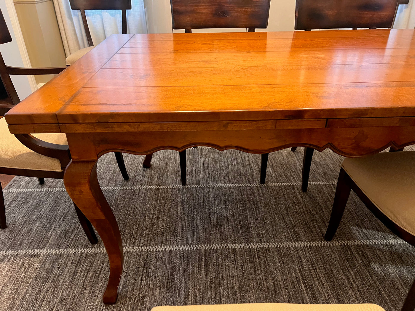 Milling Road Baker Furniture "Hildebran Collection" Maple Dining Table + 8 Chairs, Made in Italy.