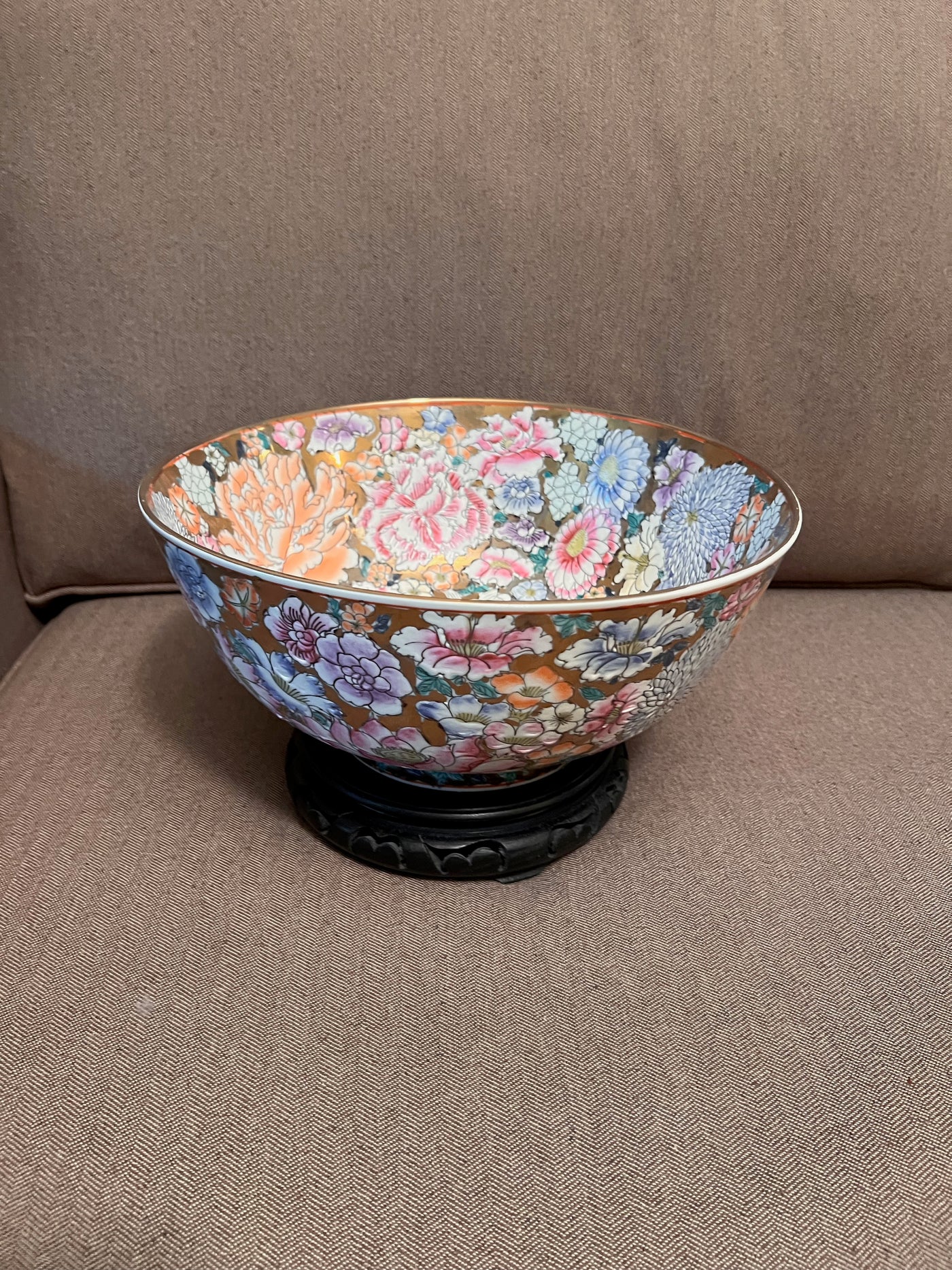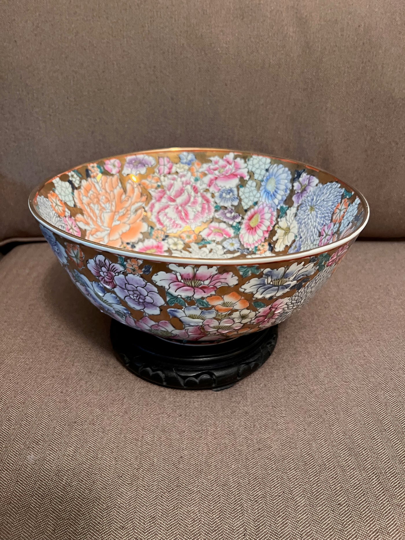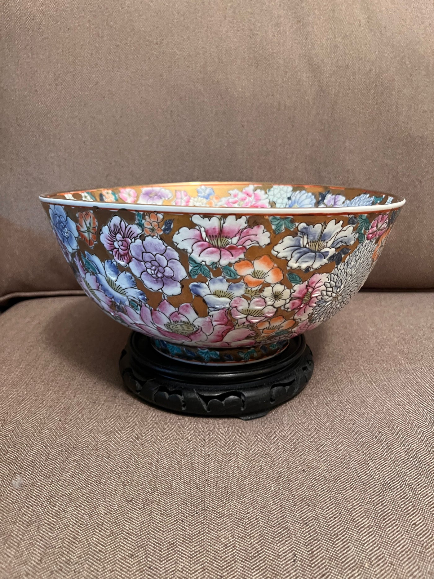 Vintage Chinese Decorative Bowl on Stand, Made in Macau.