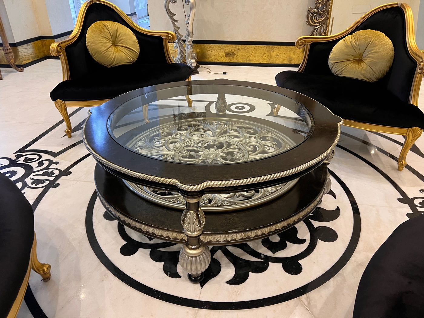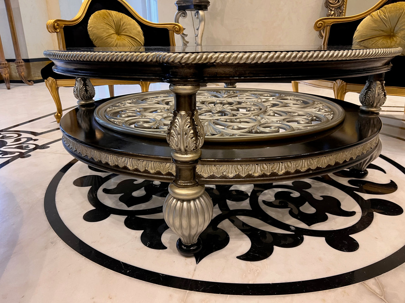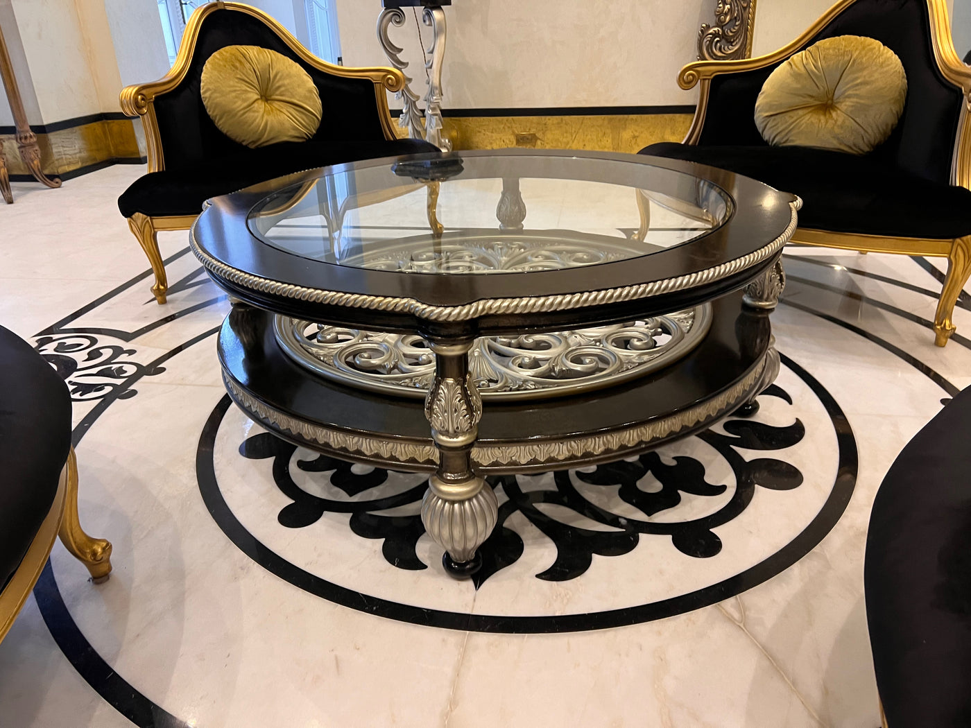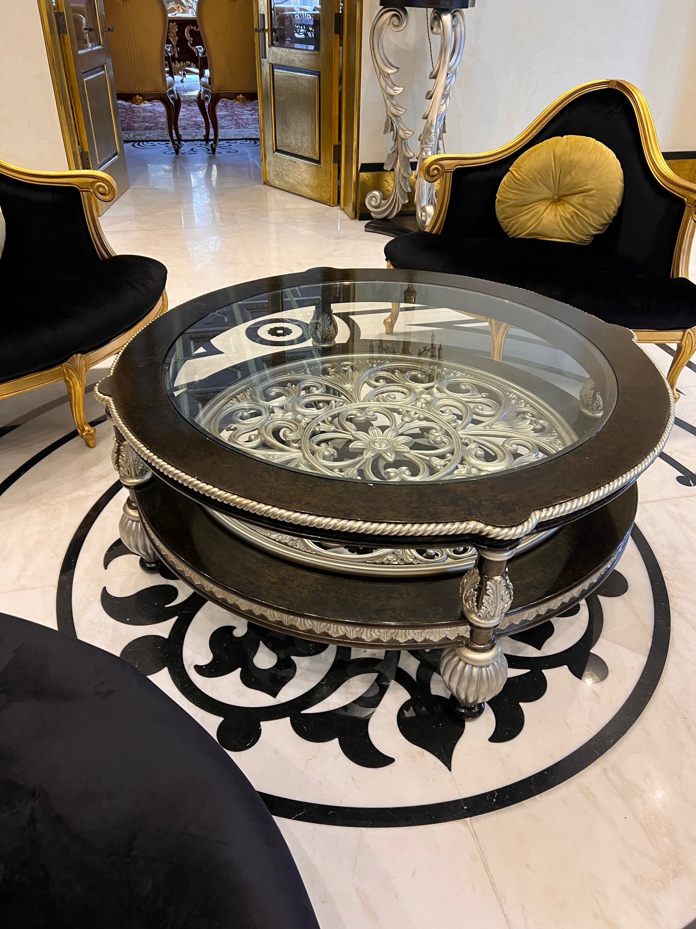 Martin Daniel Interiors 2 Tier Round Black/Silver Glass Coffee Table.
