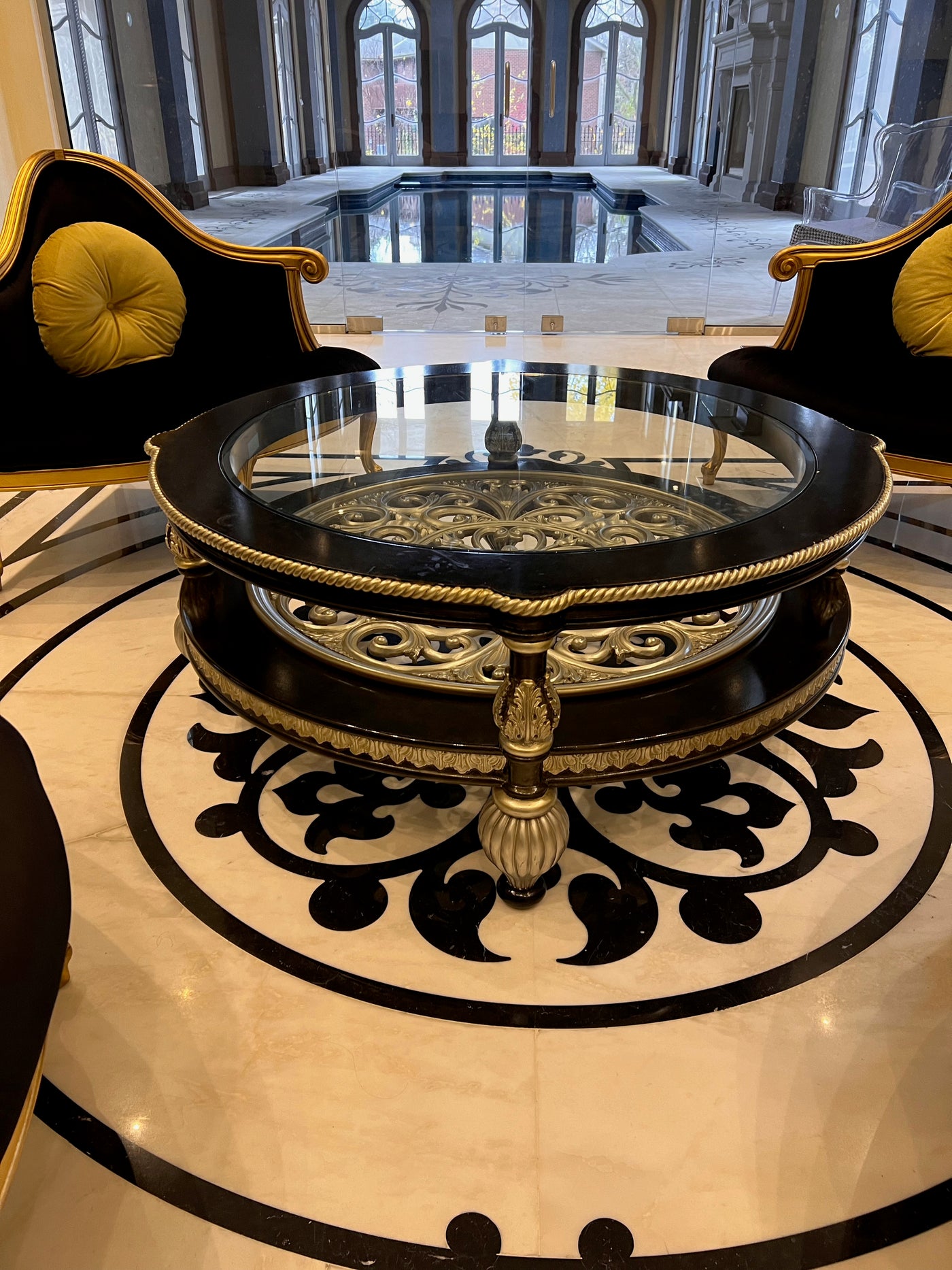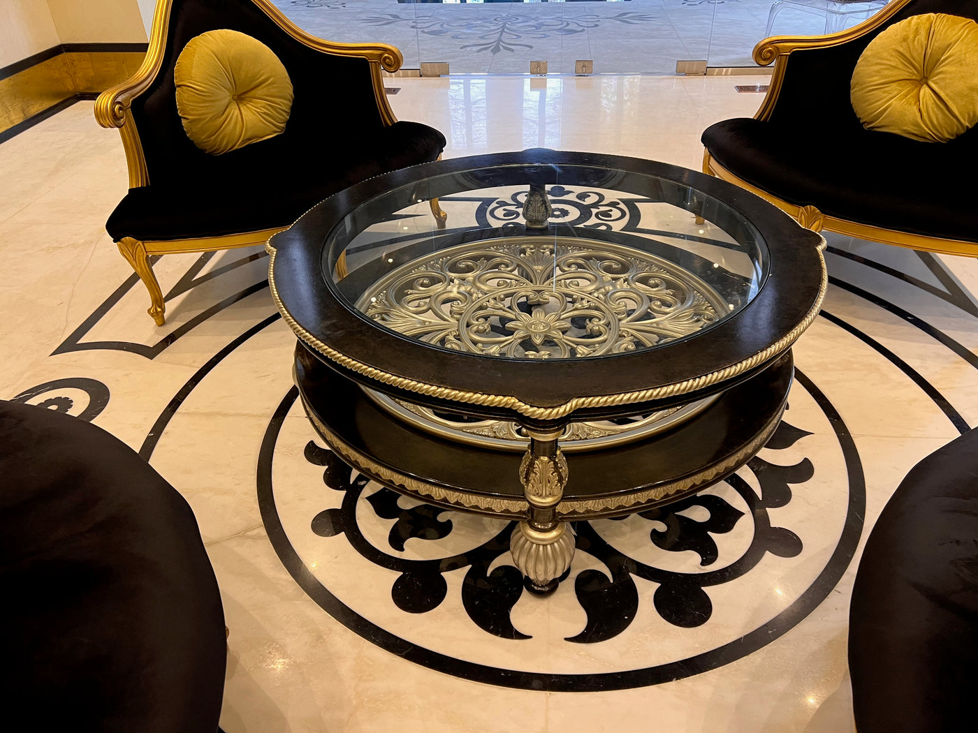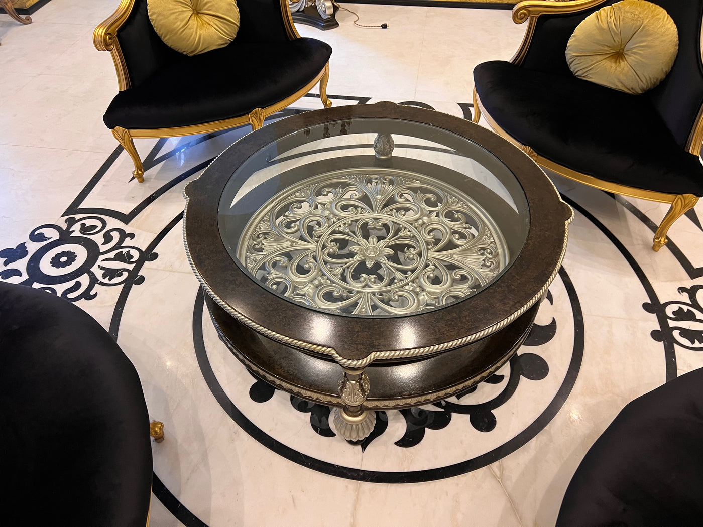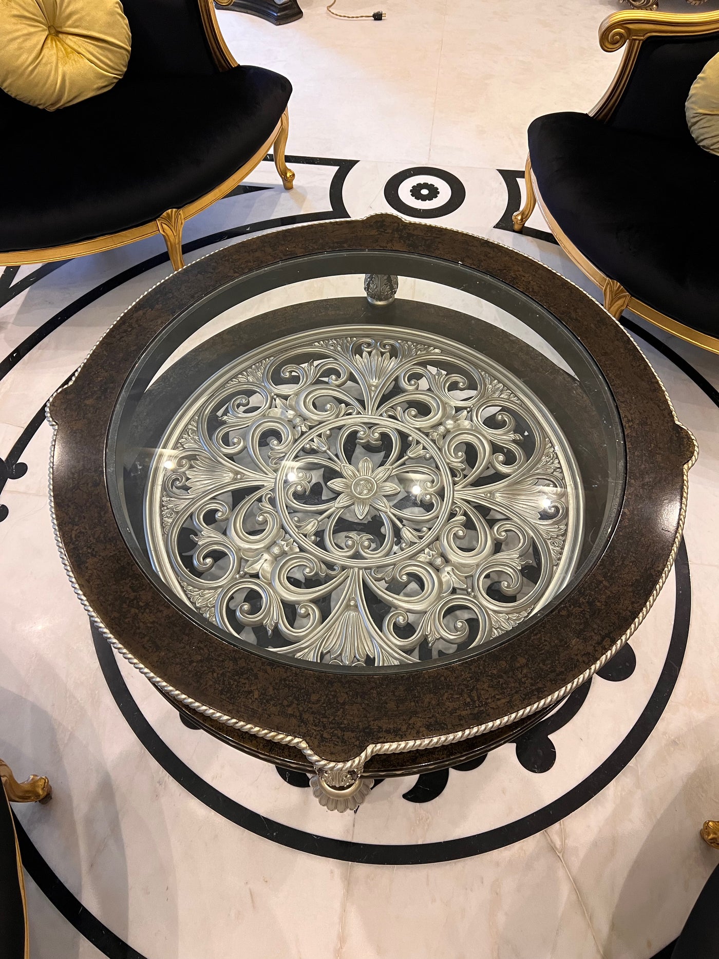 Martin Daniel Interiors 2 Tier Round Black/Silver Glass Coffee Table.