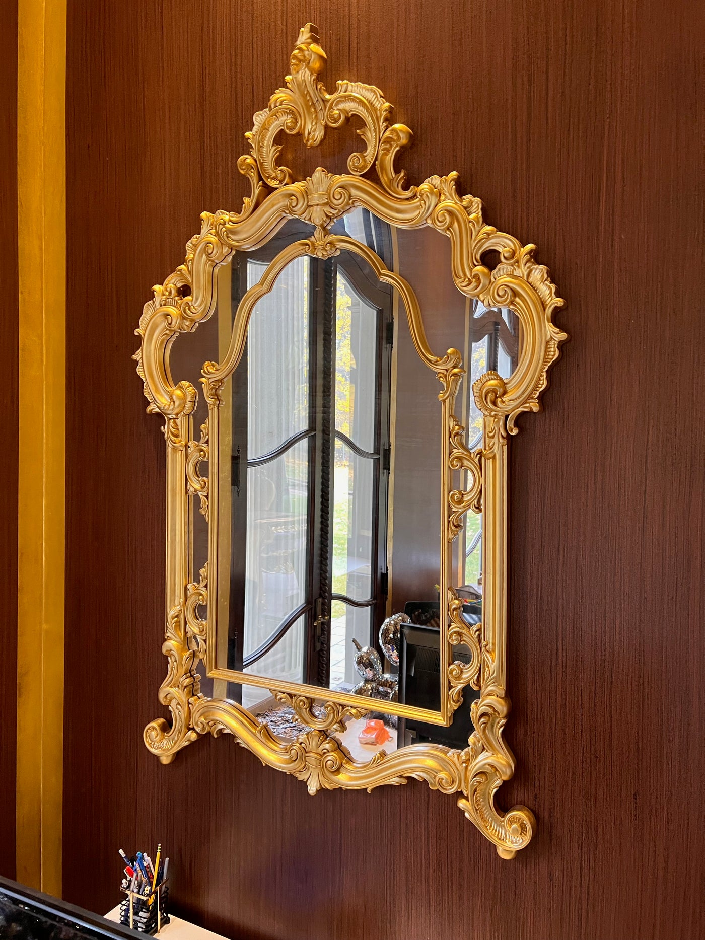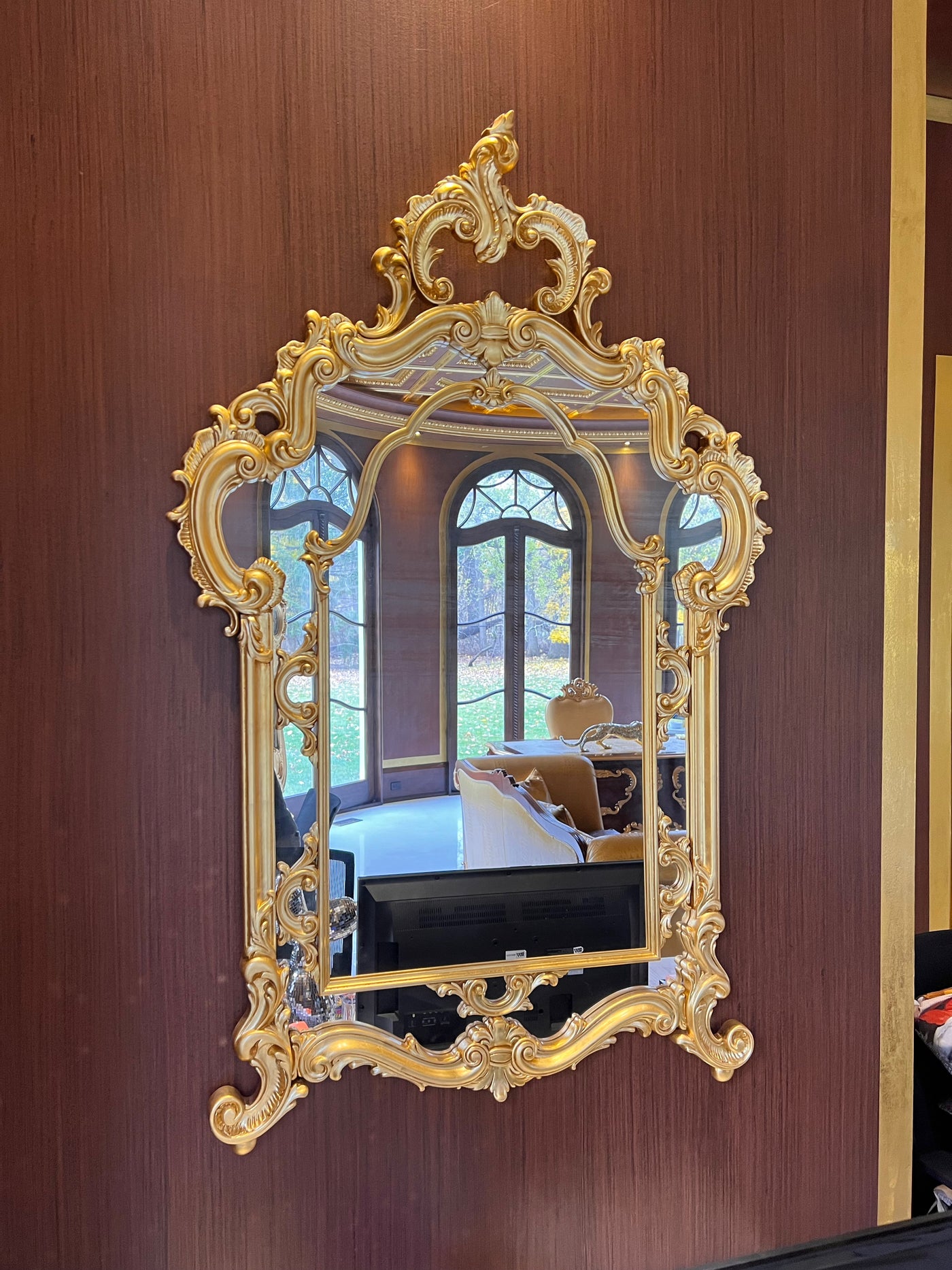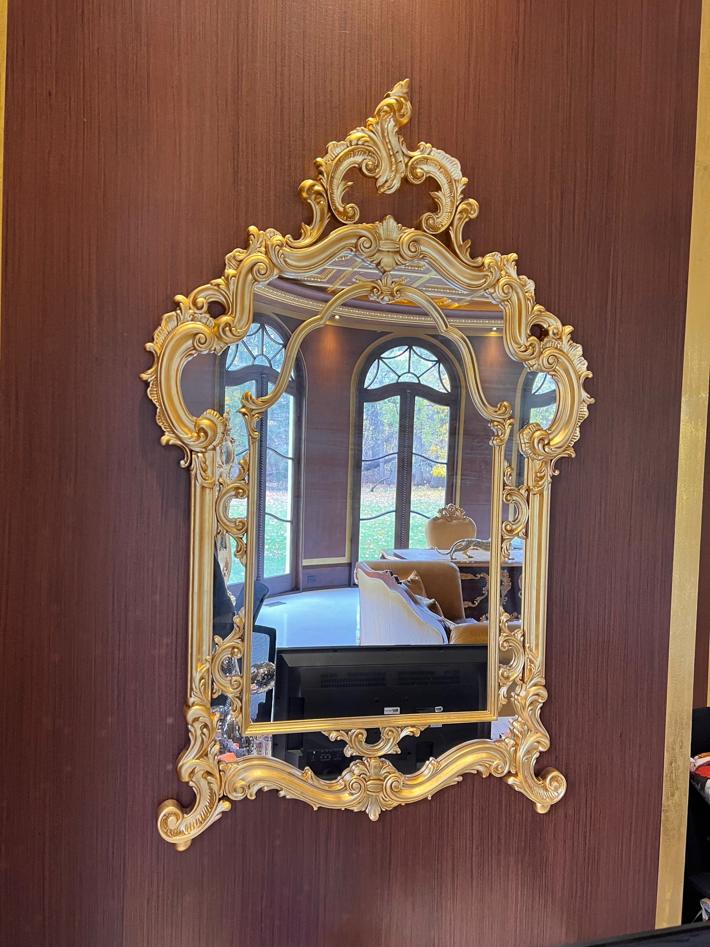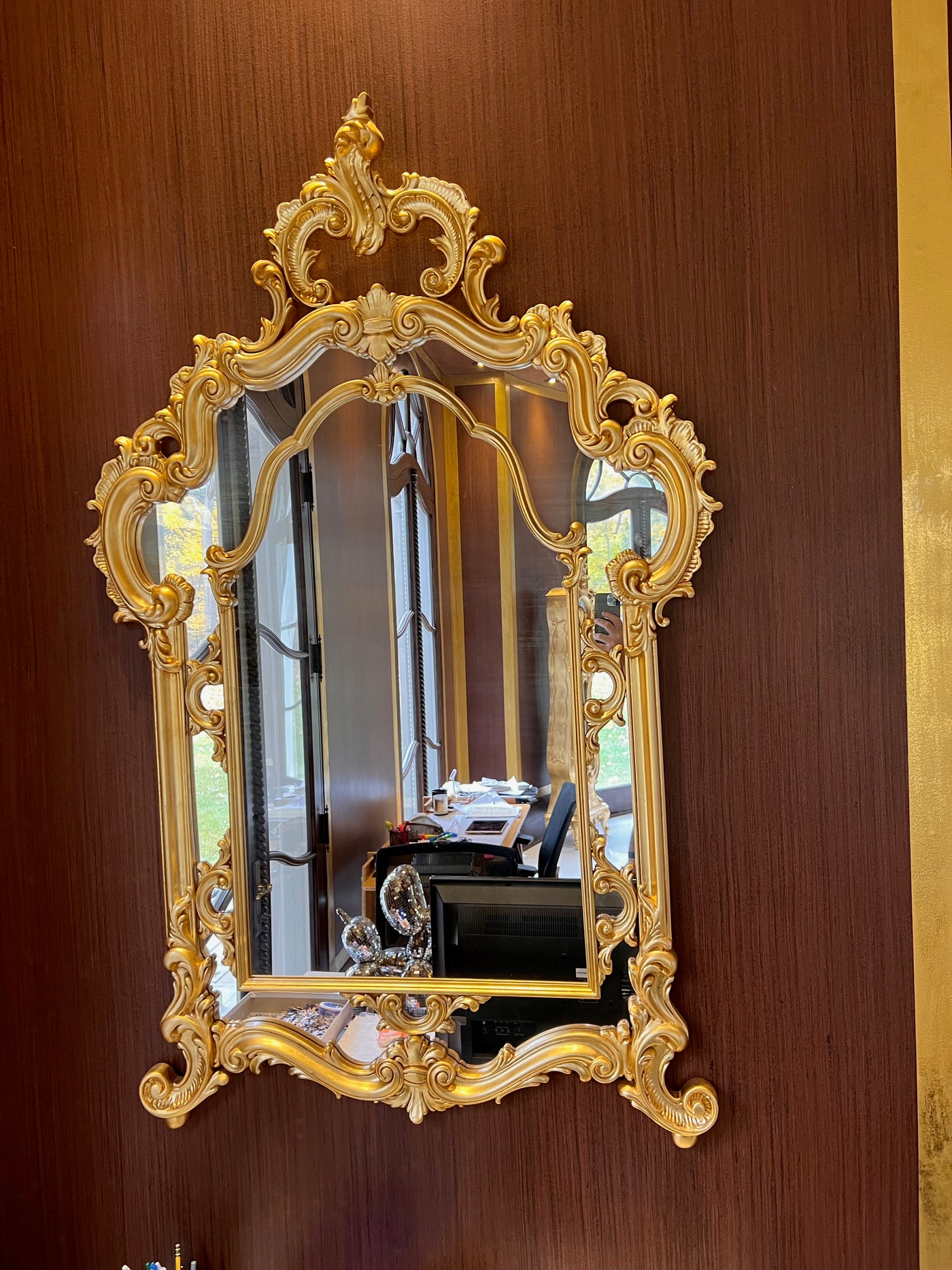 Modenese Gastone Baroque Gold Mirror, Wood with Gold Leaf Finishing, Made In Italy.
