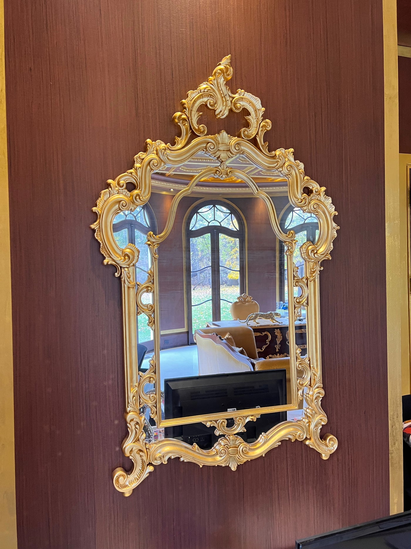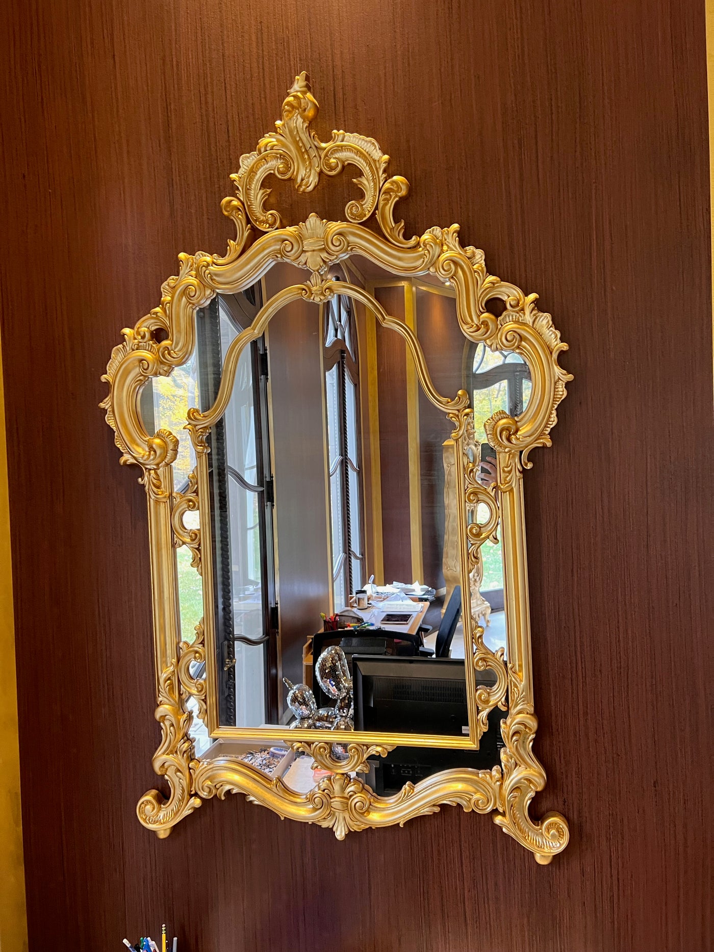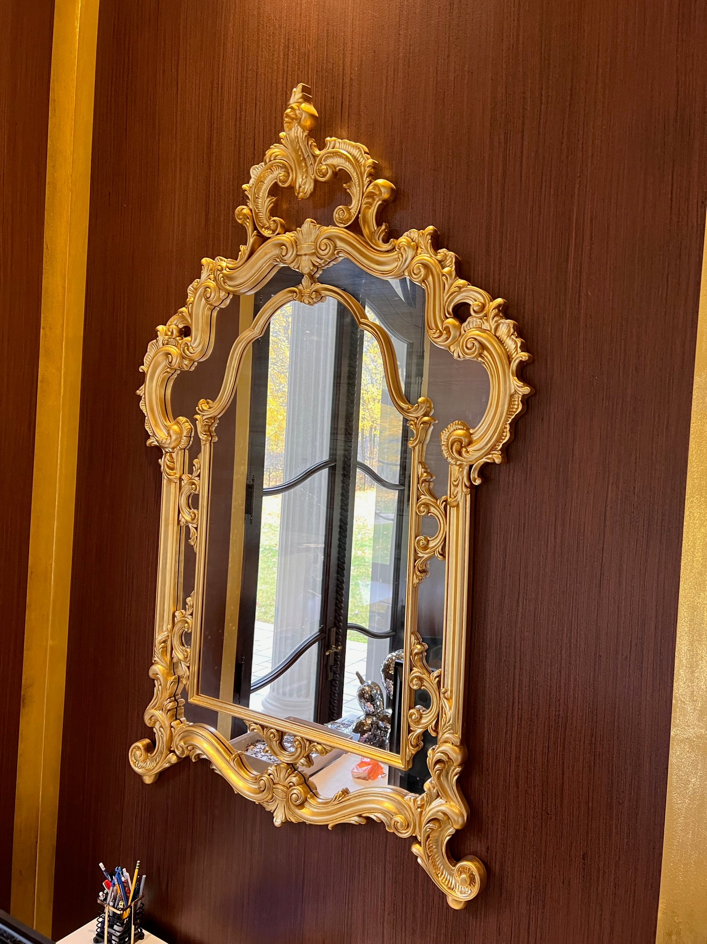 Modenese Gastone Baroque Gold Mirror, Wood with Gold Leaf Finishing, Made In Italy.