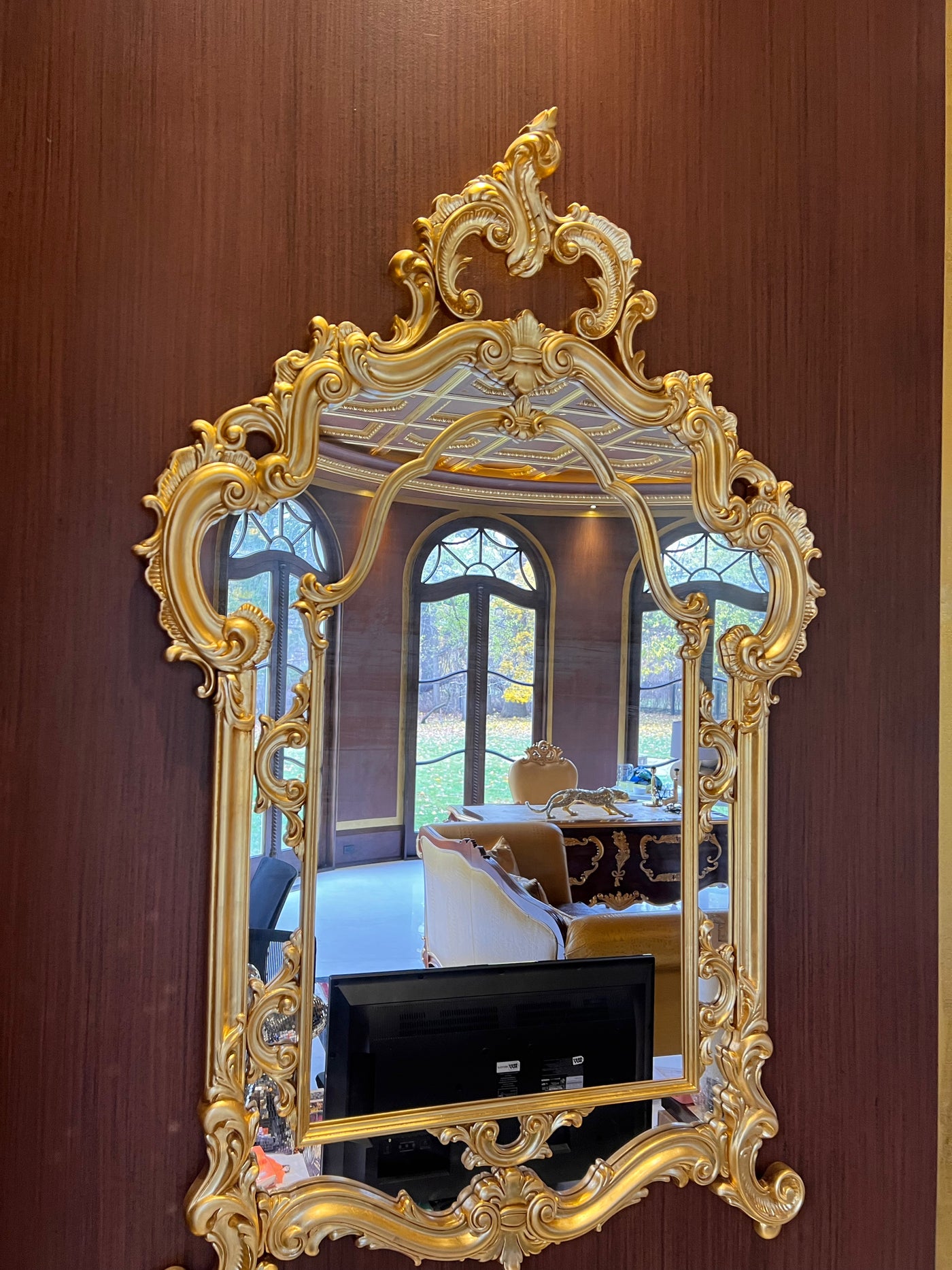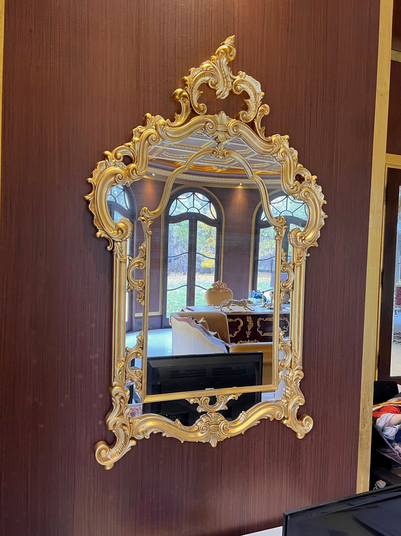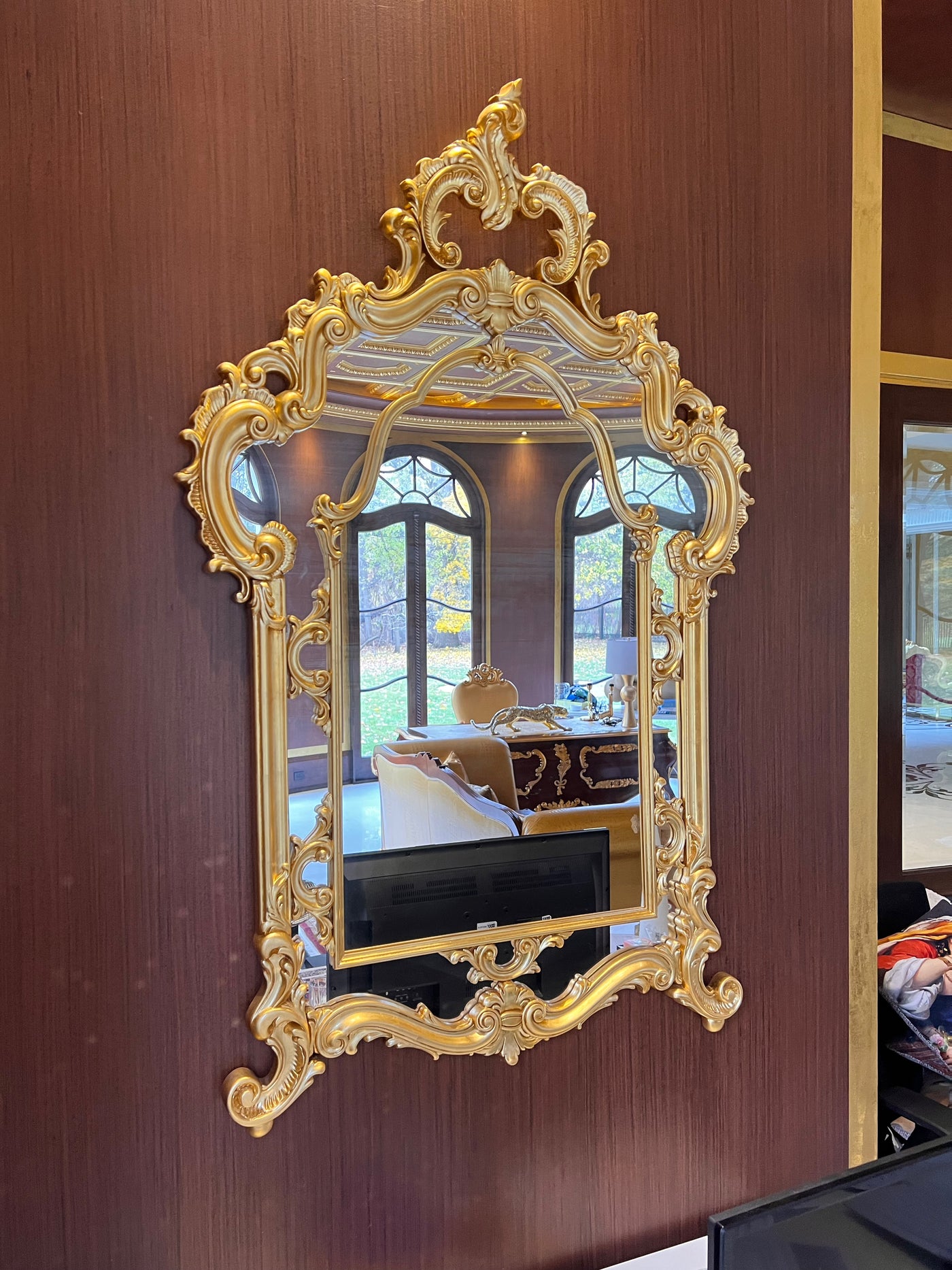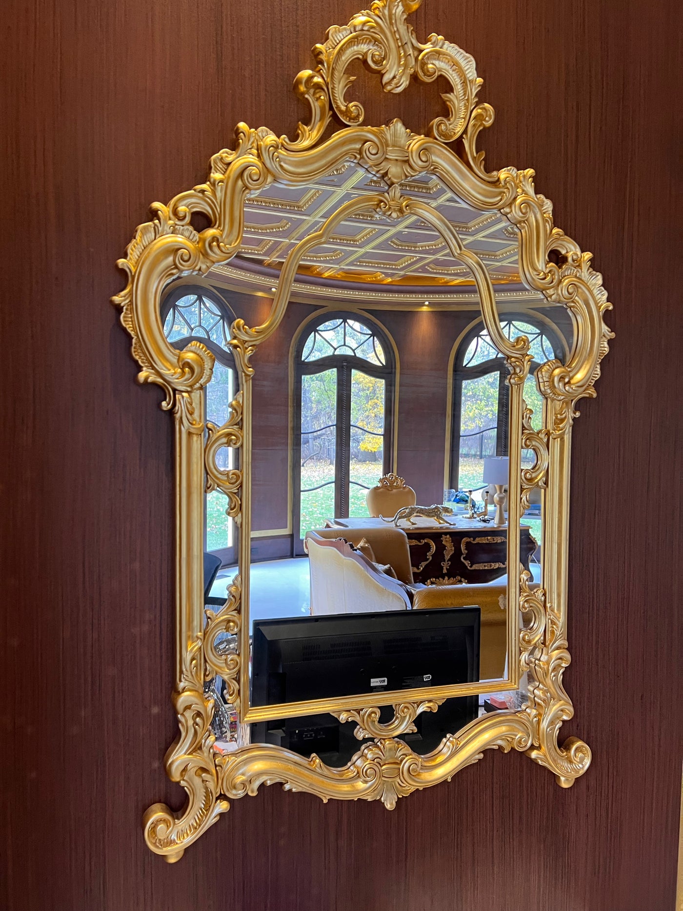 Modenese Gastone Baroque Gold Mirror, Wood with Gold Leaf Finishing, Made In Italy.