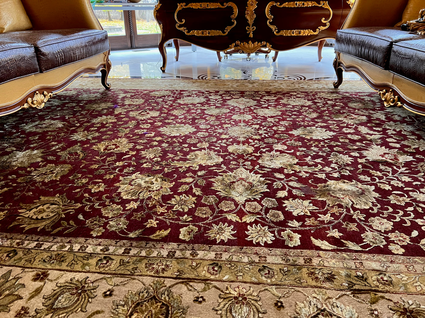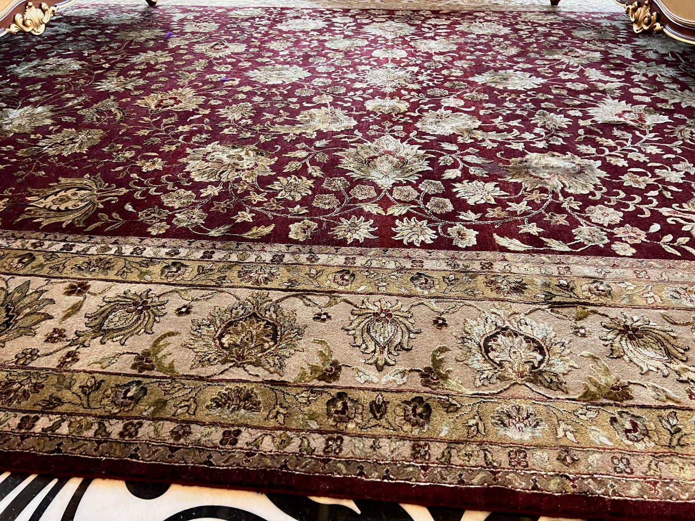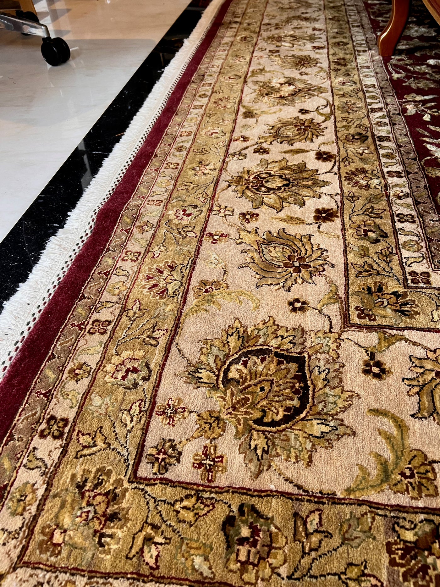 Indian Jaipur Red/Cream Wool Rug, with Artificial Silk Accents- 14.5ft x 9.95ft.