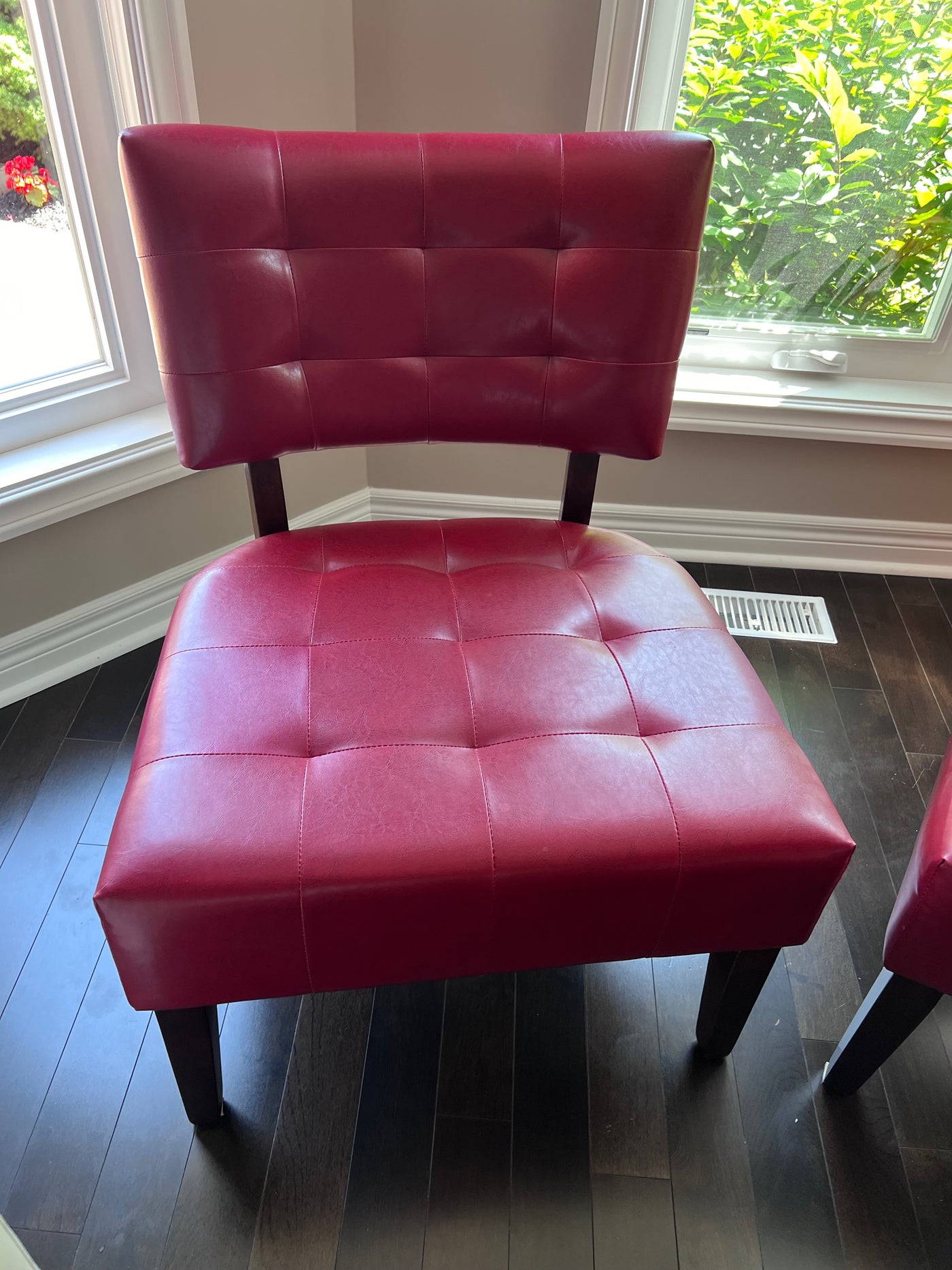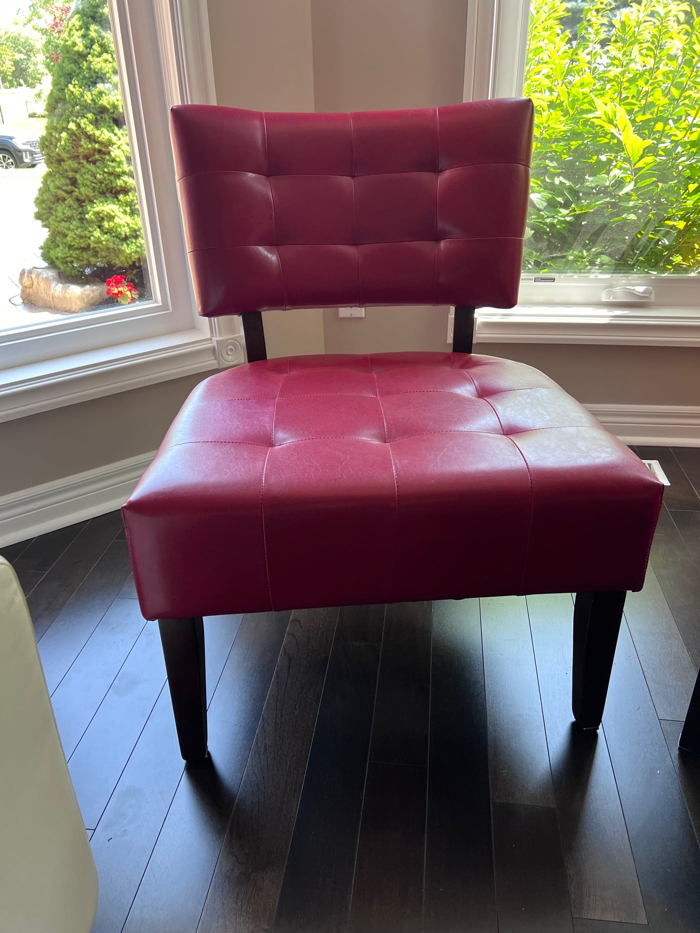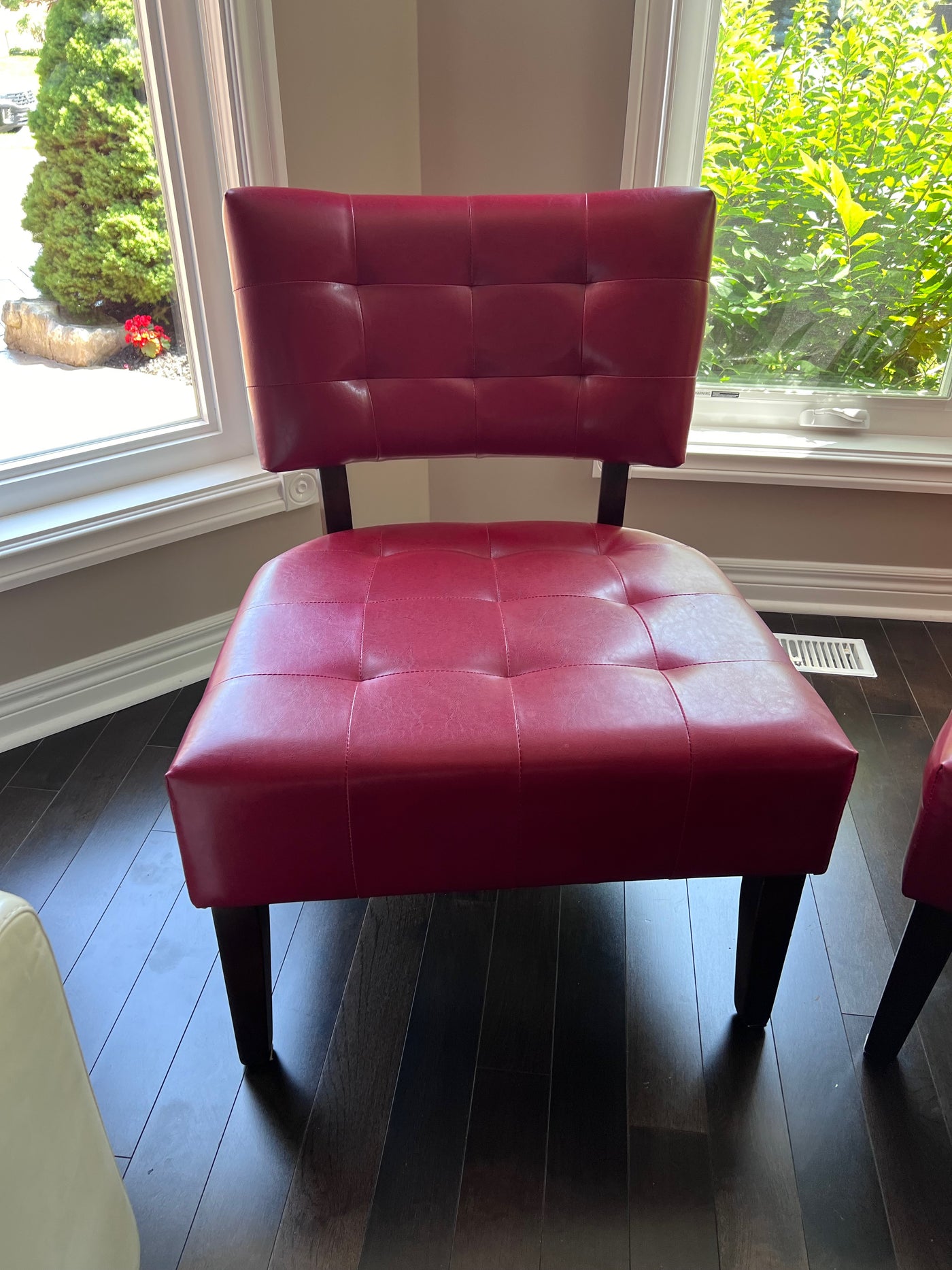 Pair of Red Faux Leather Tufted Accent Chairs.