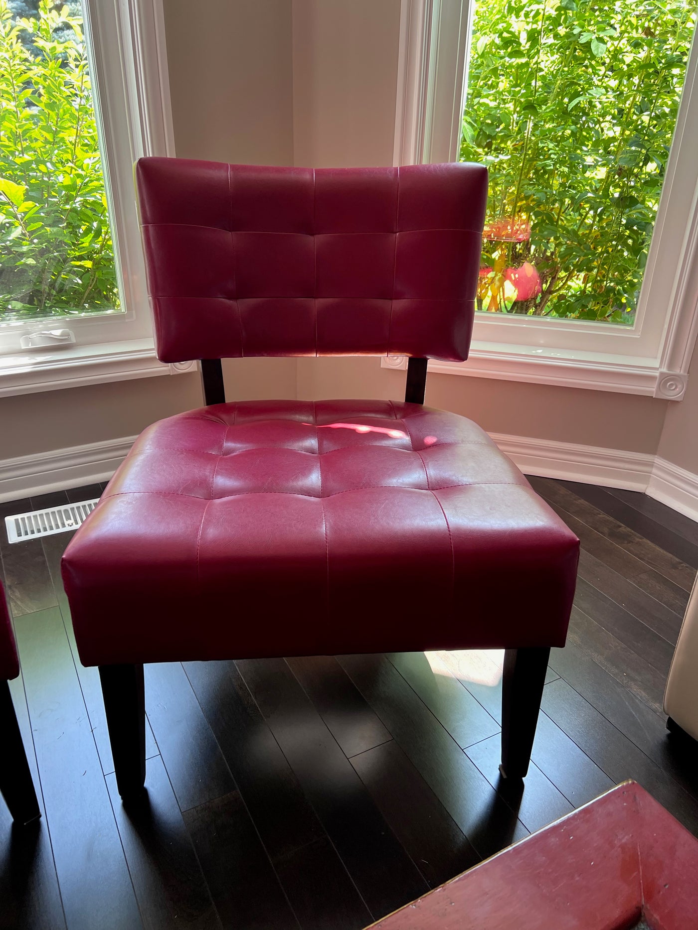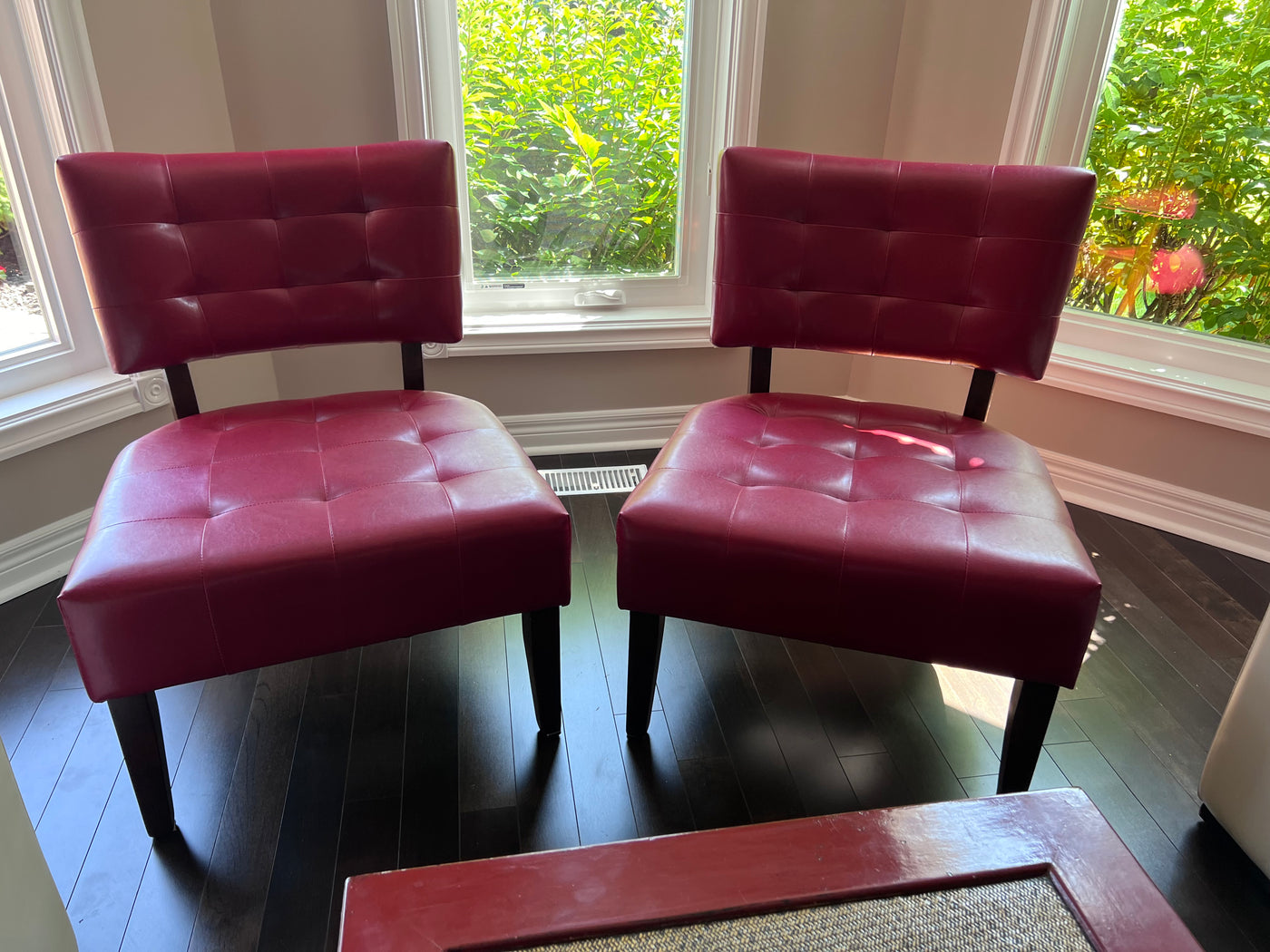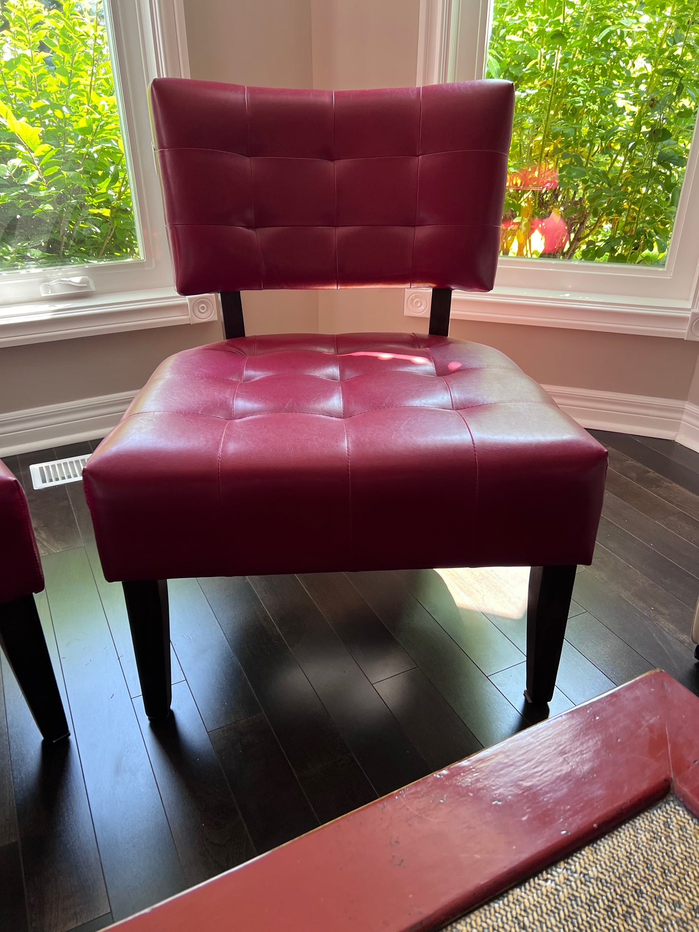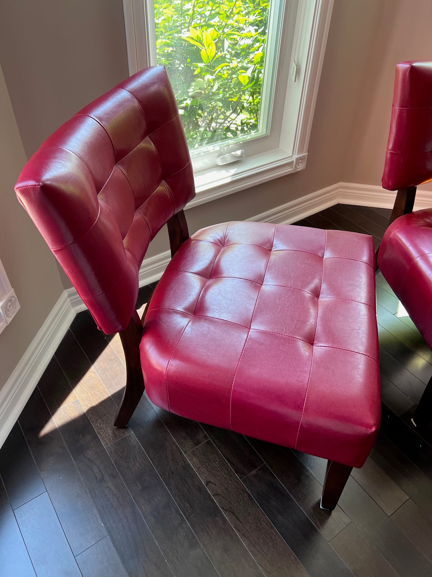 Pair of Red Faux Leather Tufted Accent Chairs.
