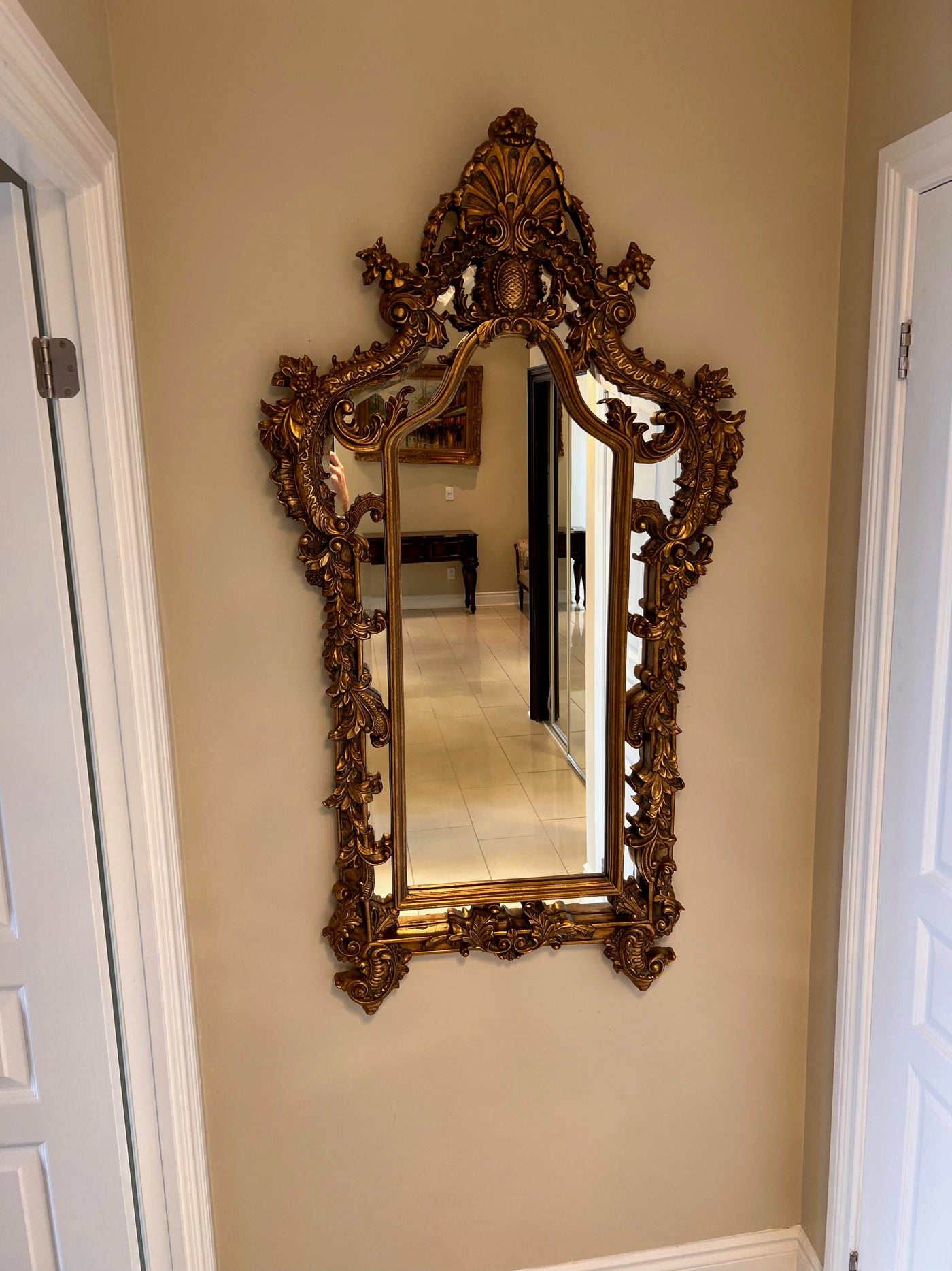 Ornate Gold Mirror. This mirror is made of a composite material and is not wood. In great condition!