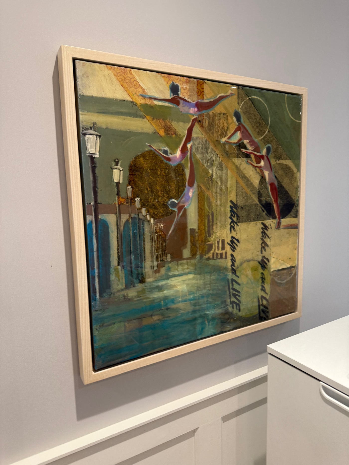 Mixed Media Painting 'Diving Into Your Life' by Marjolyn van der Hart (*gallery price $2,500).