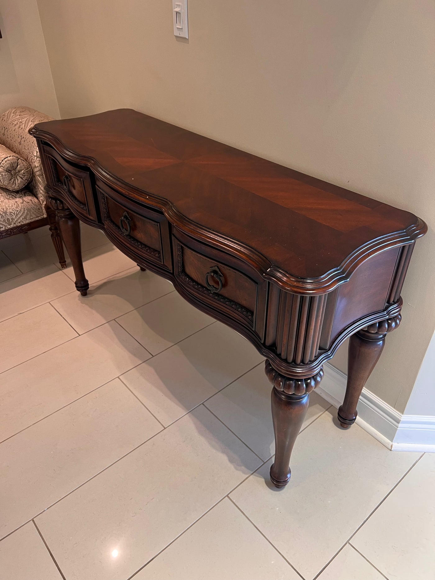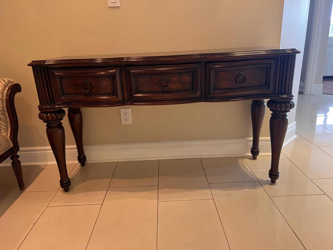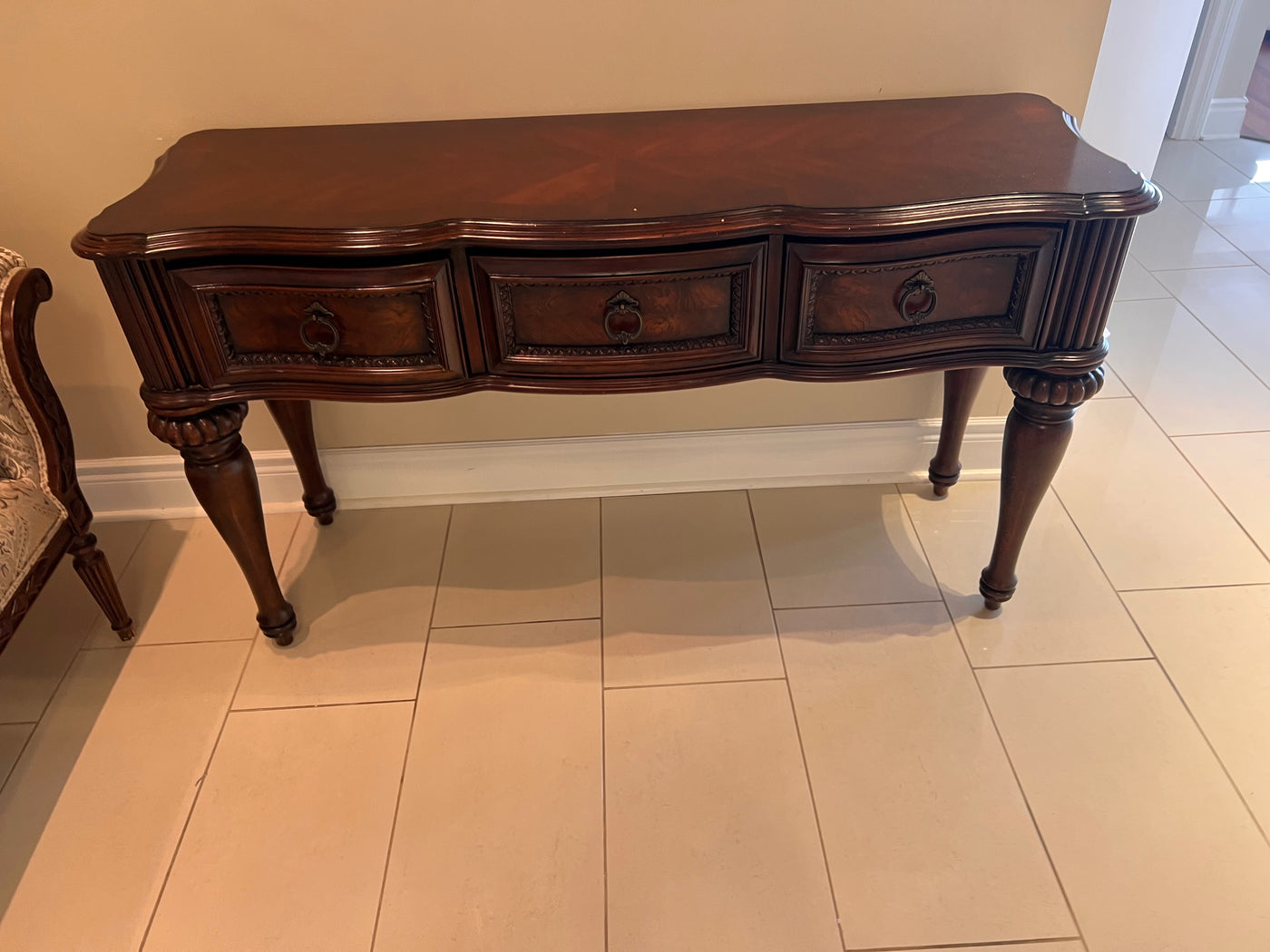 Ornate Wood 3-Drawer Console Table.