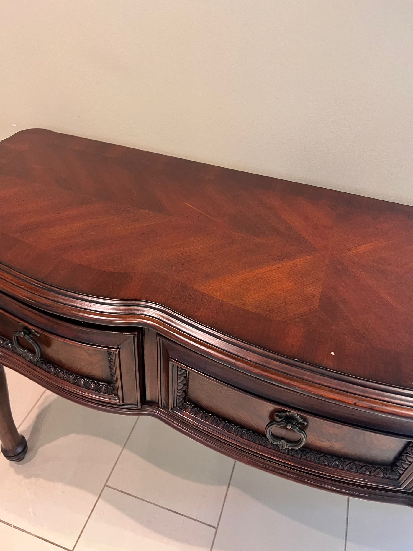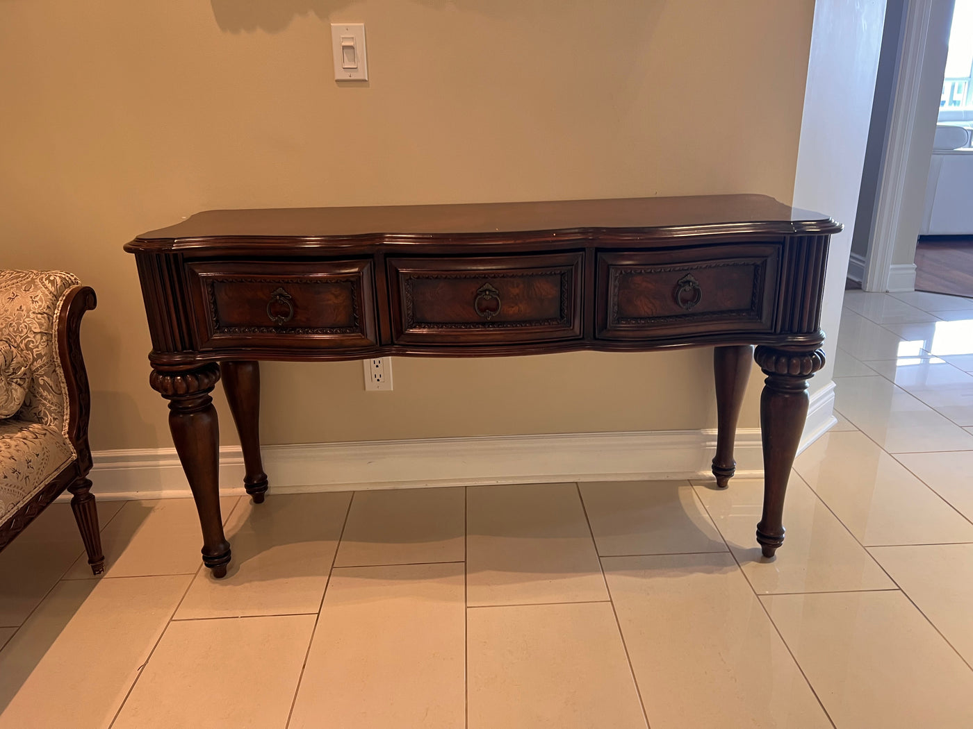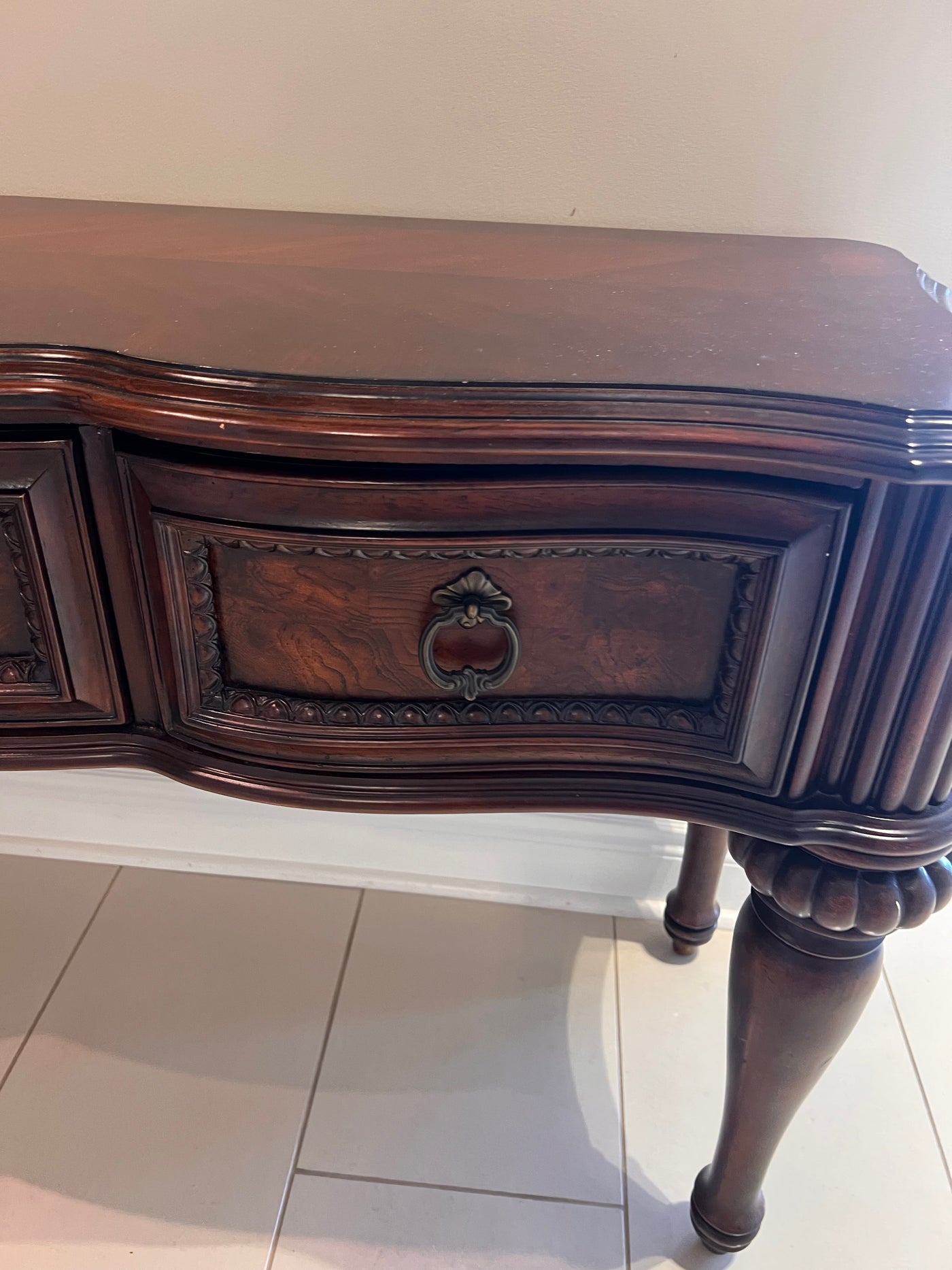 Ornate Wood 3-Drawer Console Table.