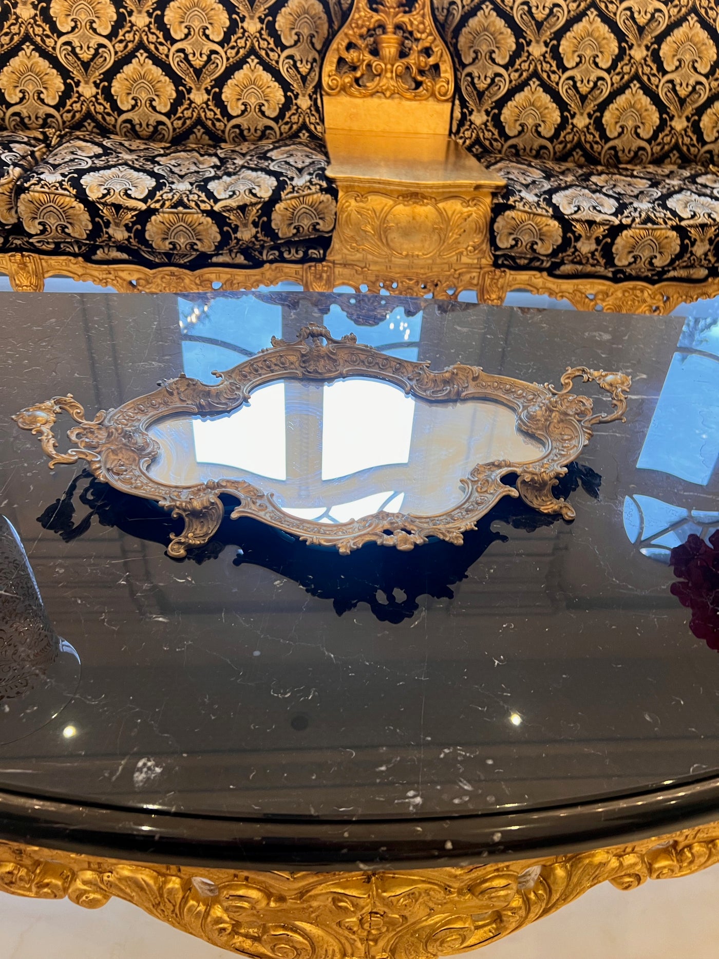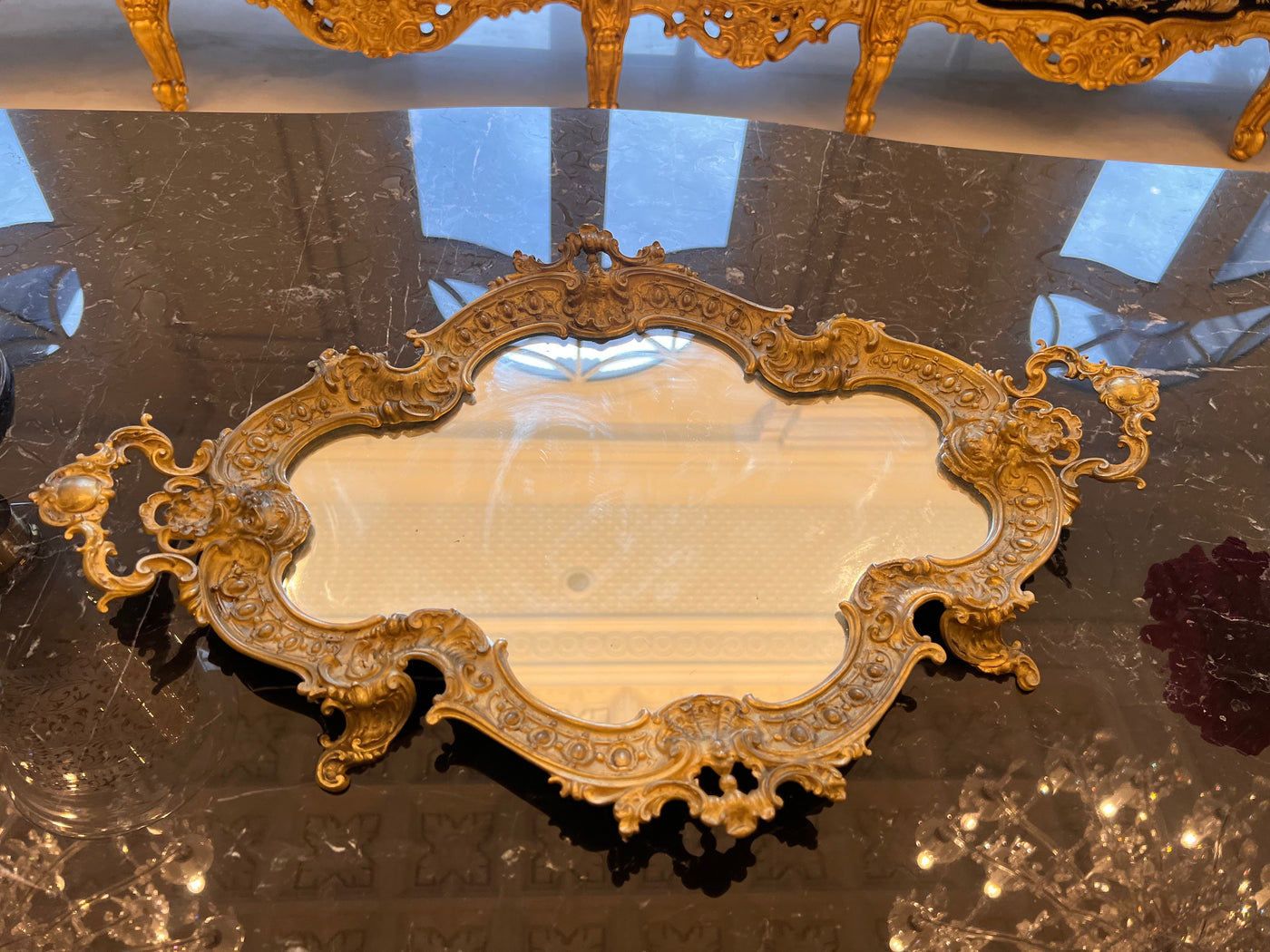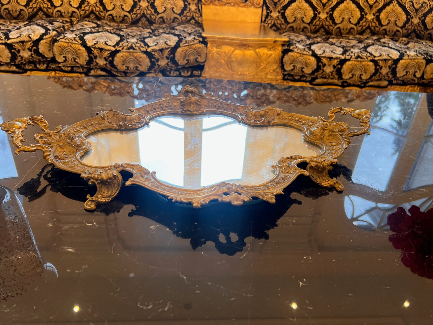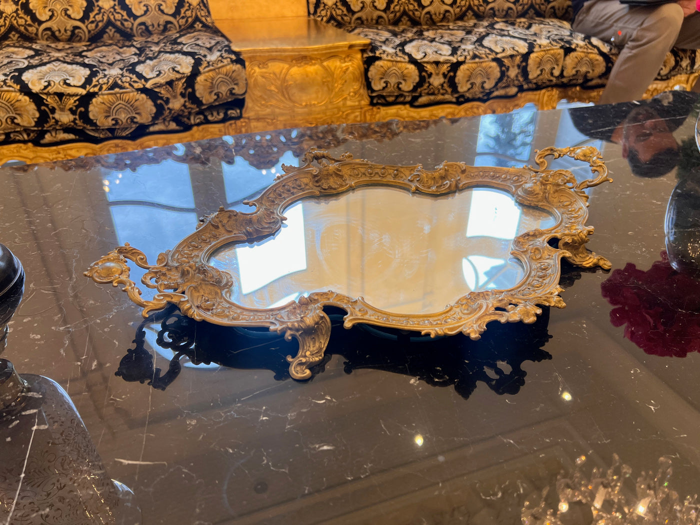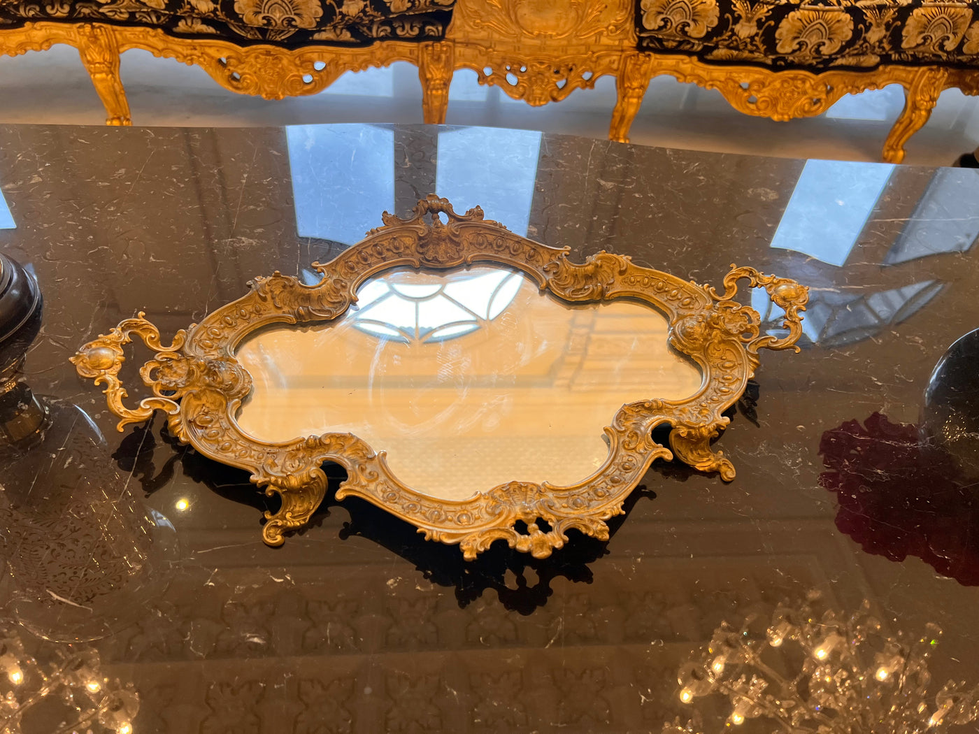 Antique Brass Mirrored Tray.