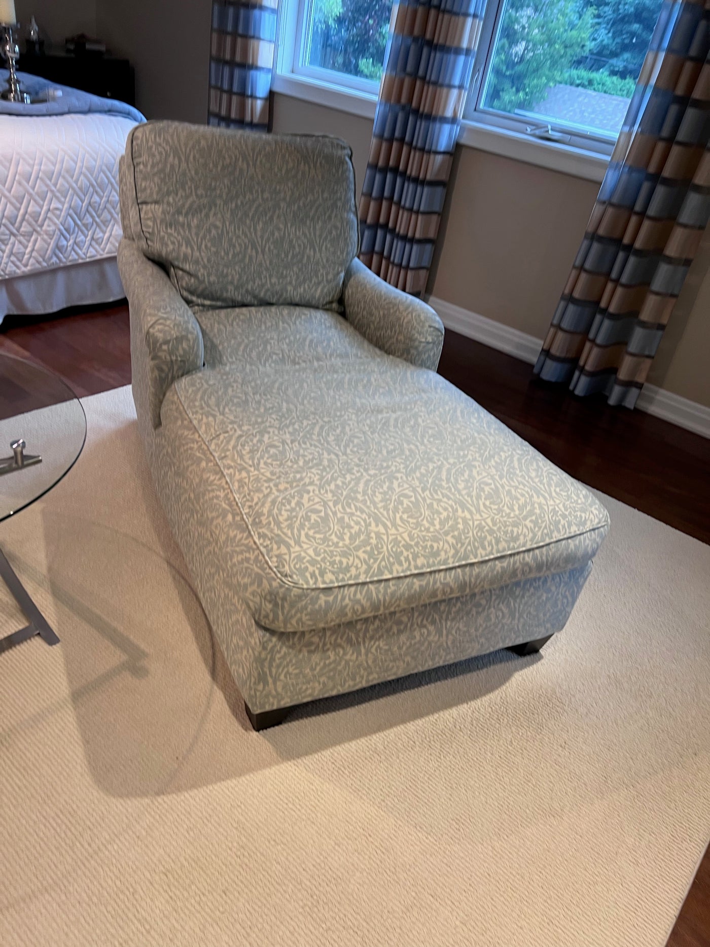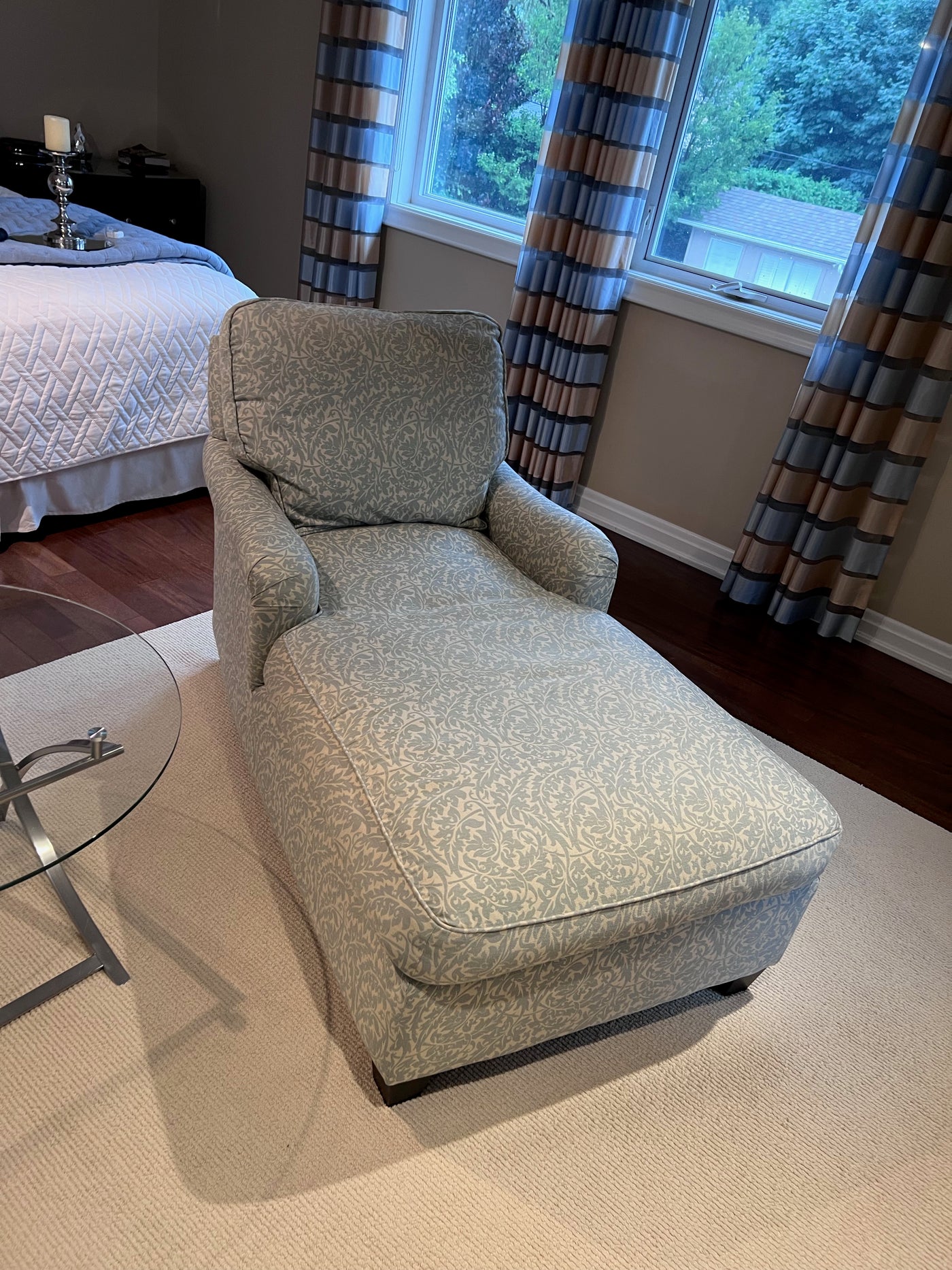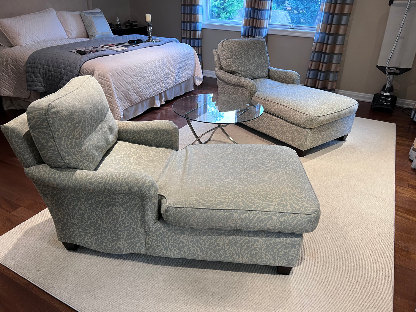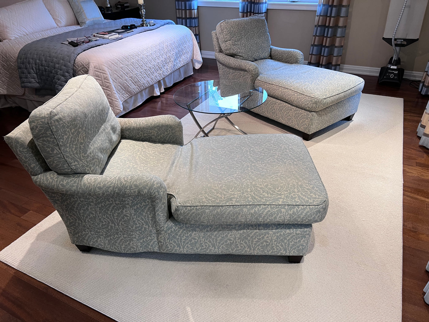 2 Blue & White Upholstered Chairs Loungers (*2 Available- Priced Individually).