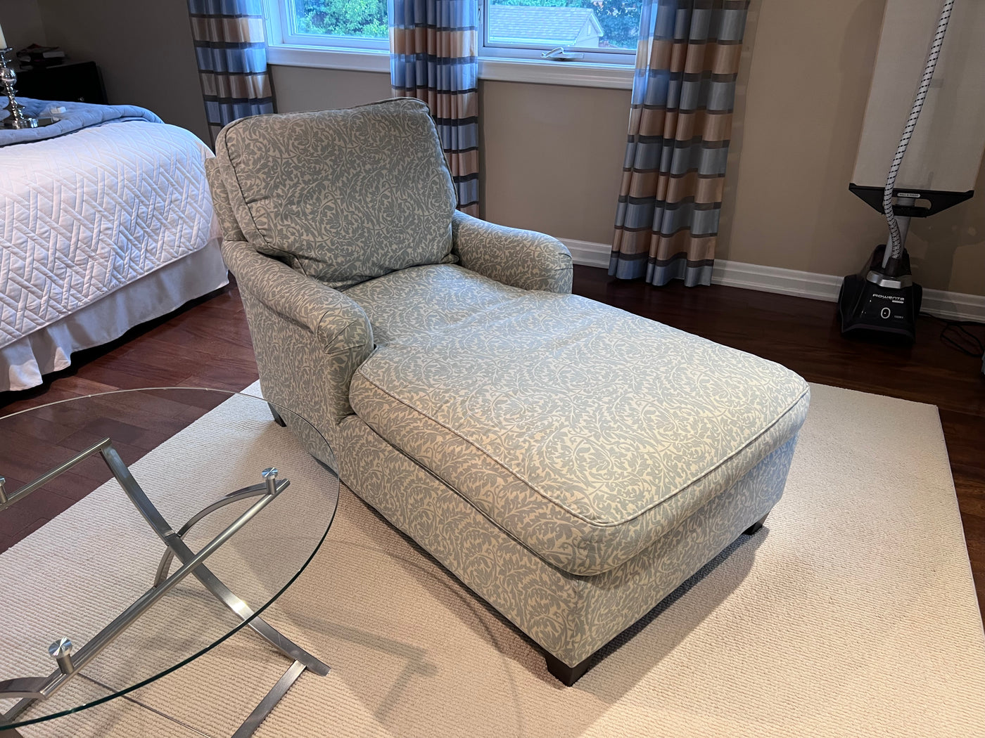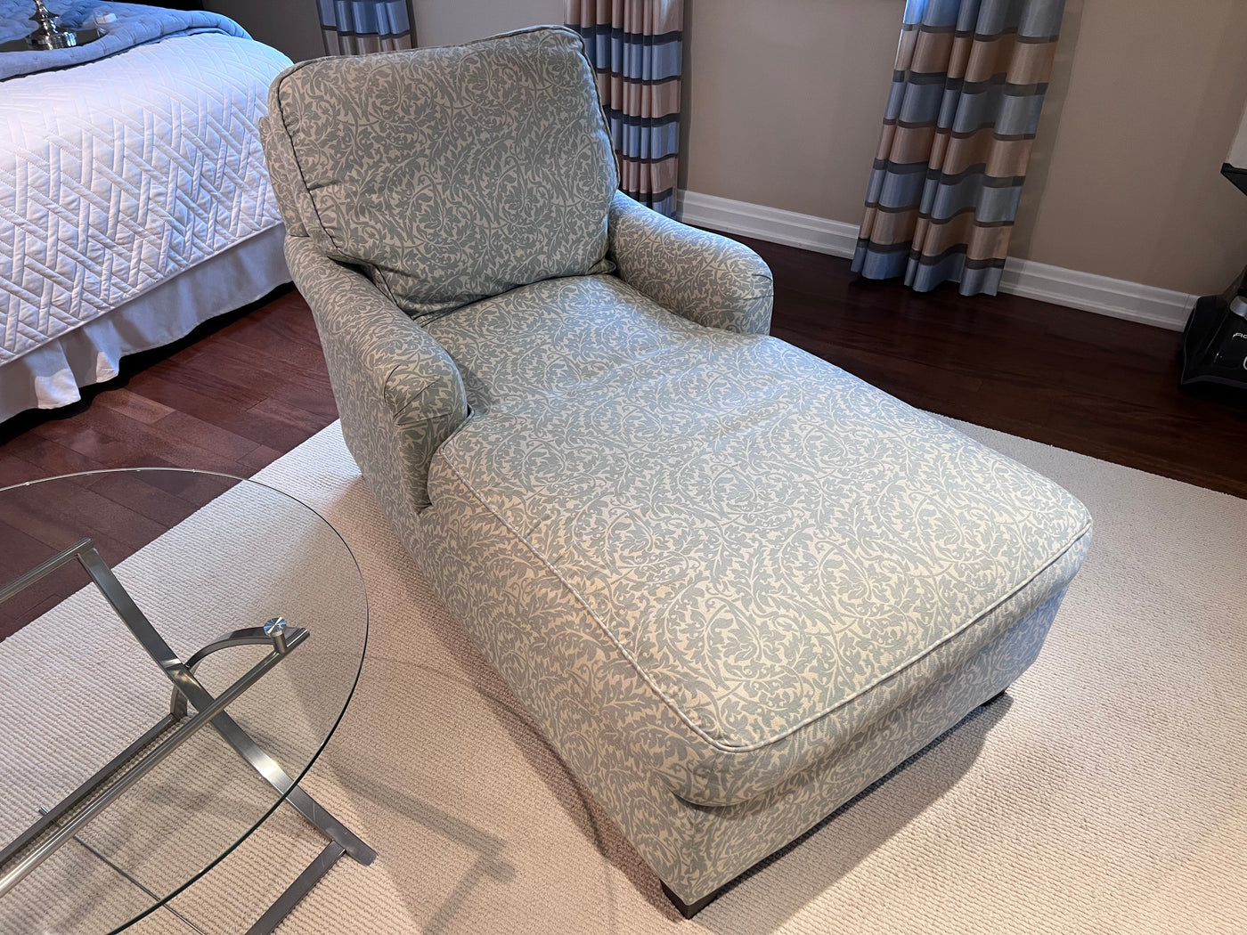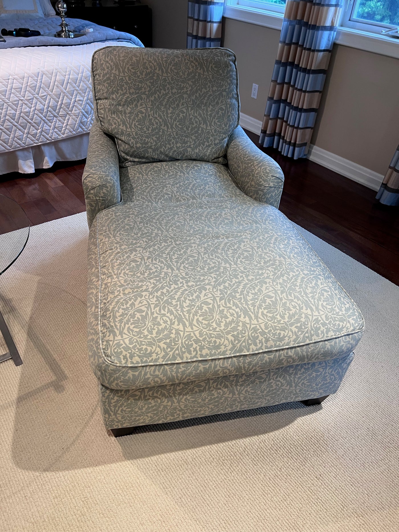 2 Blue & White Upholstered Chairs Loungers (*2 Available- Priced Individually).