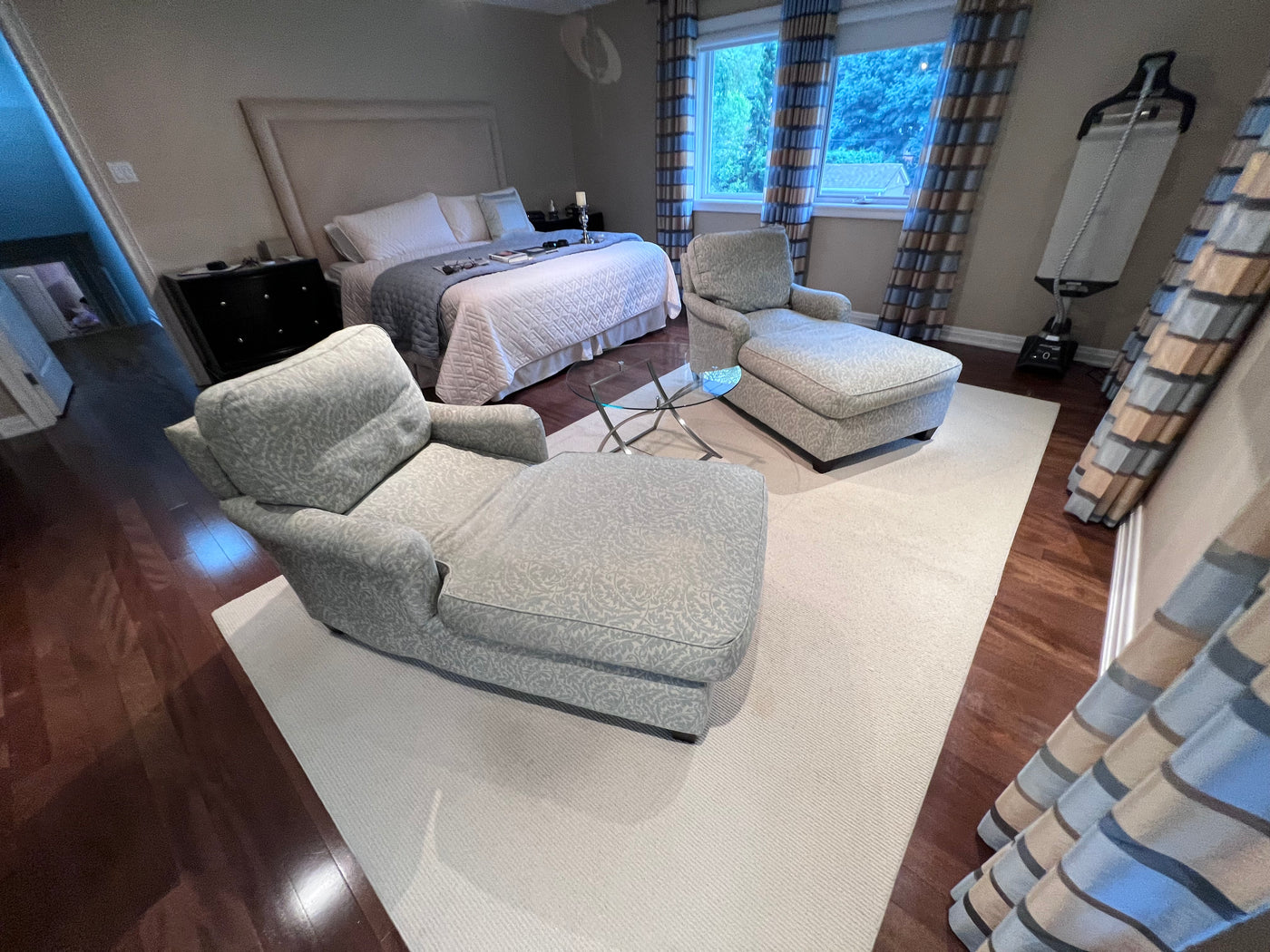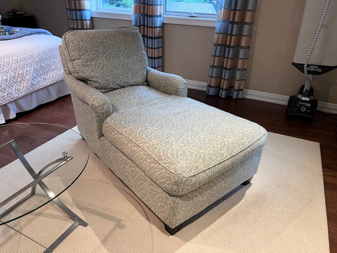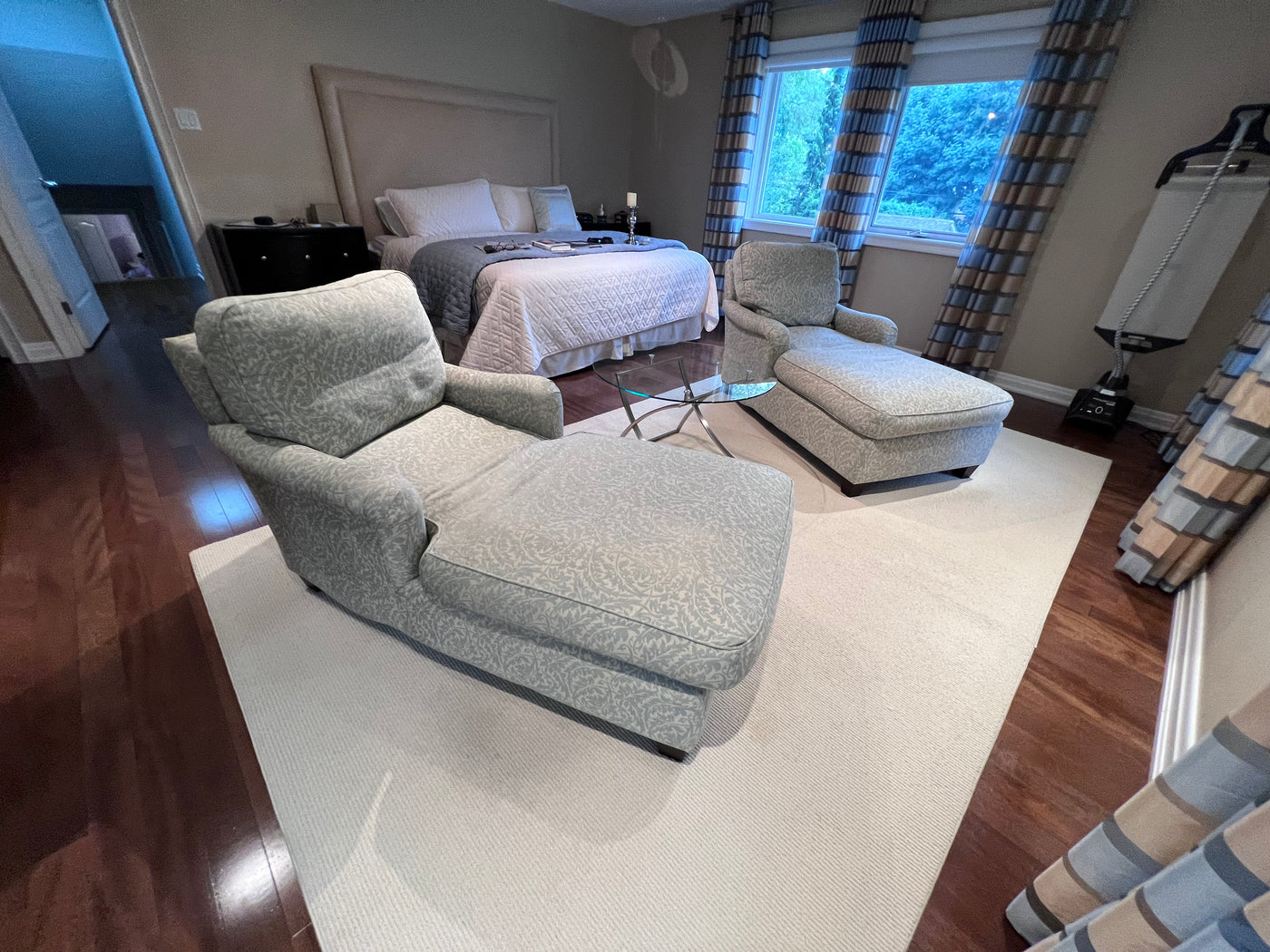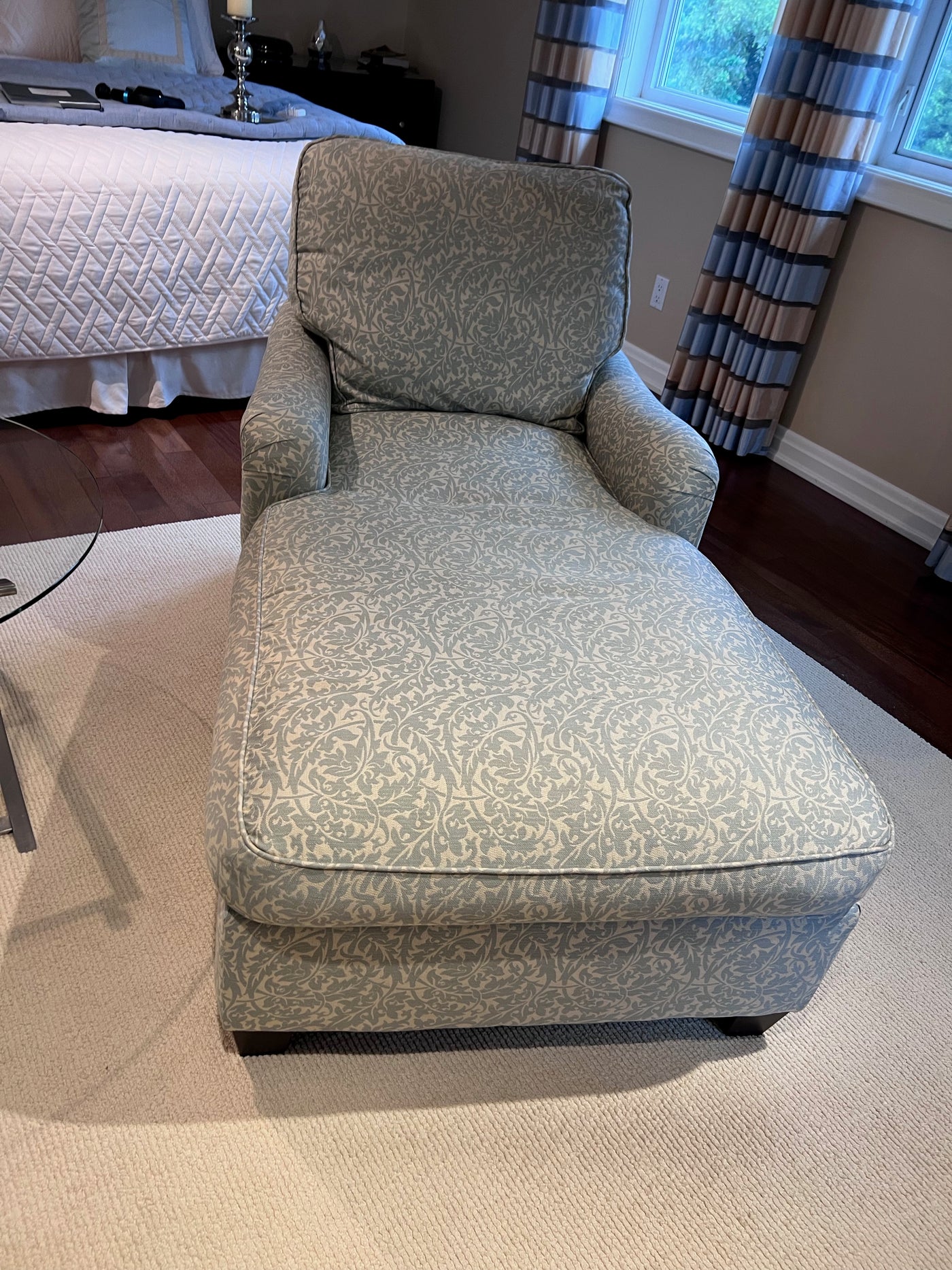 2 Blue & White Upholstered Chairs Loungers (*2 Available- Priced Individually).