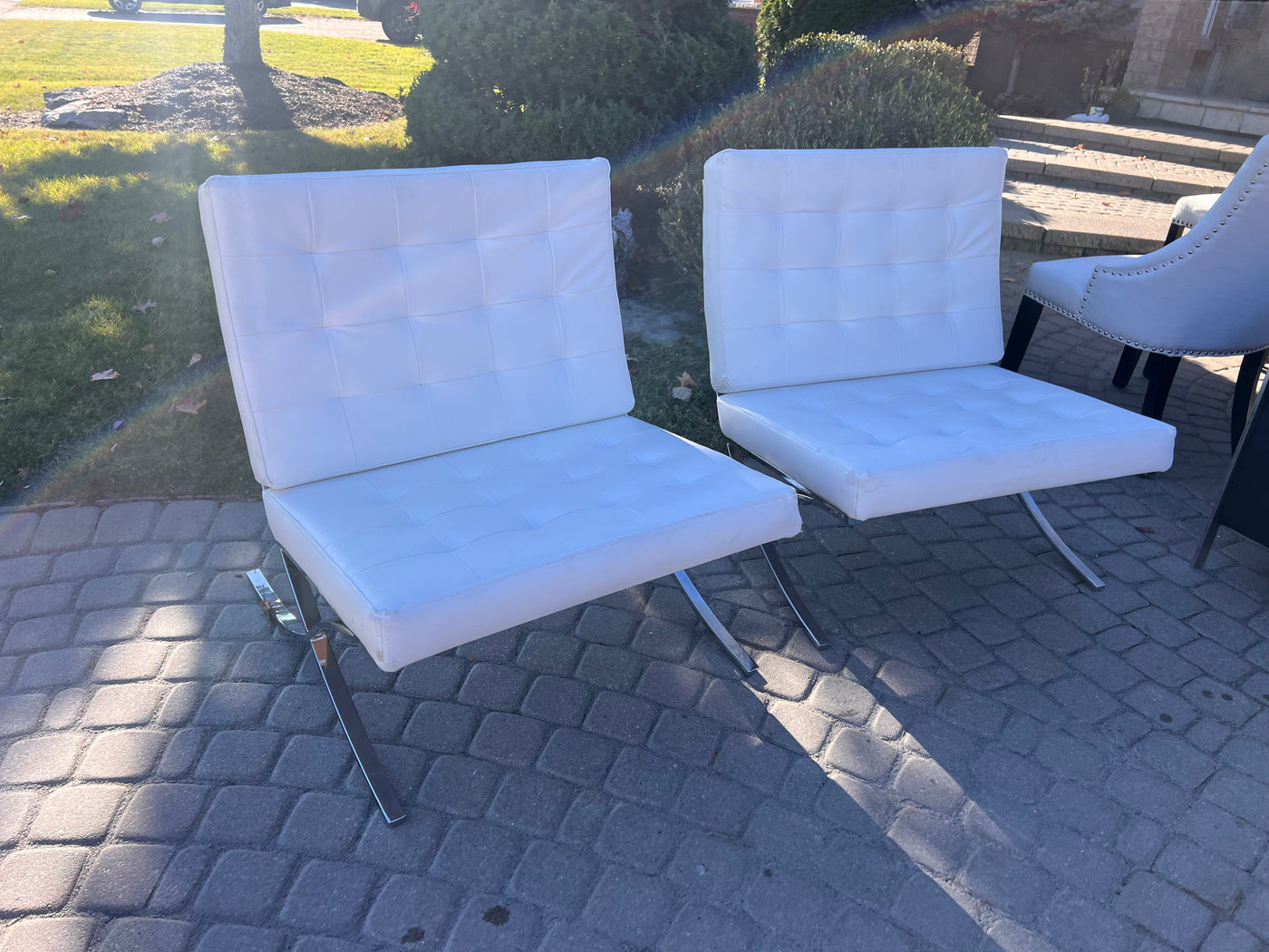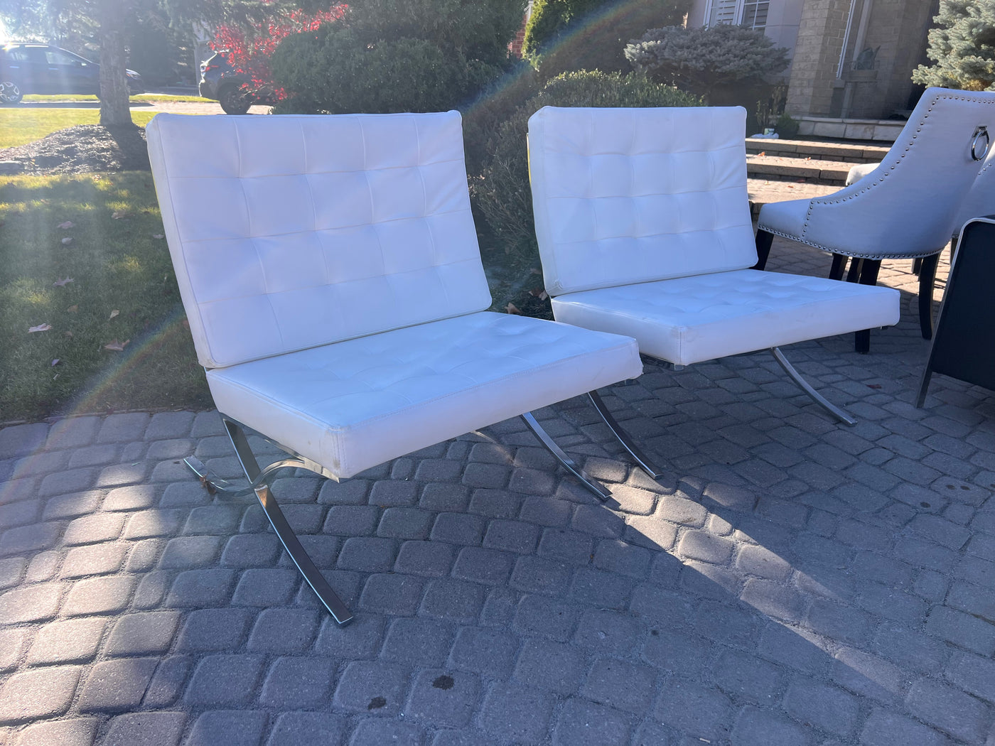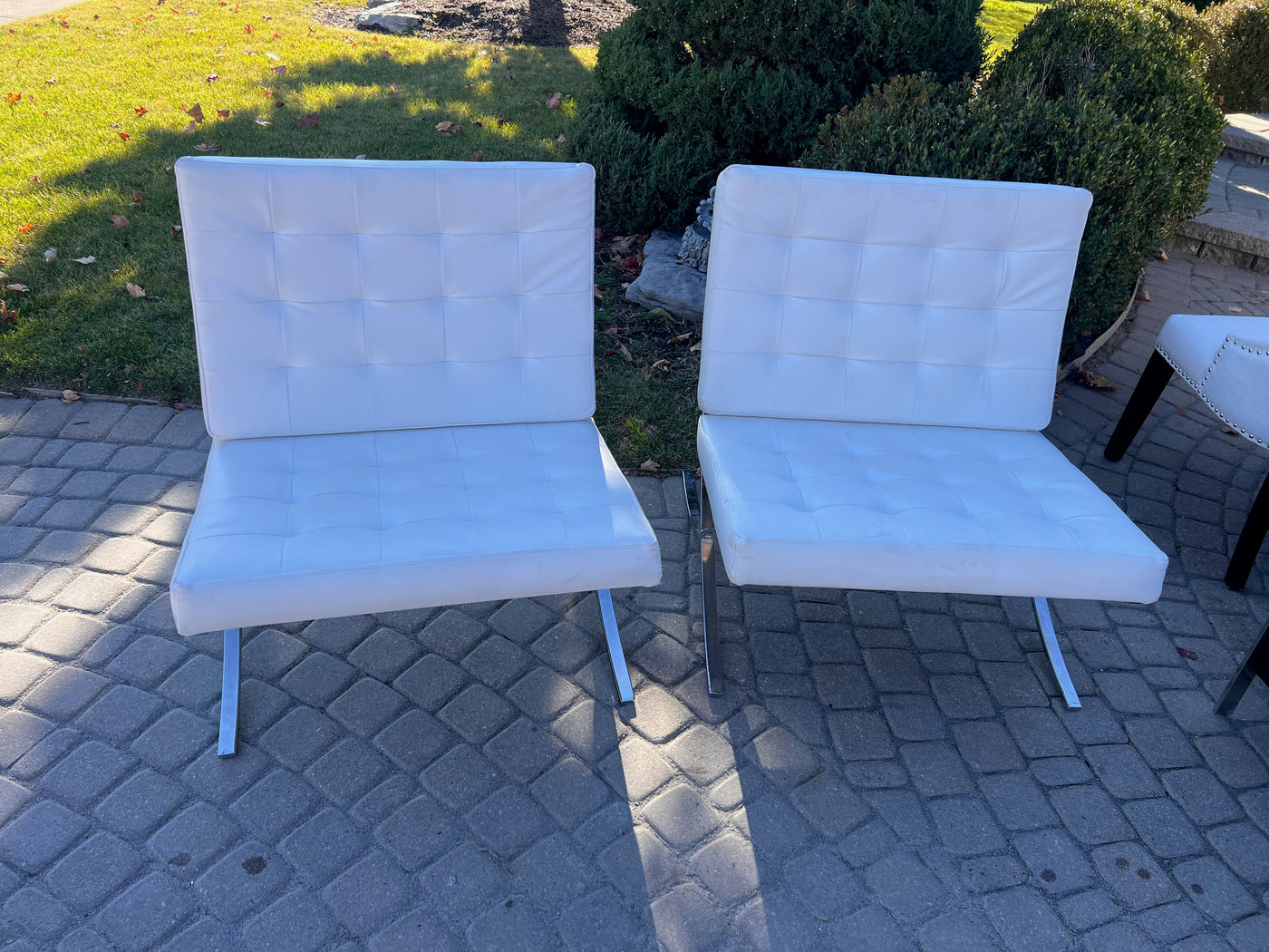 Pair of White Barcelona Chairs (*slight condition noted).