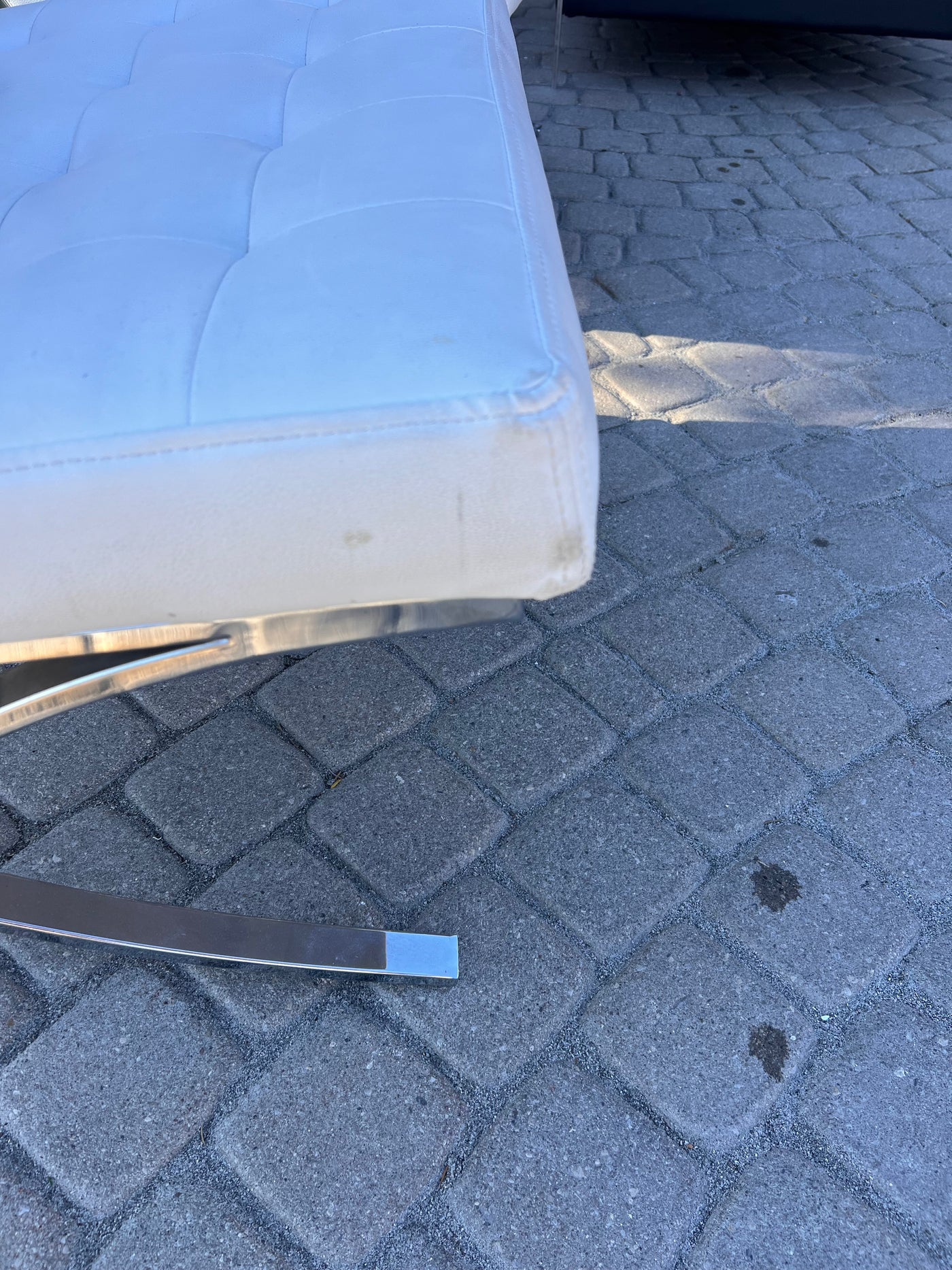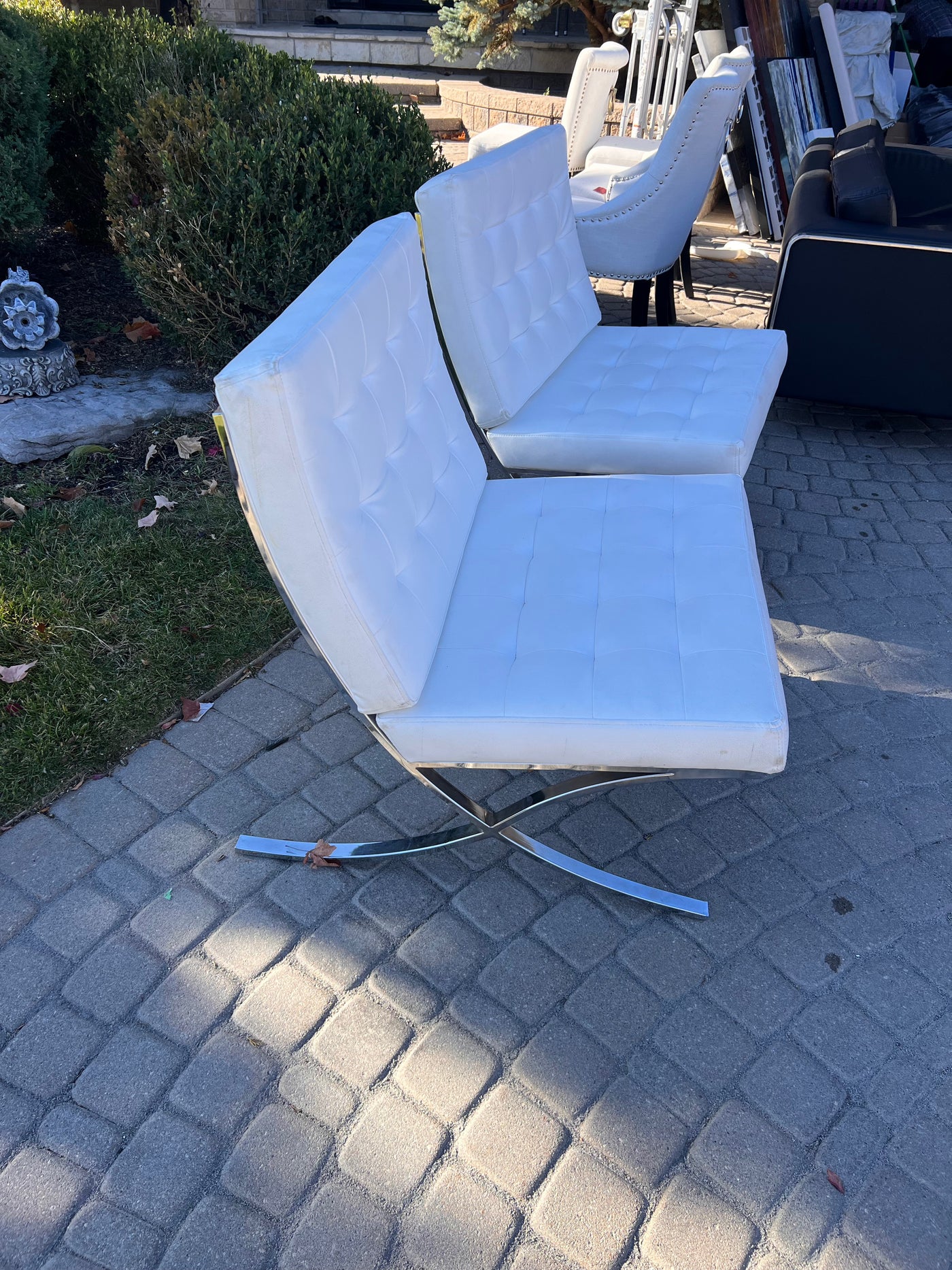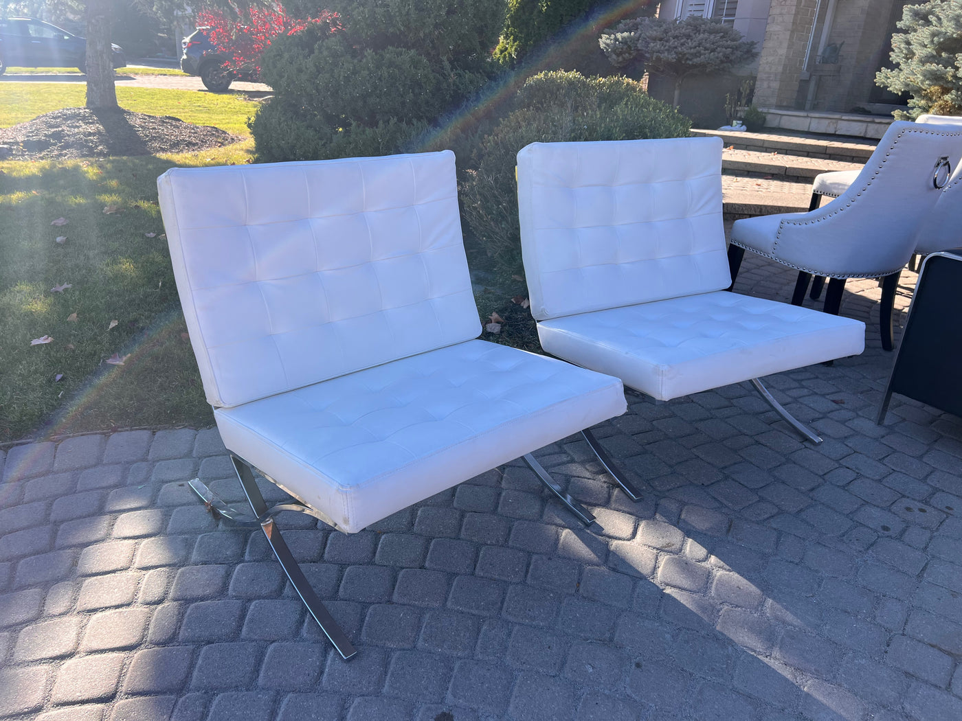 Pair of White Barcelona Chairs (*slight condition noted).