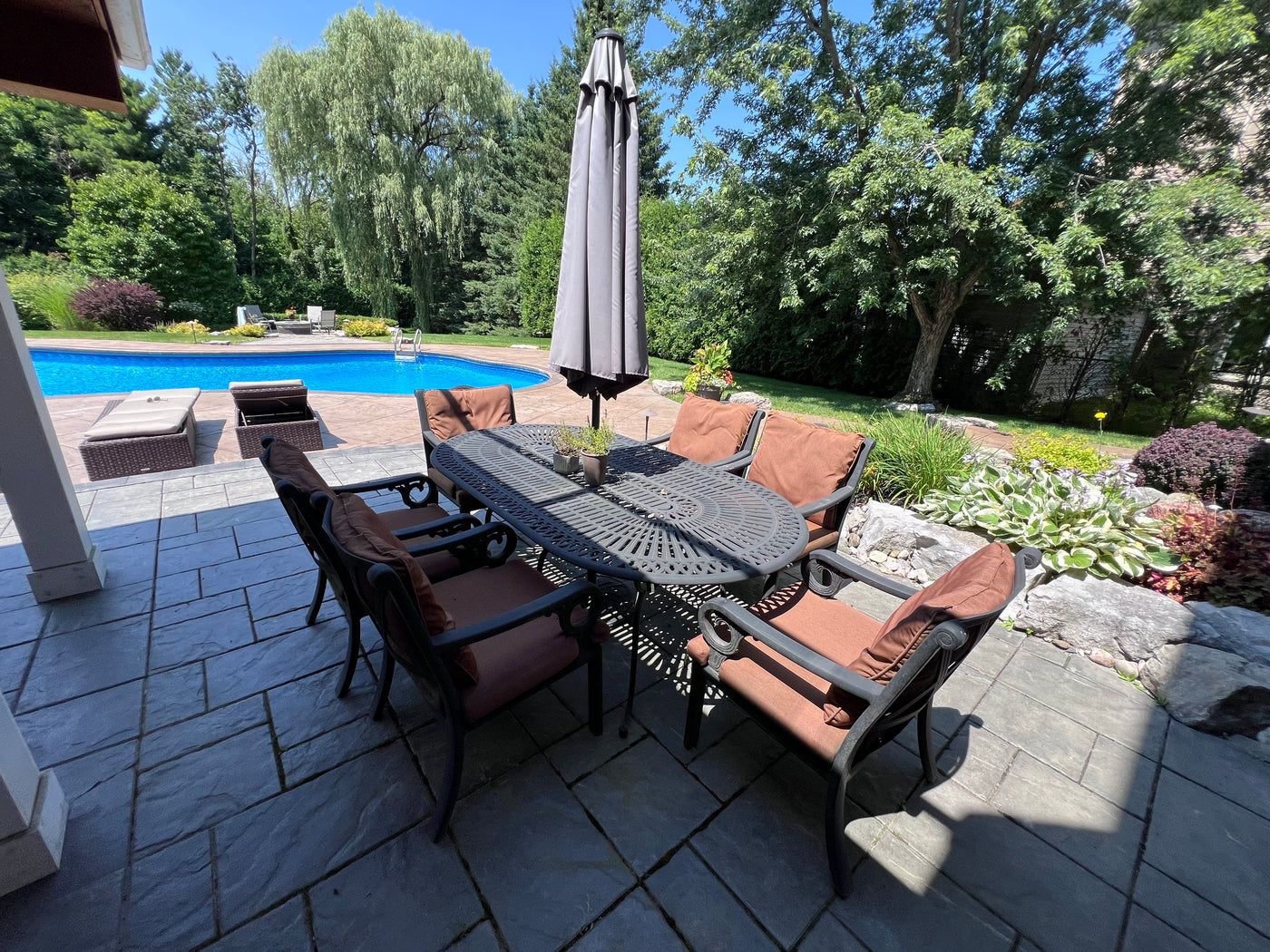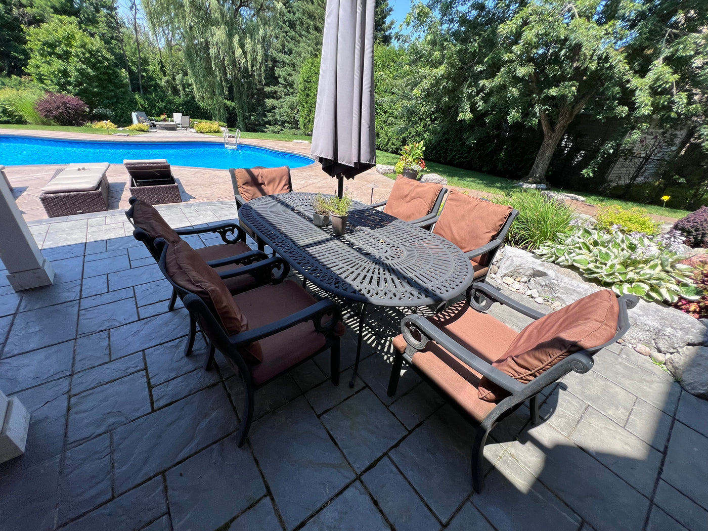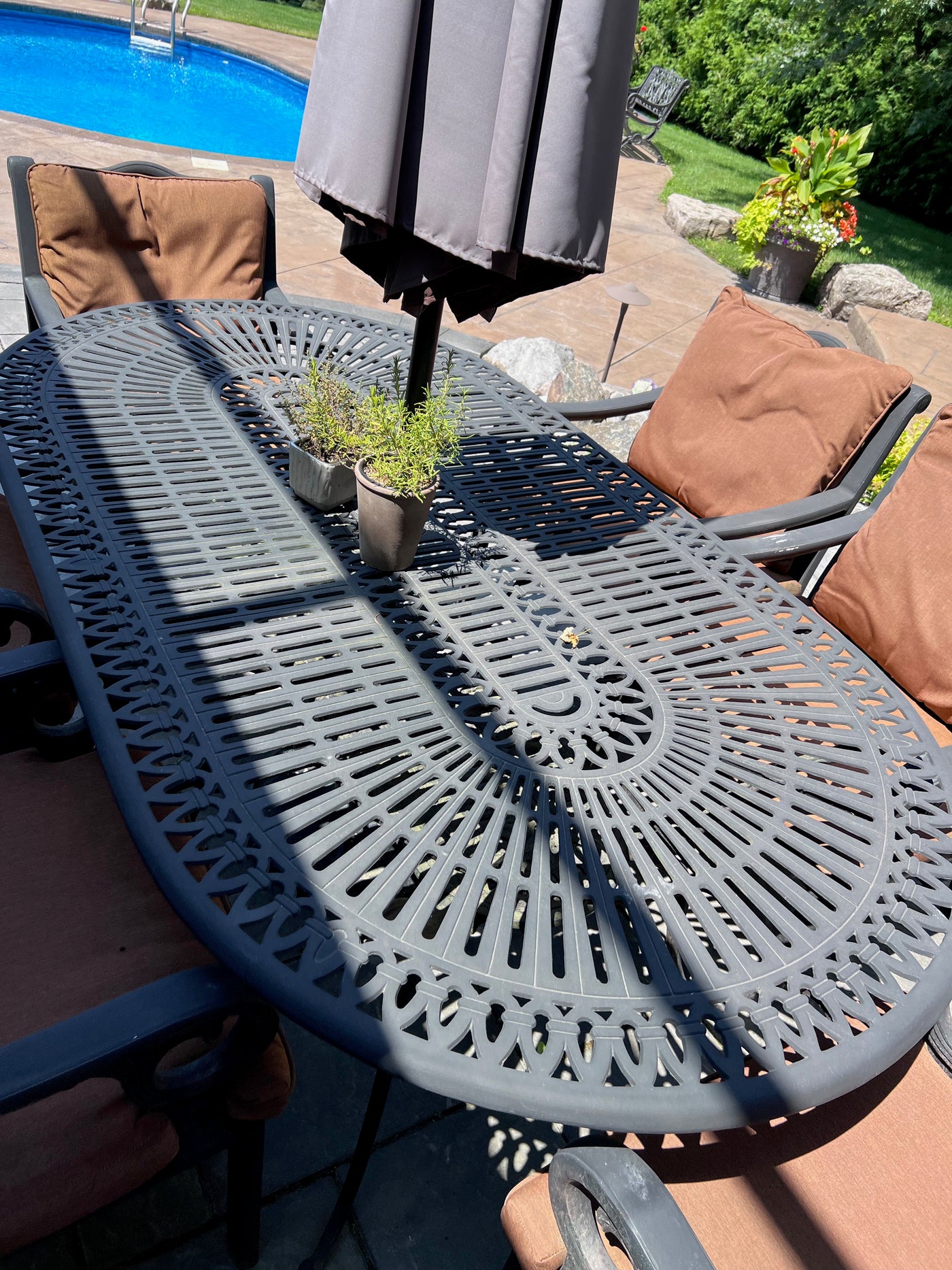 Cast Aluminum Patio Dining Table + 6 Chairs.