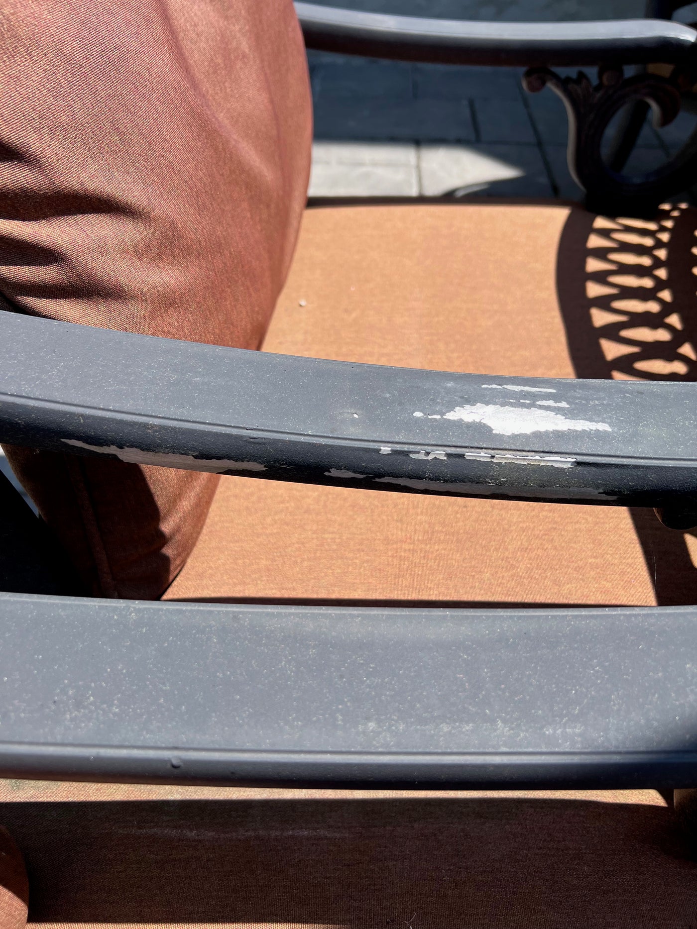 *some wear to the cushions as shown in the pictures. some have tears and other have stains. 1 OF THE ARMS ON A CHAIR IS PEELING AS SHOWN.