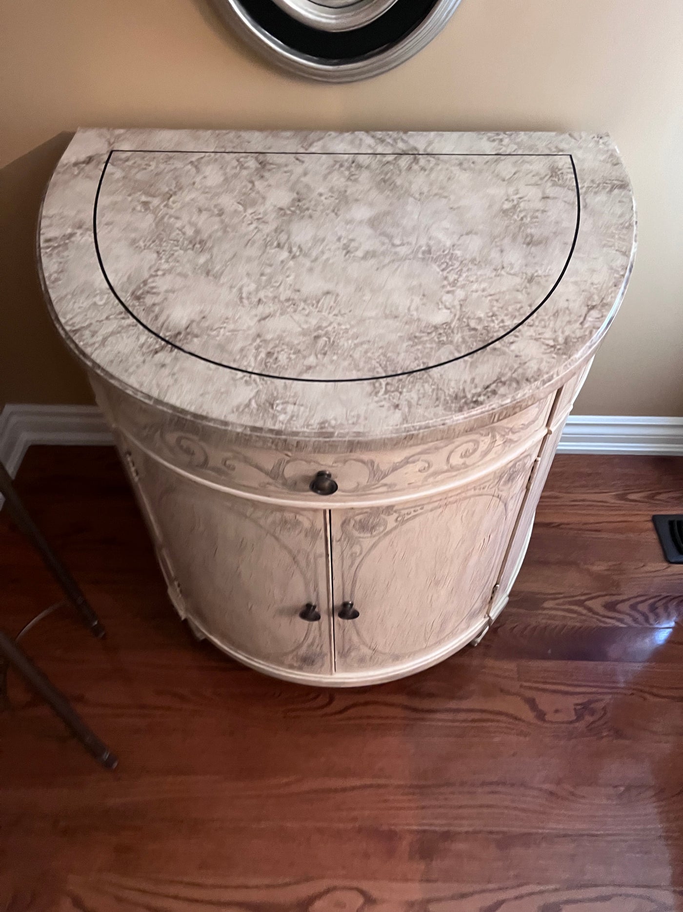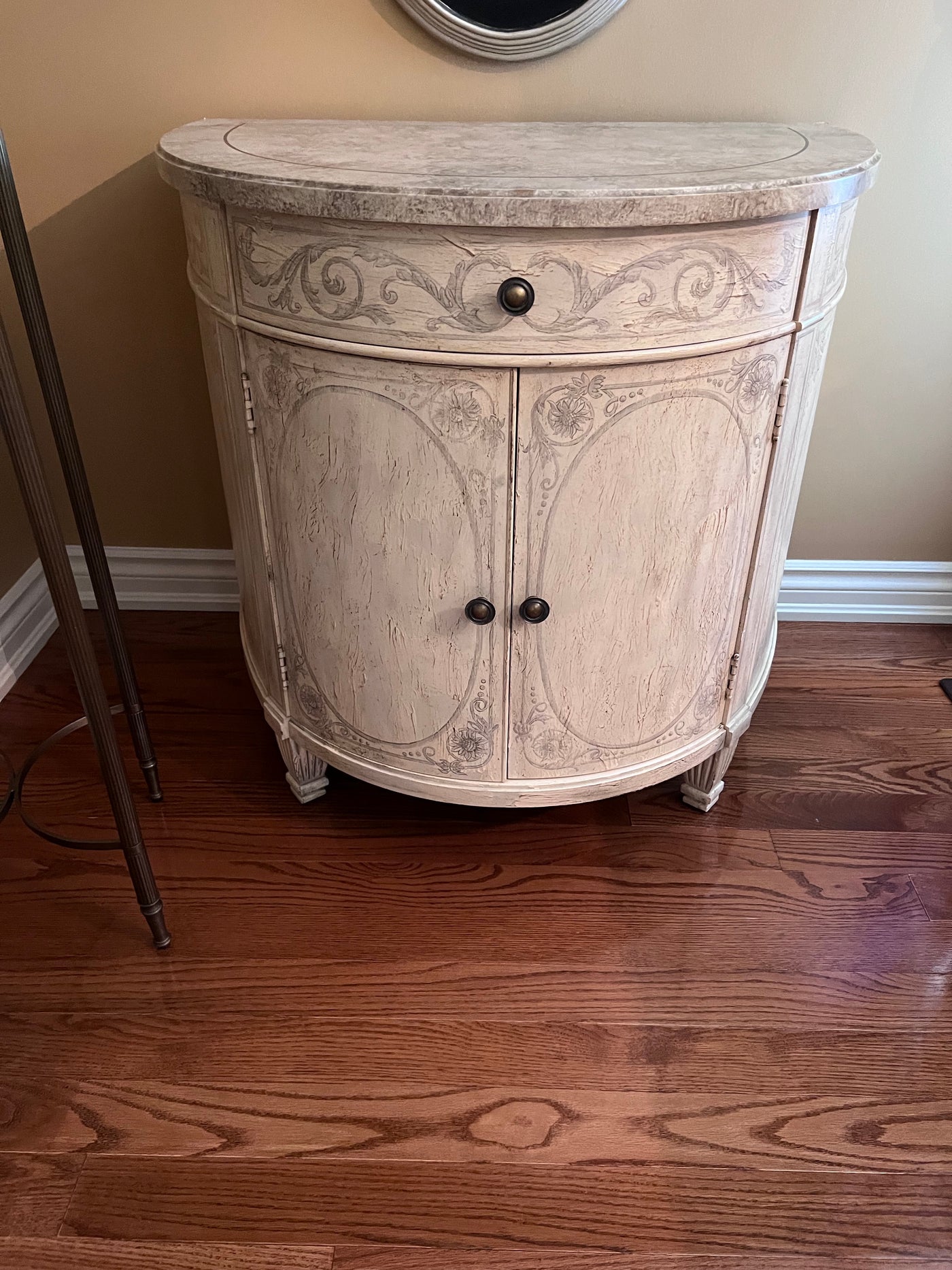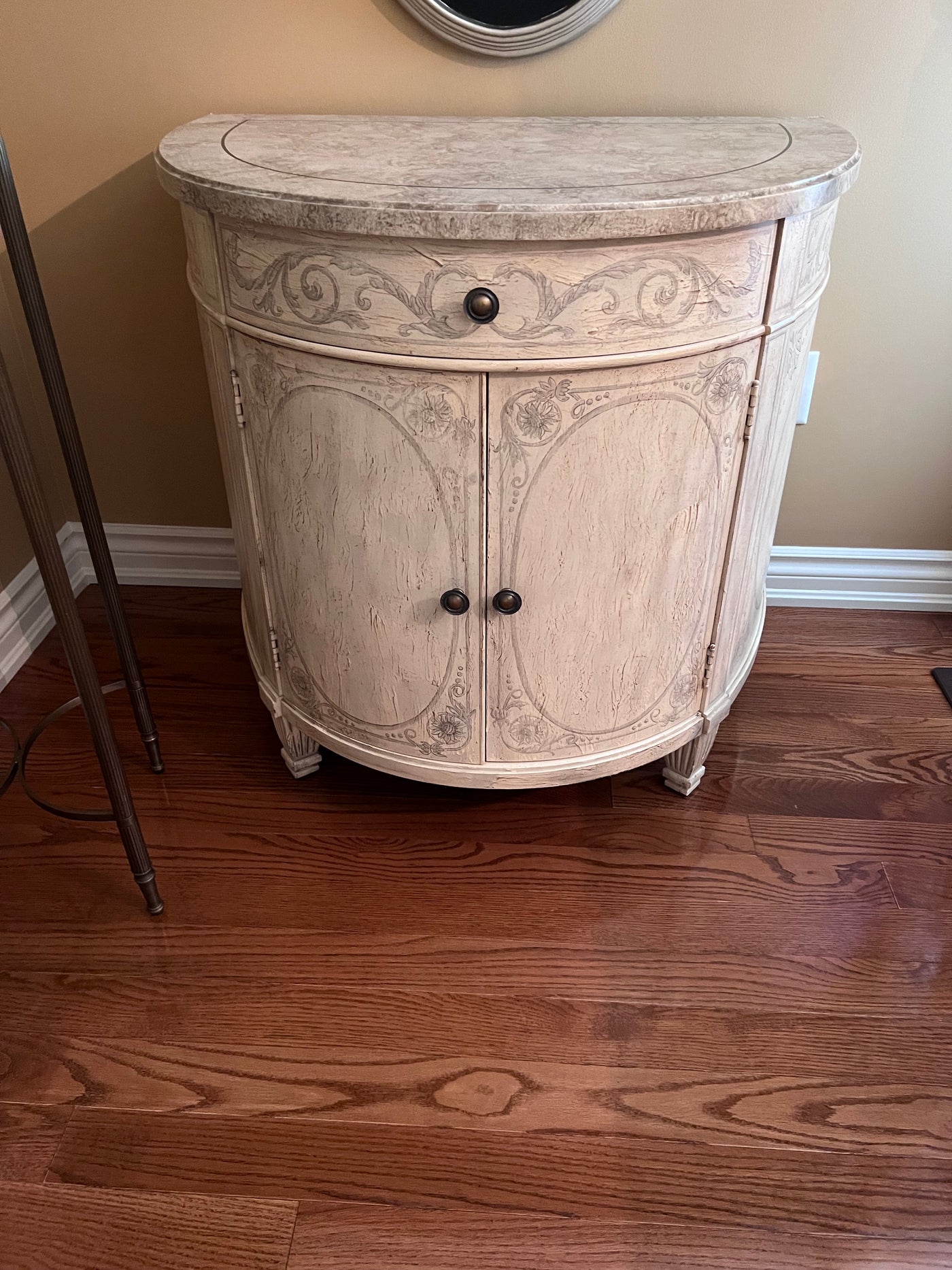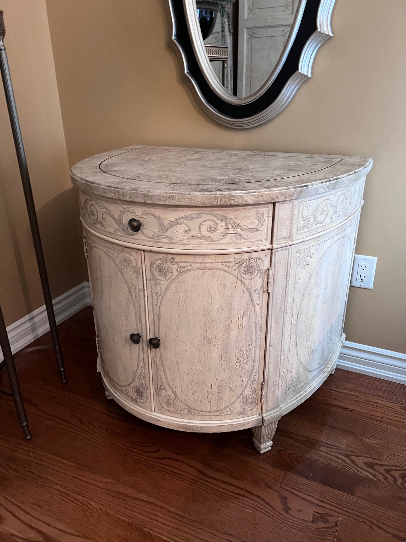 Pair of Drexel Heritage Italian Neoclassical Demilune Cabinets/Side Tables.