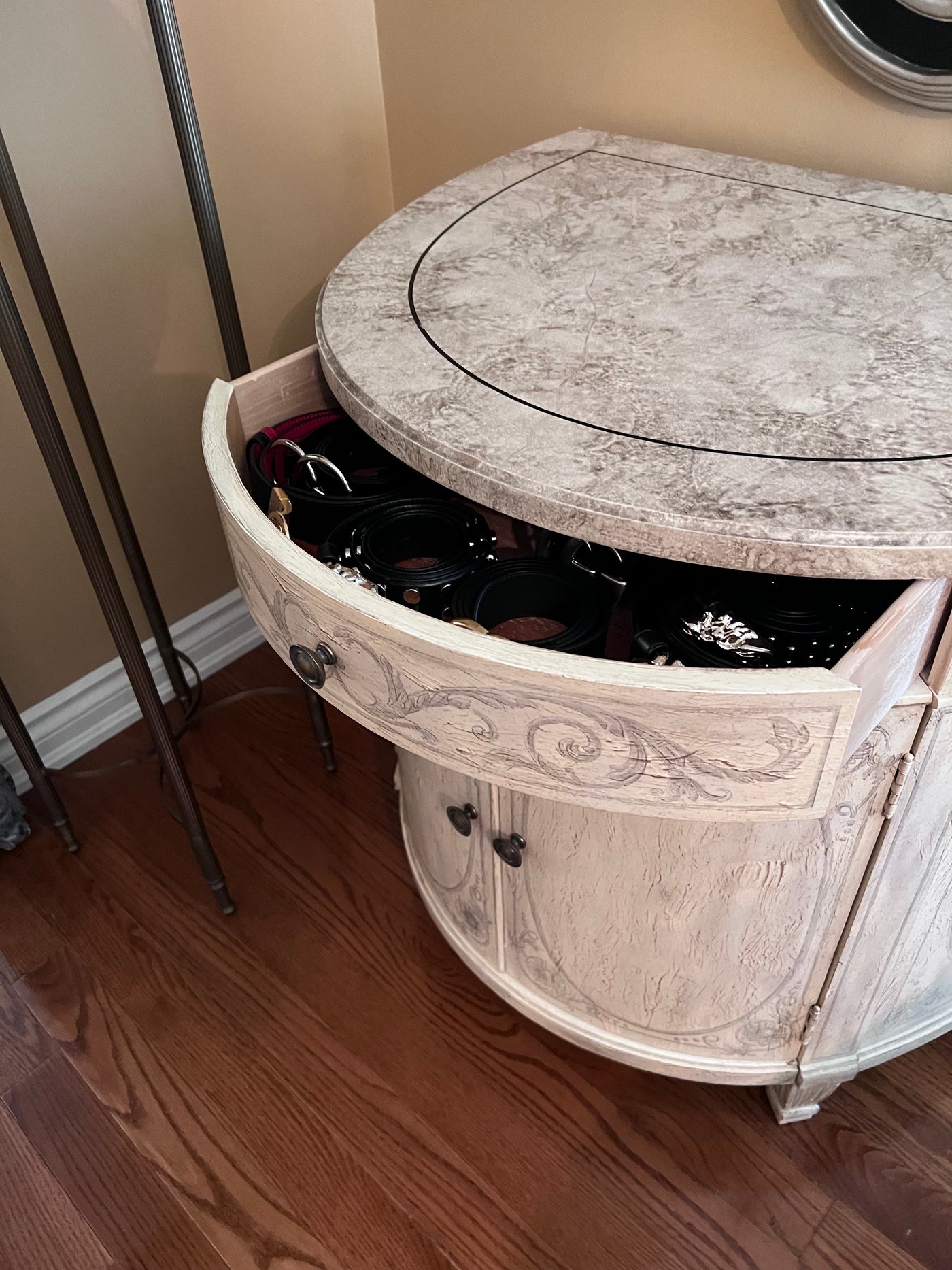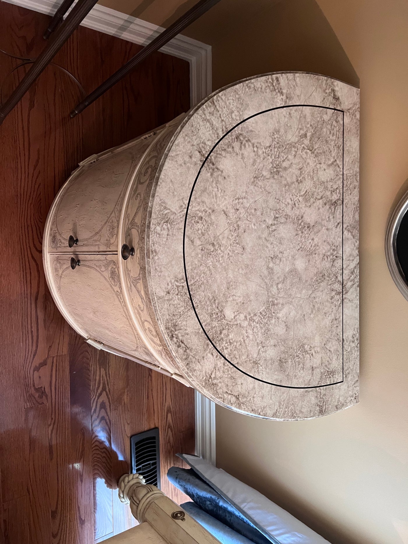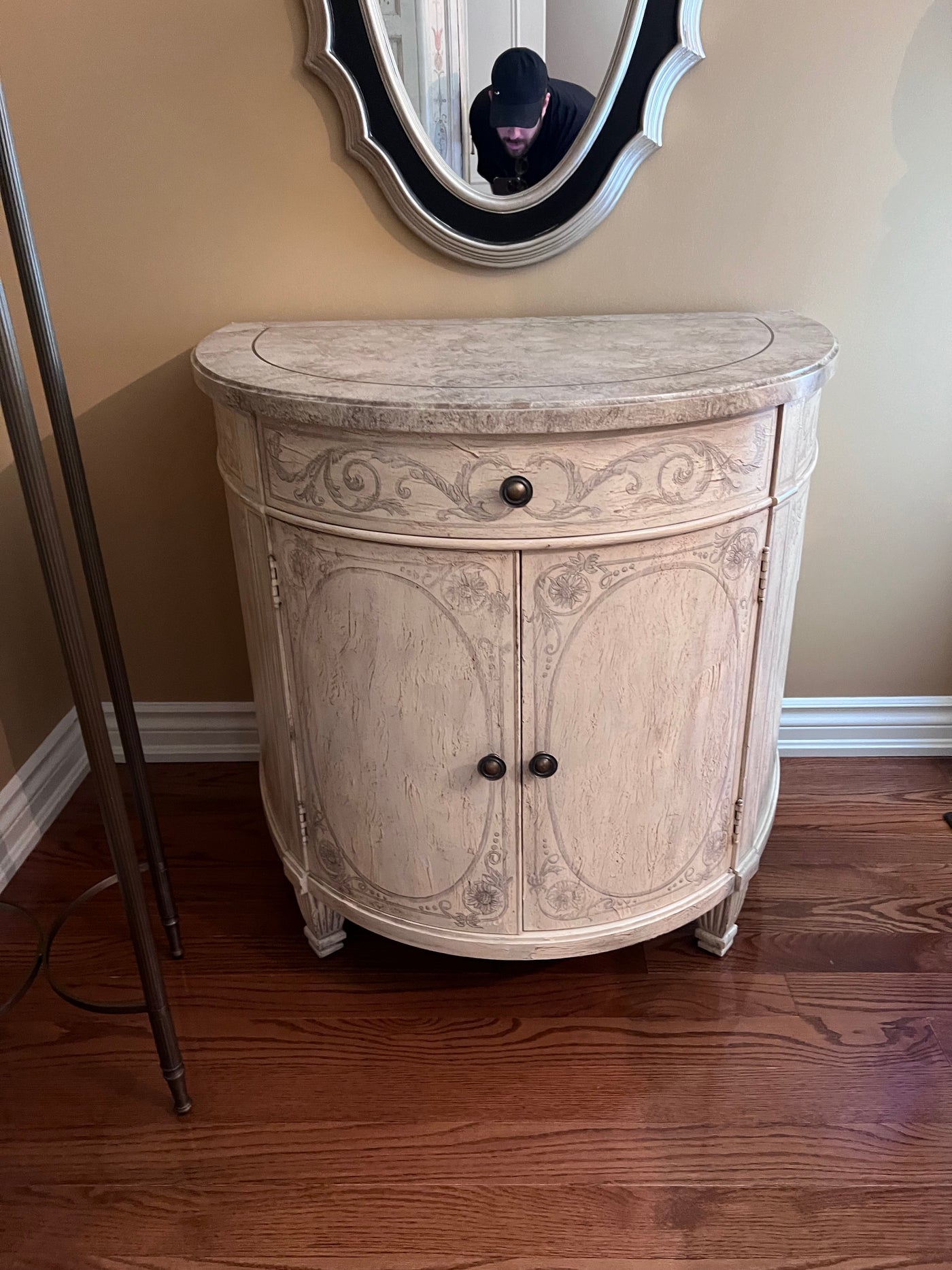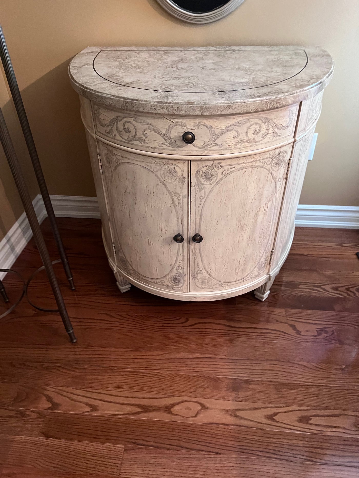 Pair of Drexel Heritage Italian Neoclassical Demilune Cabinets/Side Tables.