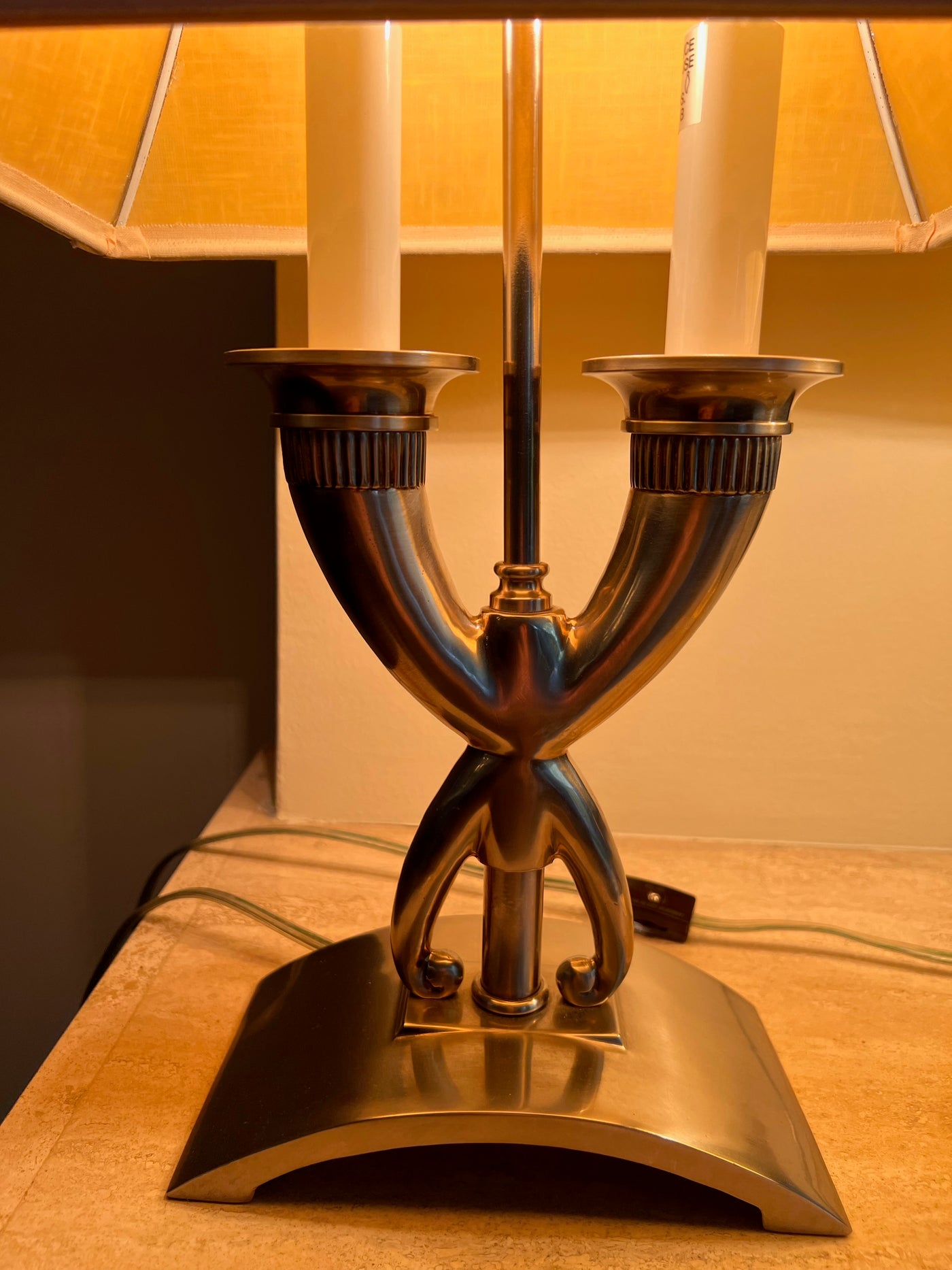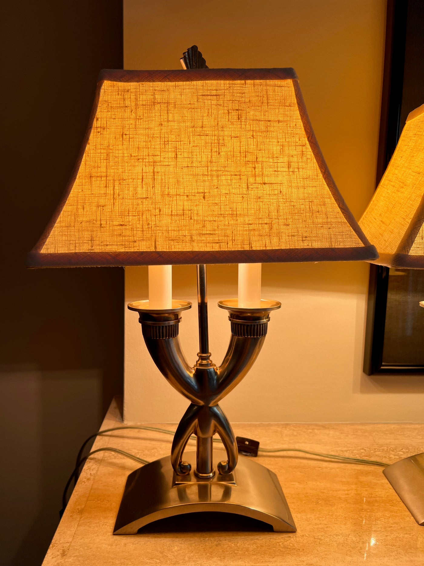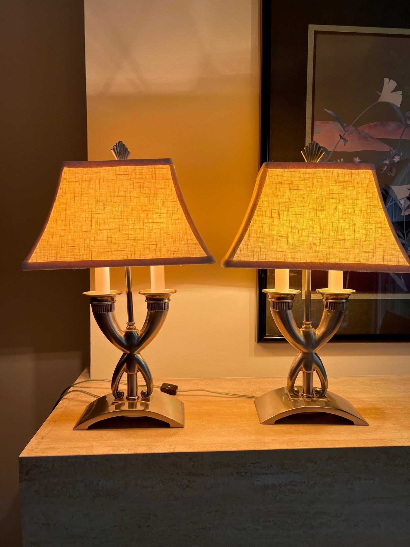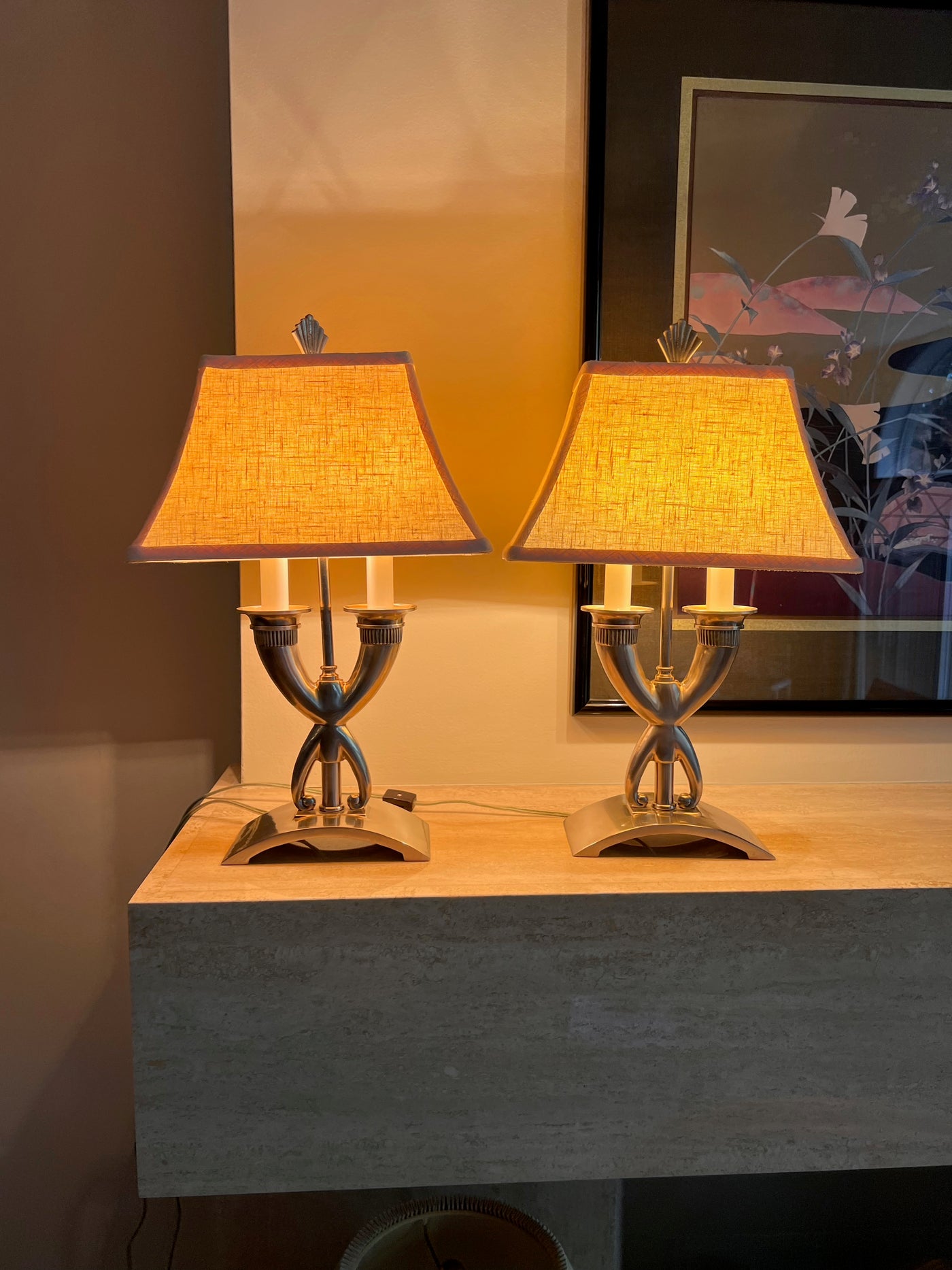 Pair of Silver Table Lamps, Cream Shade.