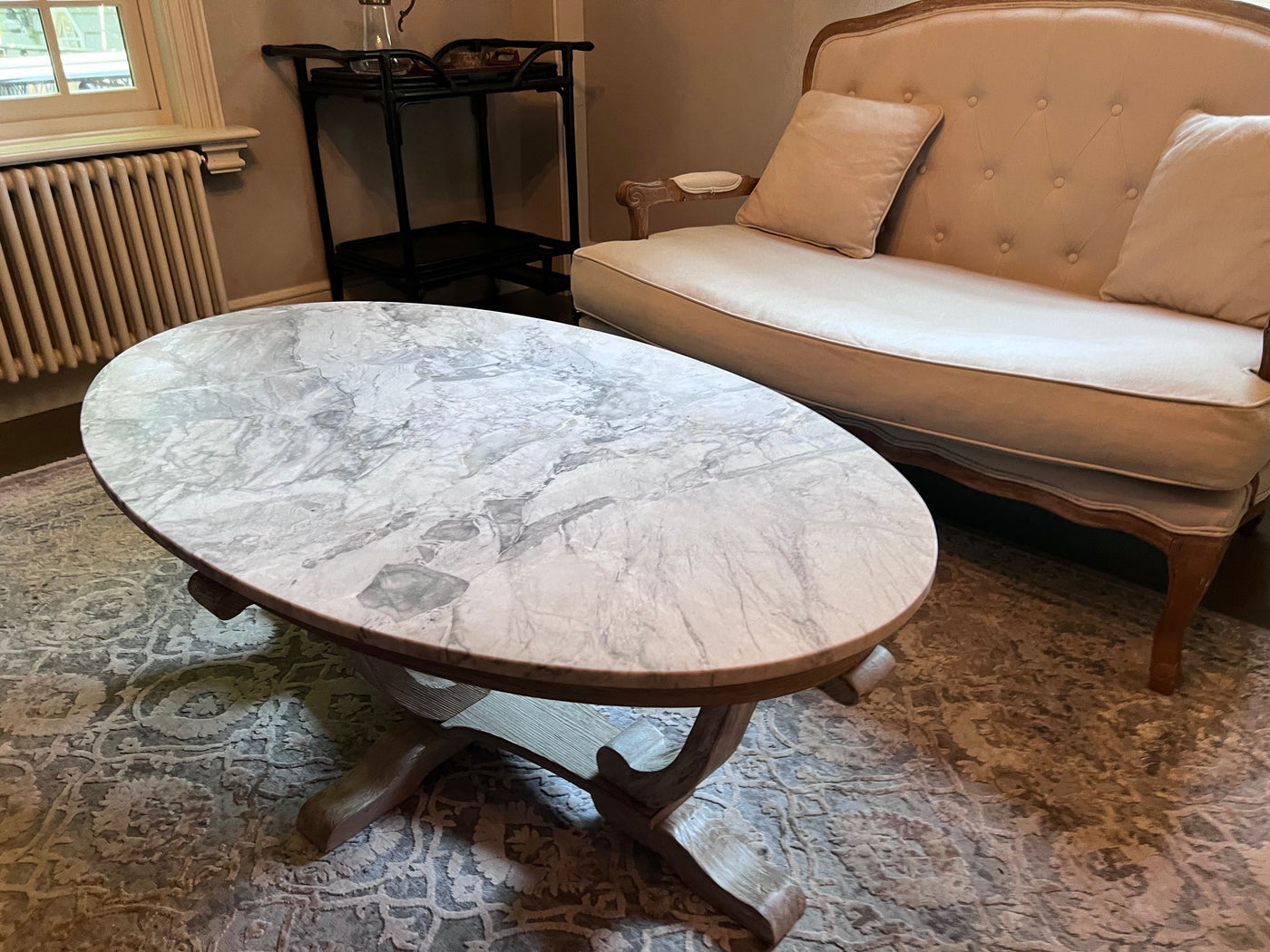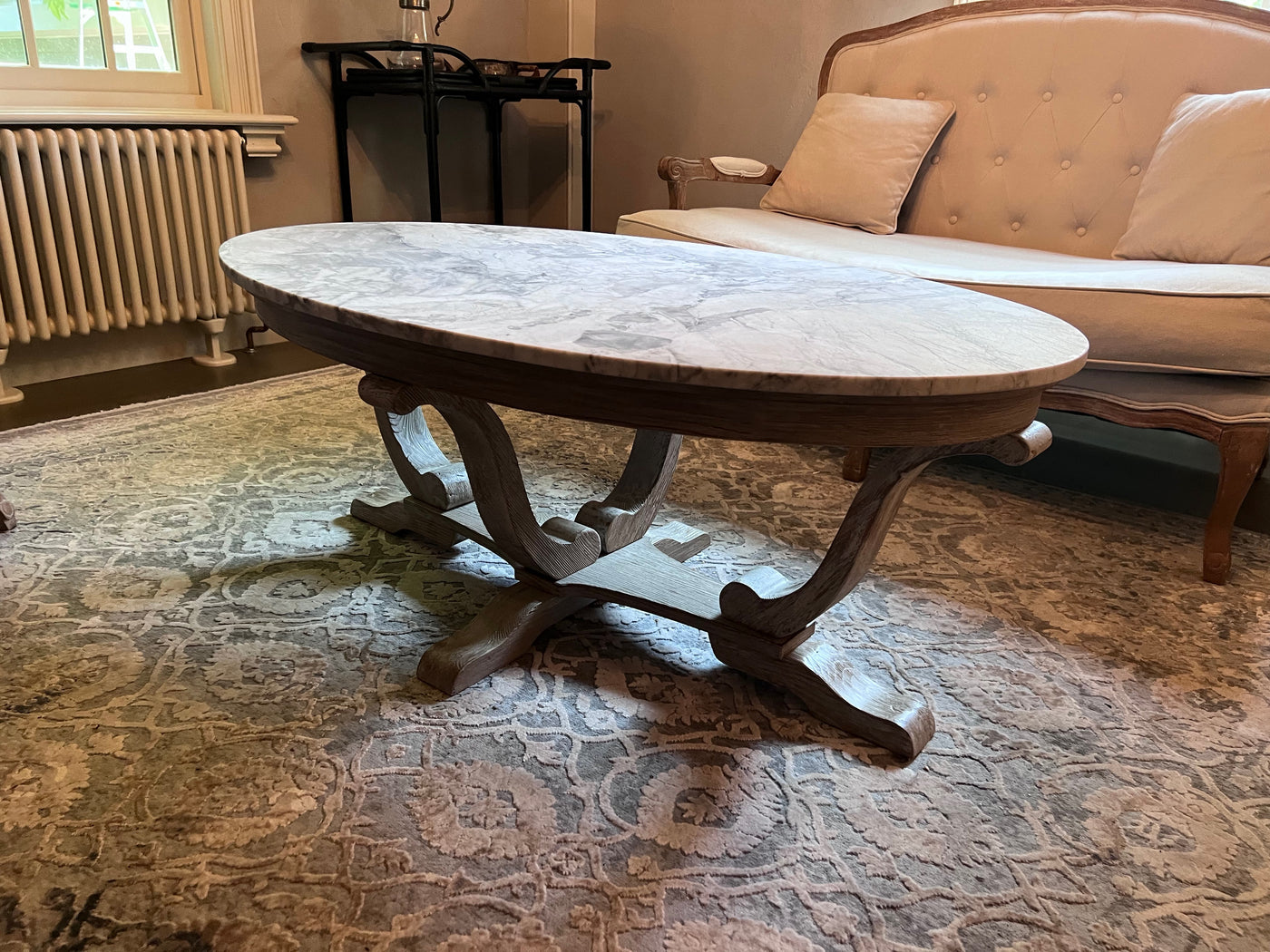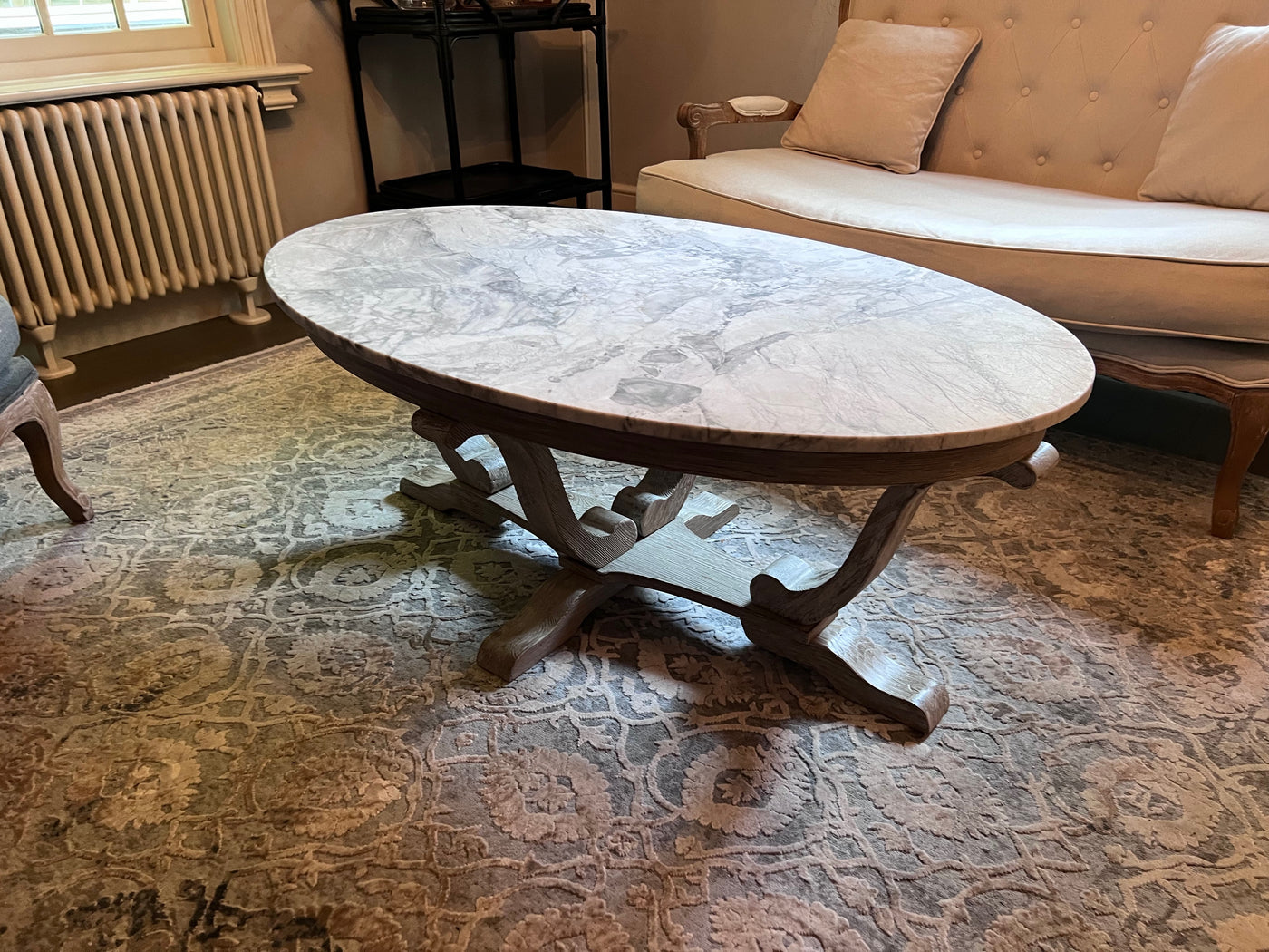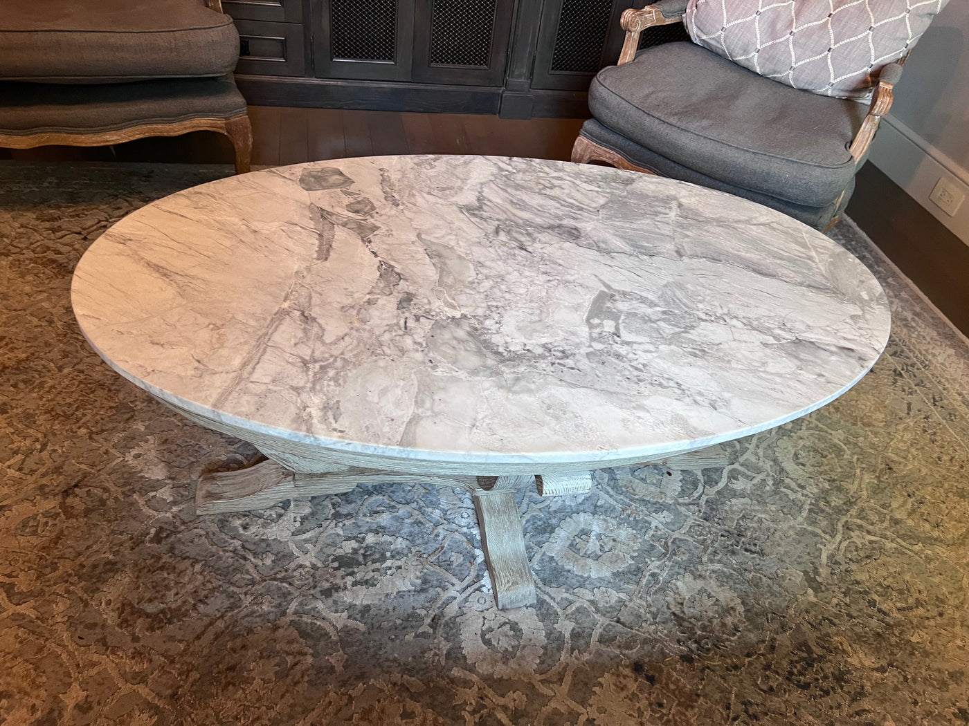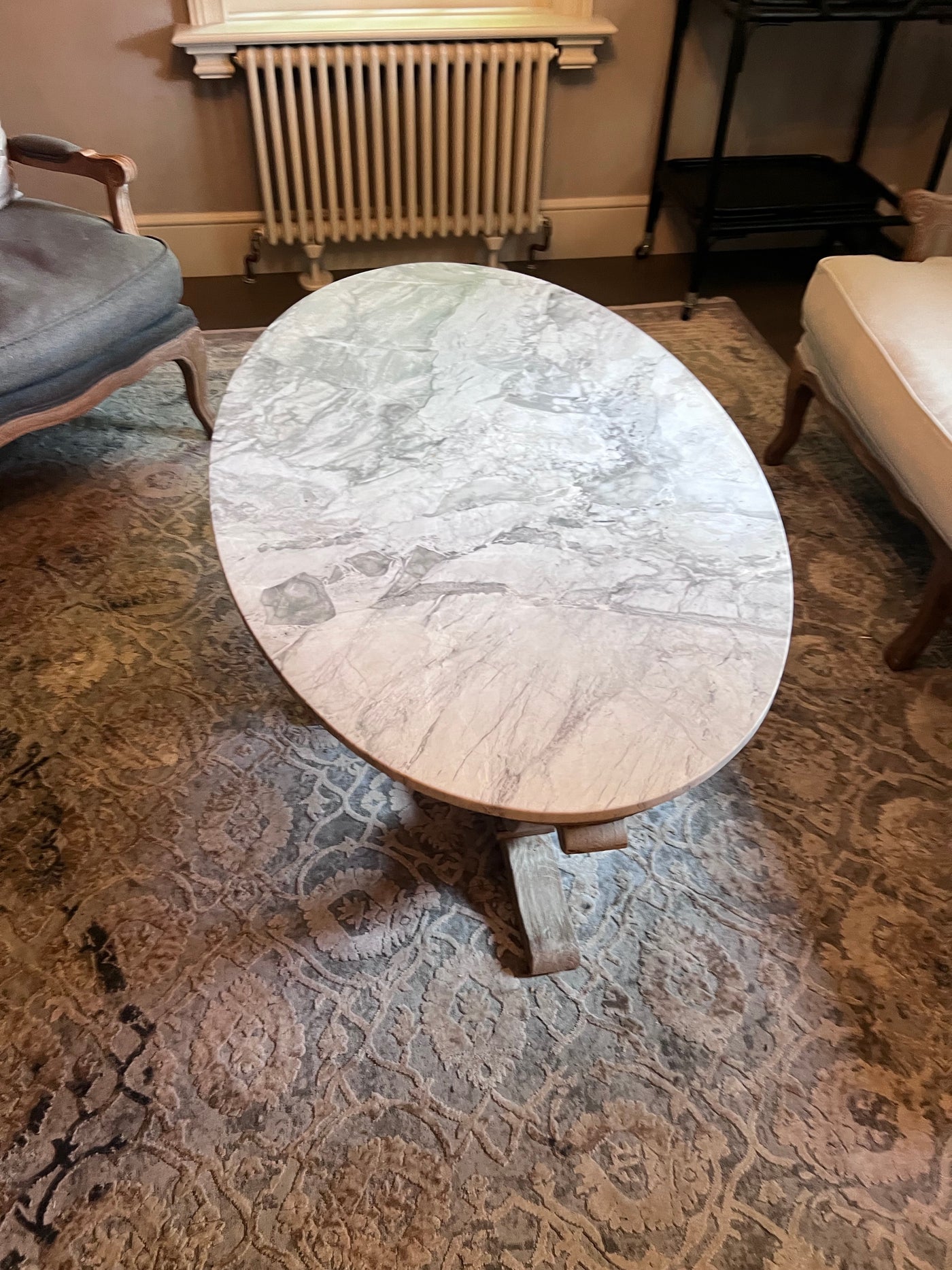 Liberty Furniture Greystone Mill Oval Cocktail Table with Custom Marble Top.