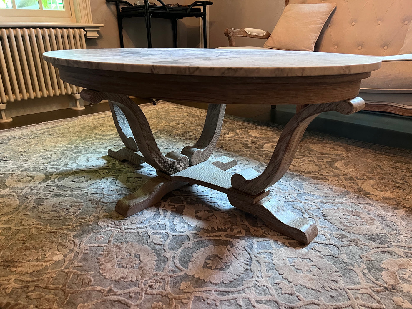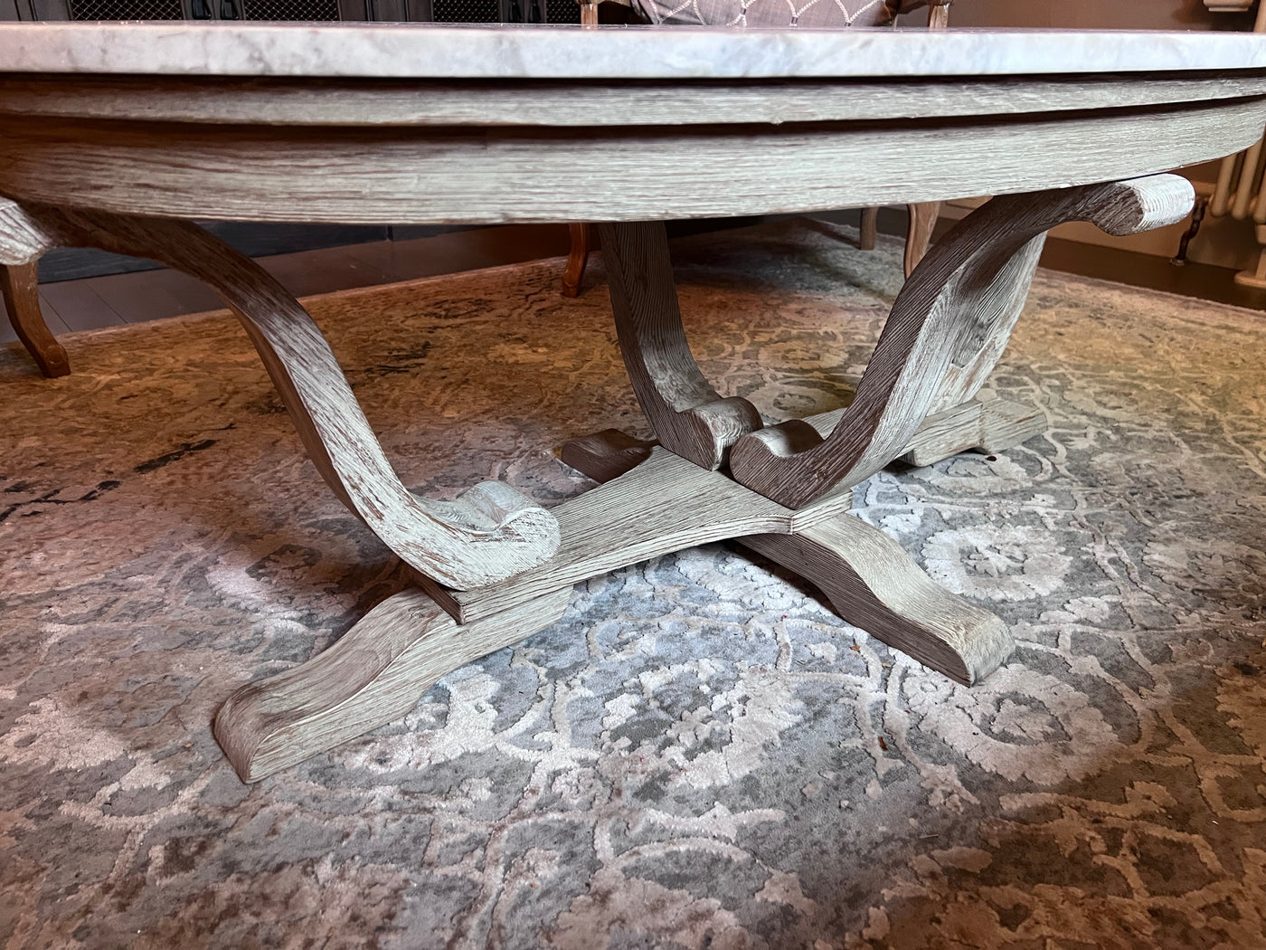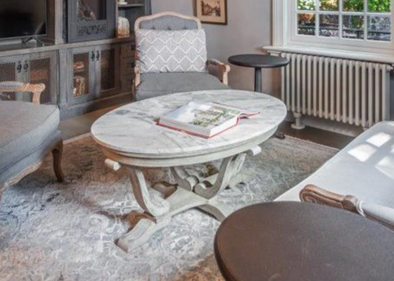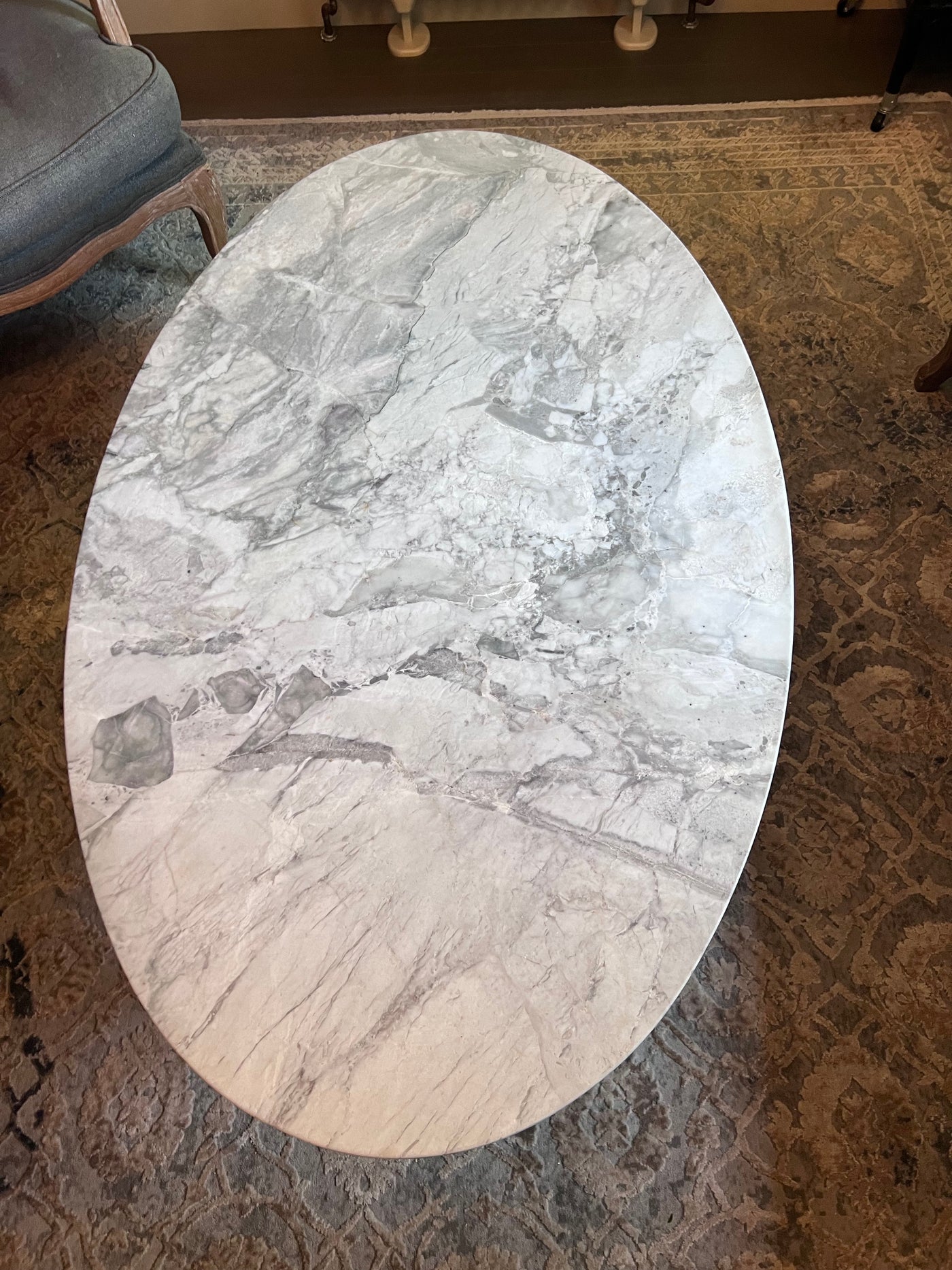Liberty Furniture Greystone Mill Oval Cocktail Table with Custom Marble Top.