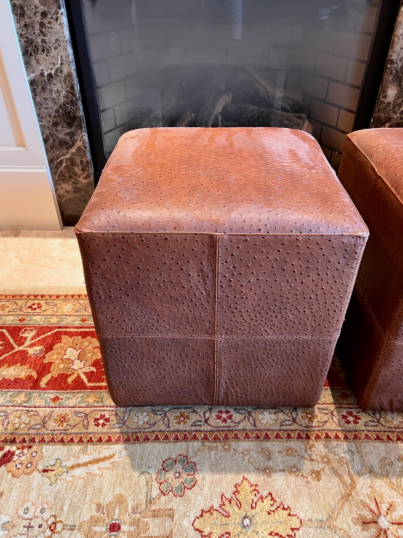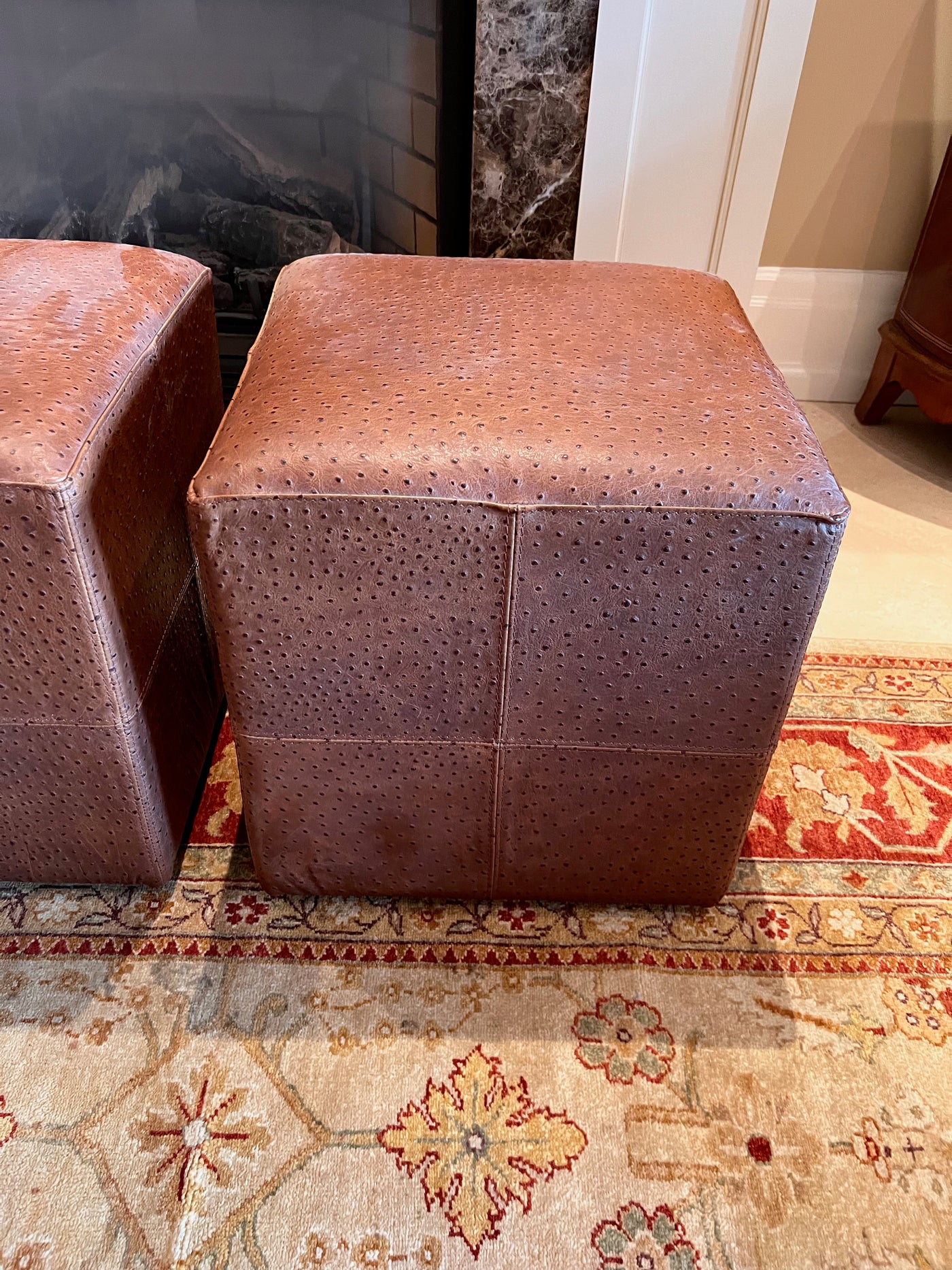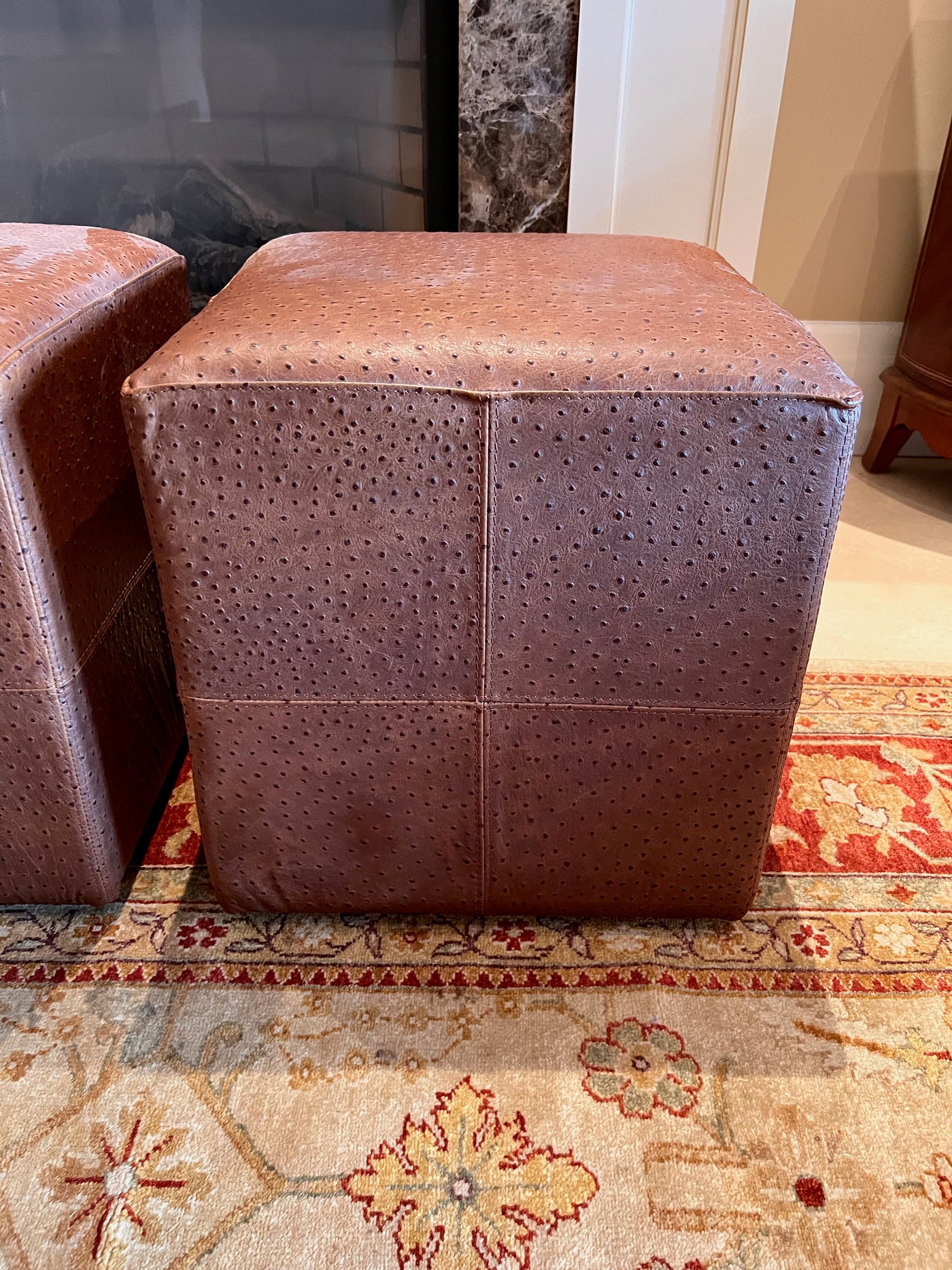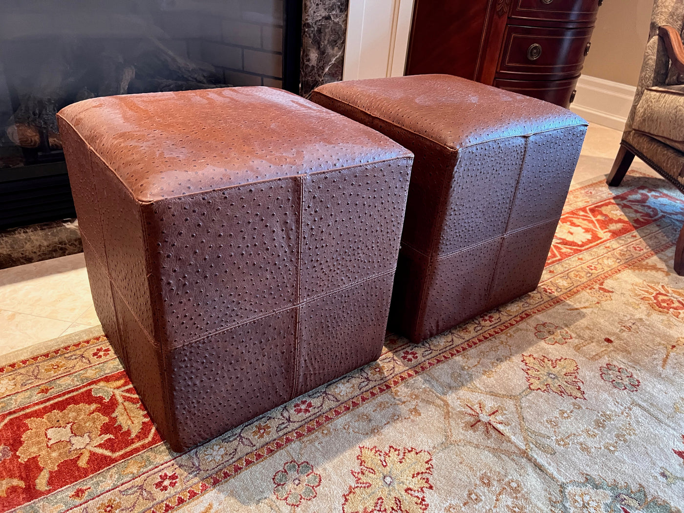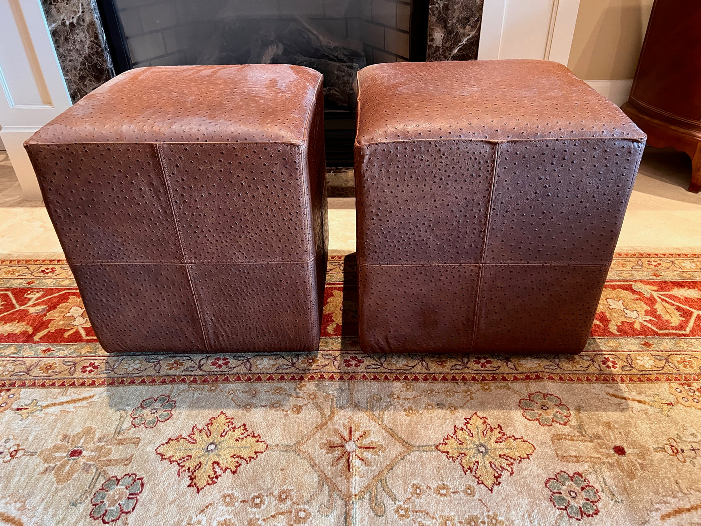 Pair of Brown Faux Leather Foot Stools on Wheels