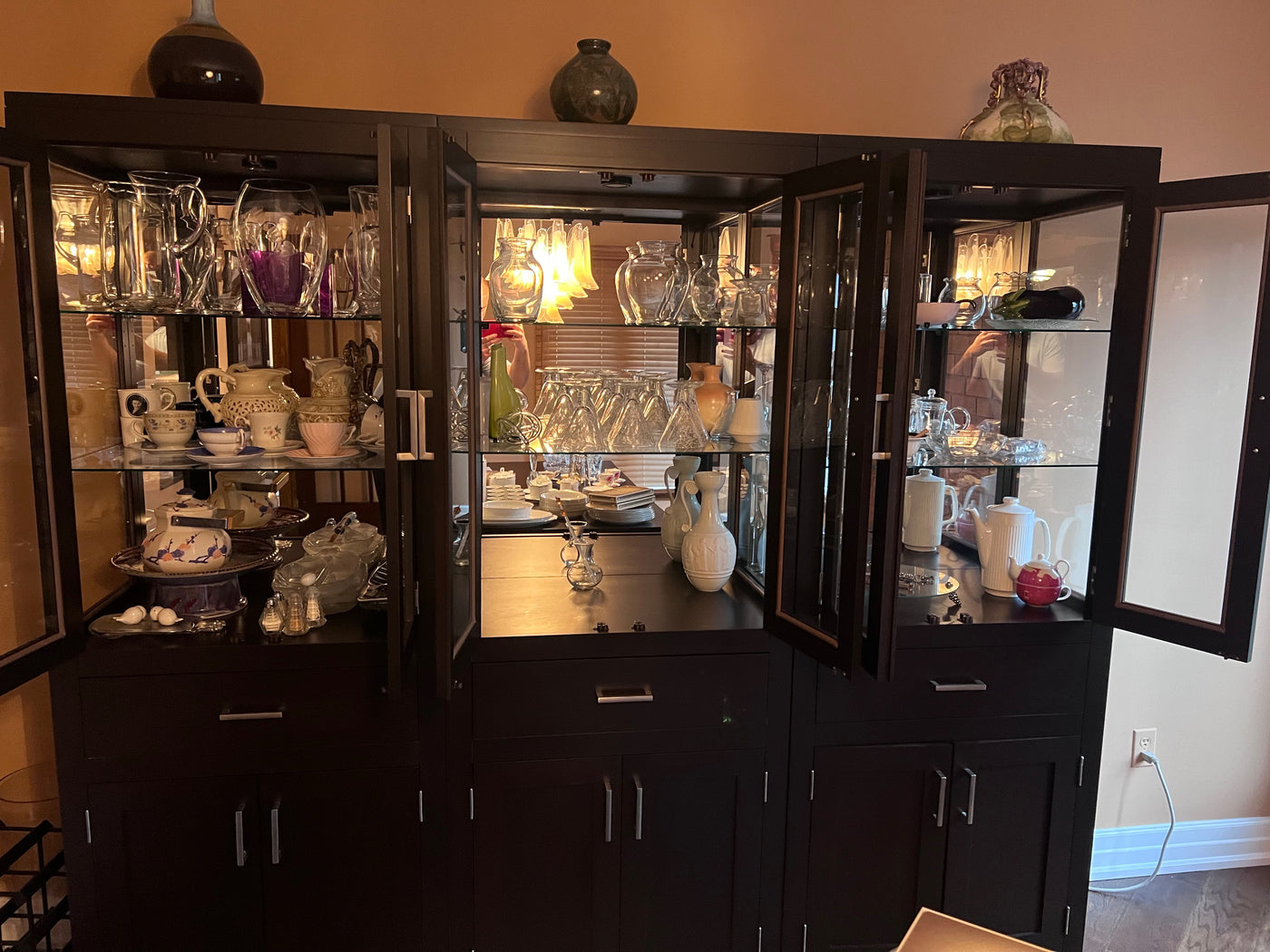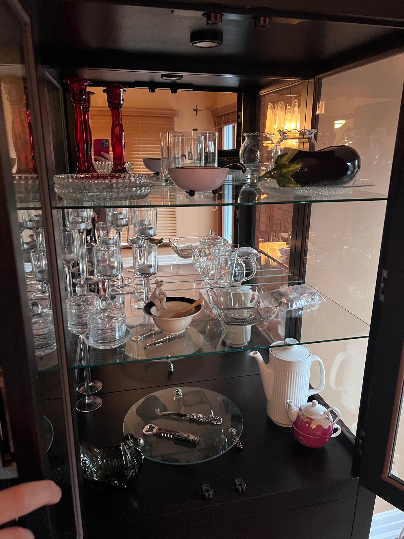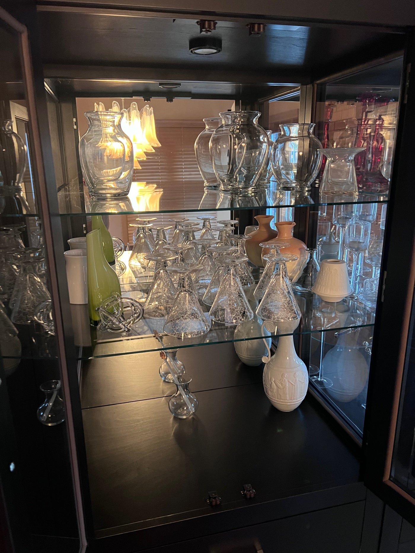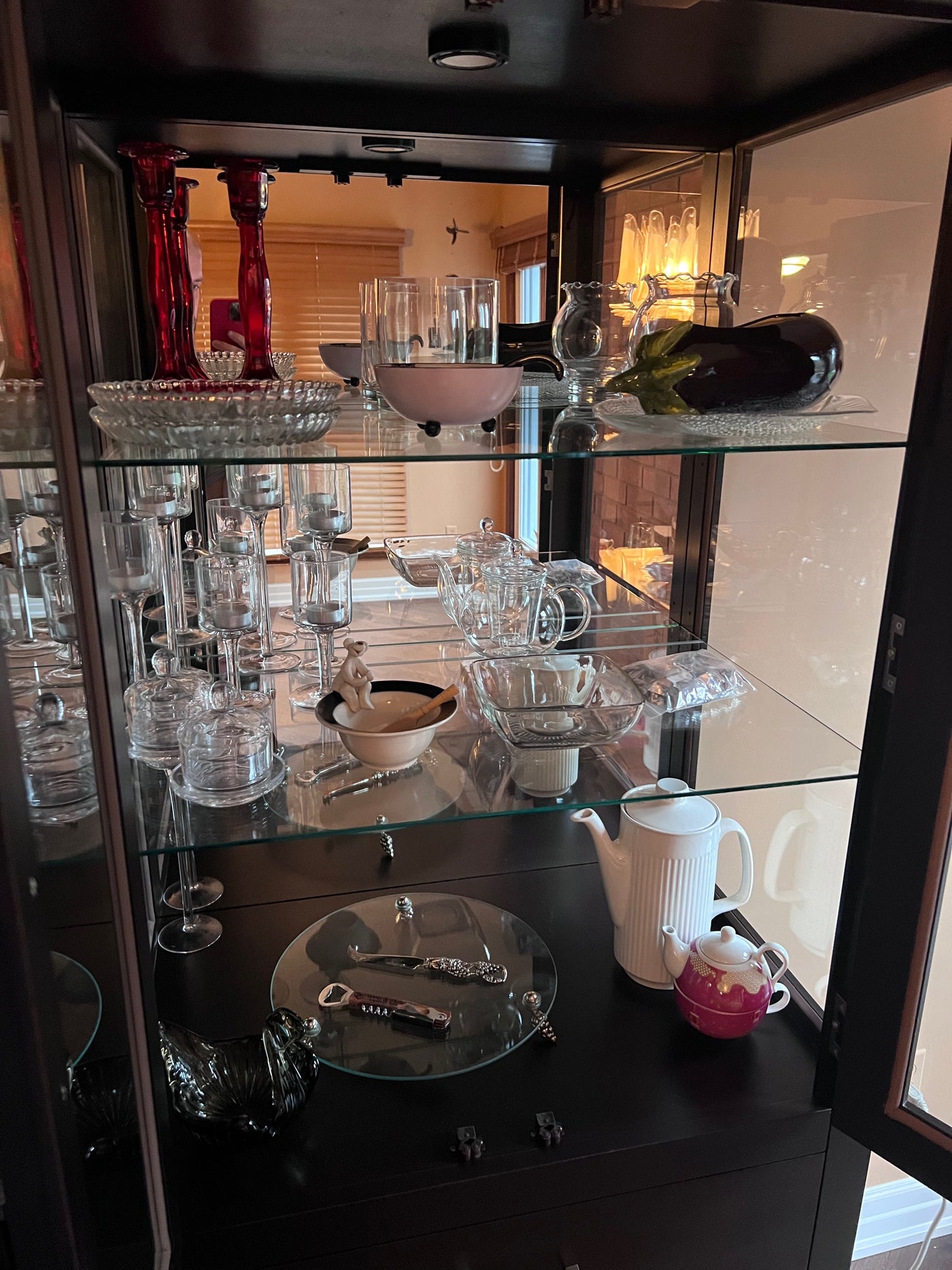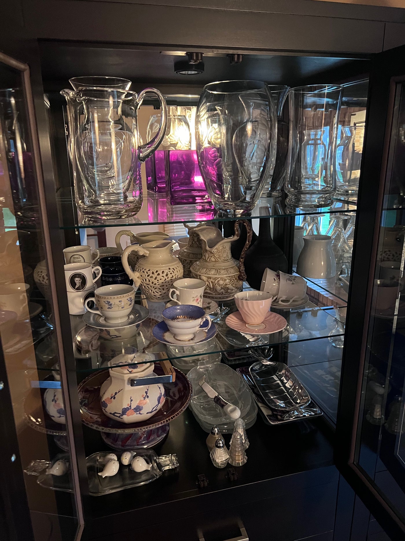 Miscellaneous Glassware, Ceramic and Decor Lot (*all items shown in cabinet).