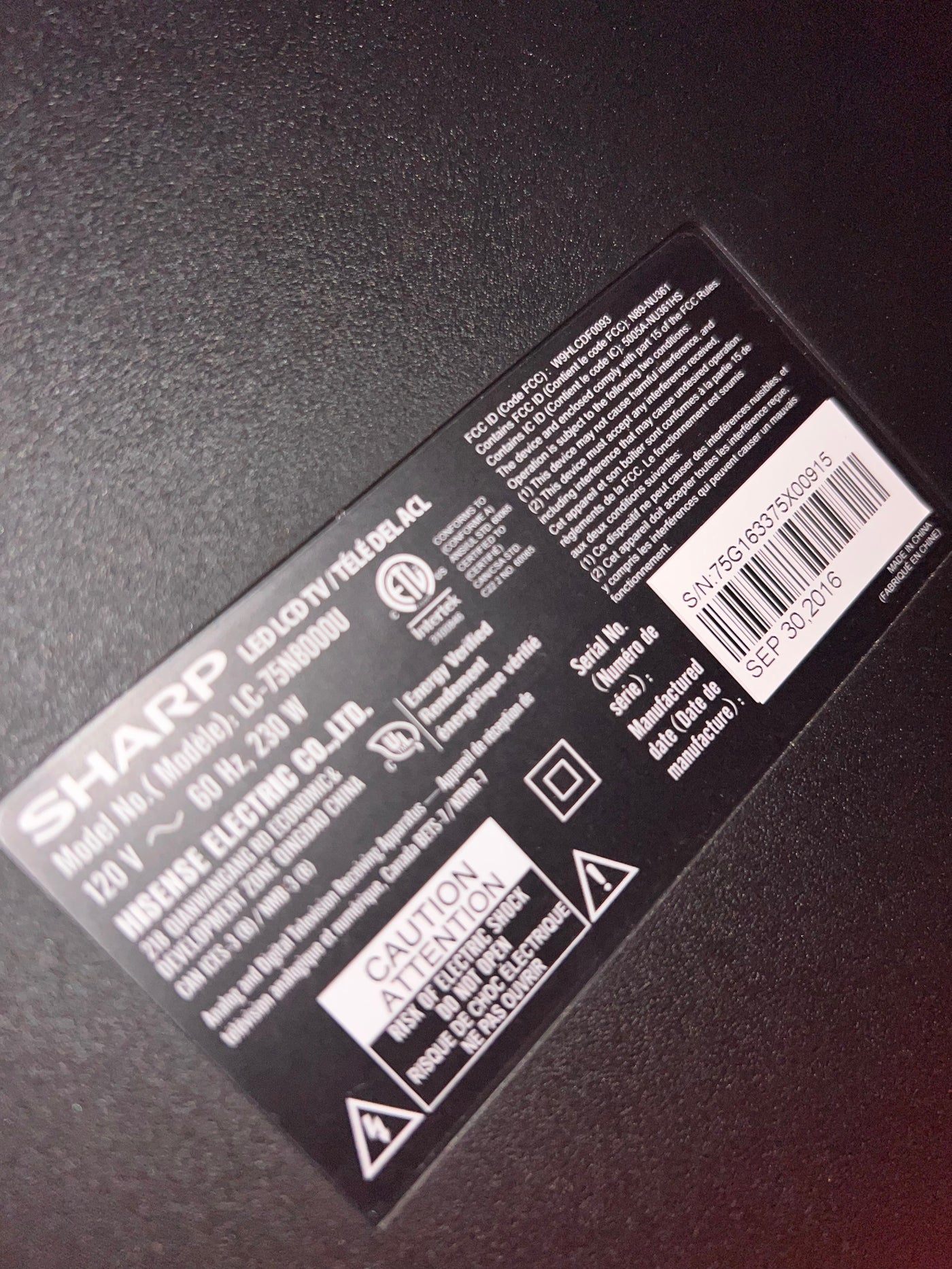 Sharp AQUOS LC-75N8000U 75" 4K Smart LCD TV.