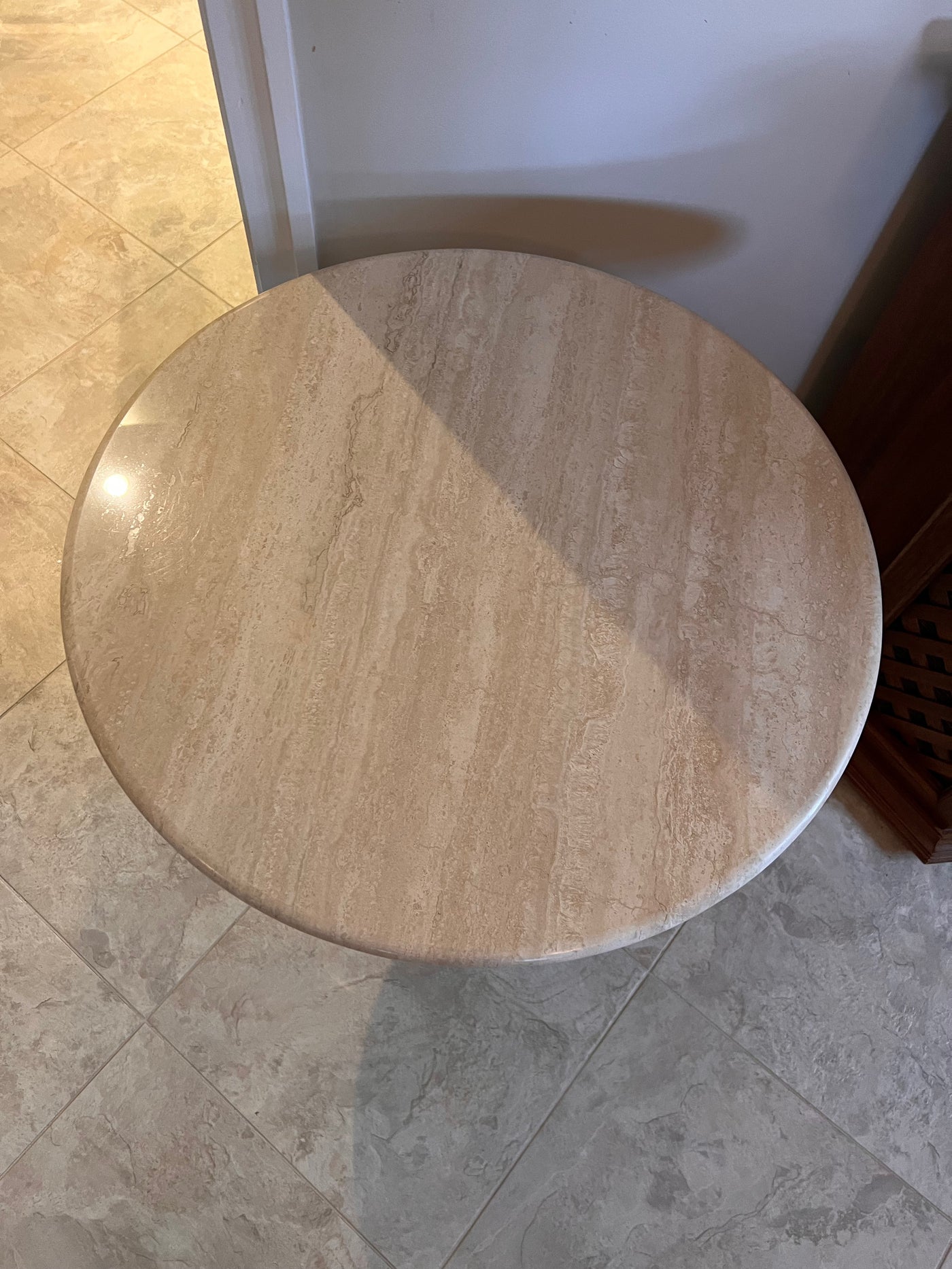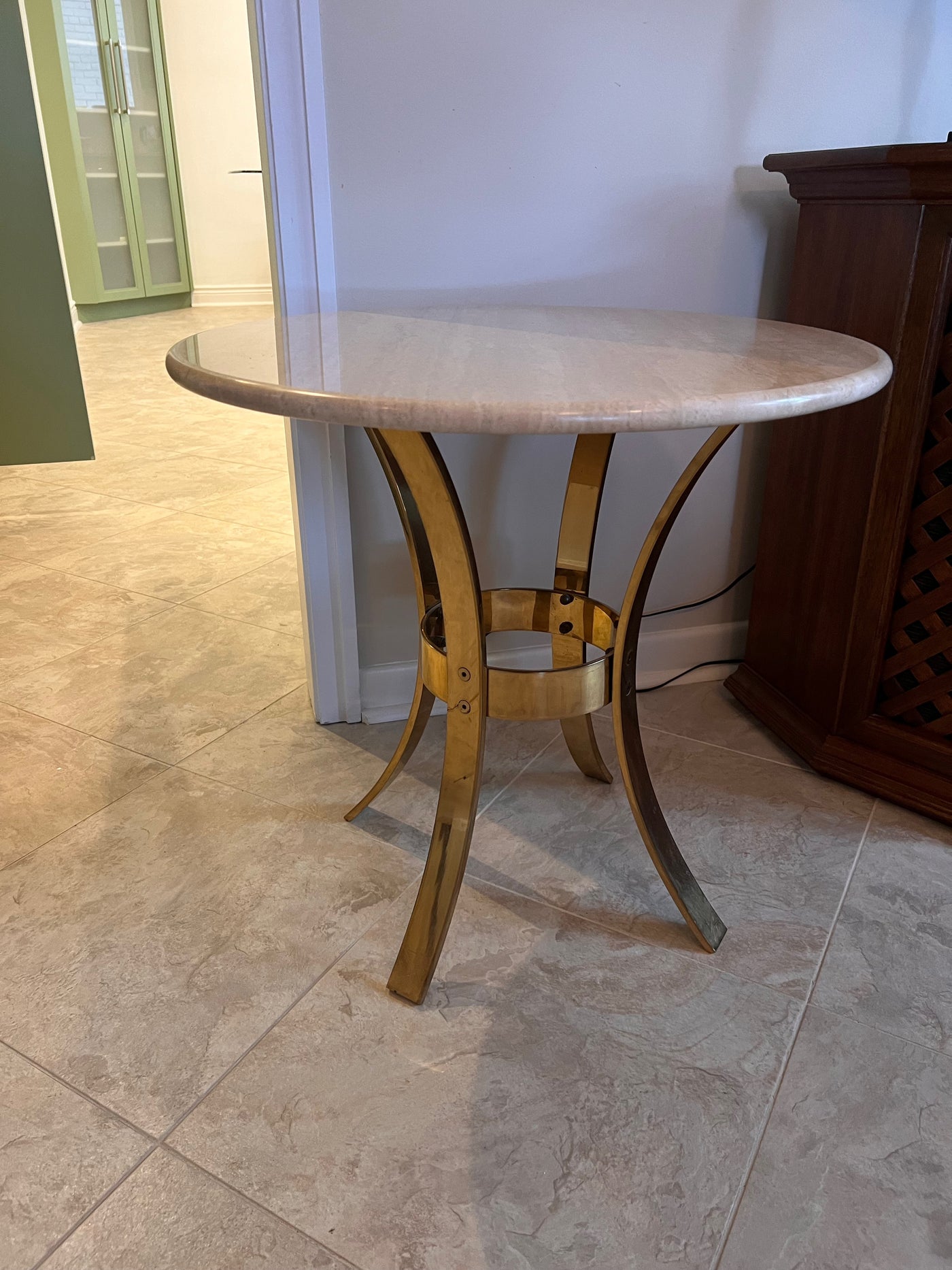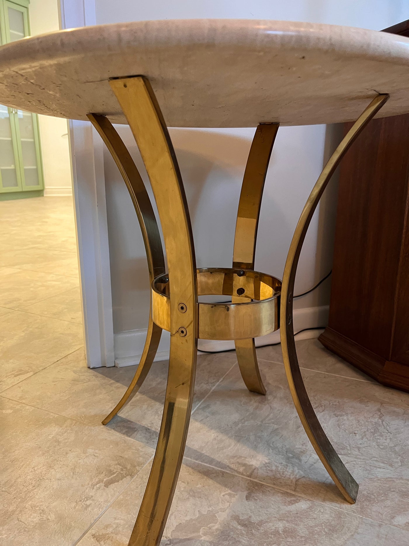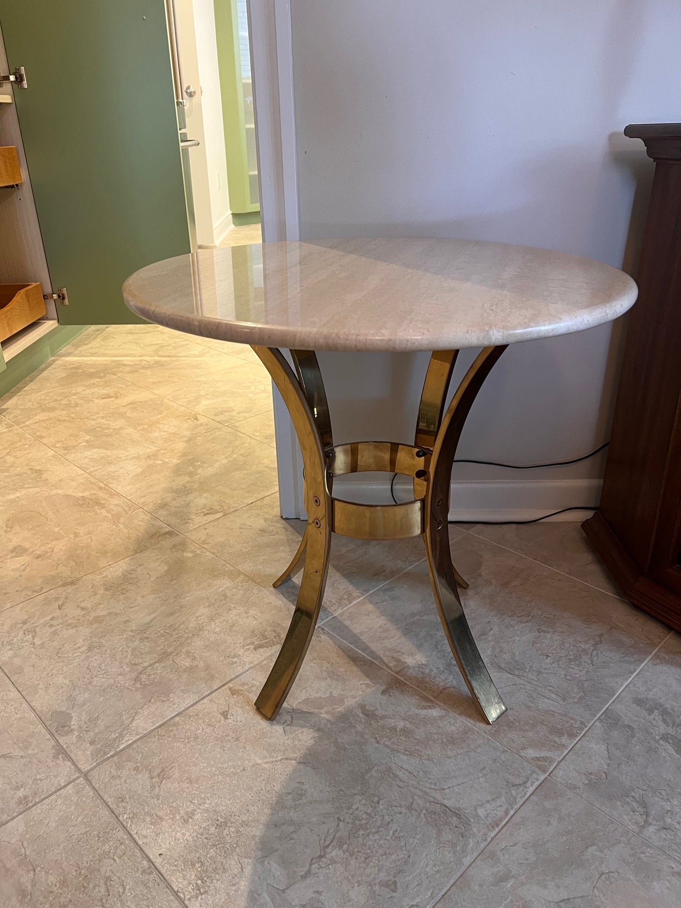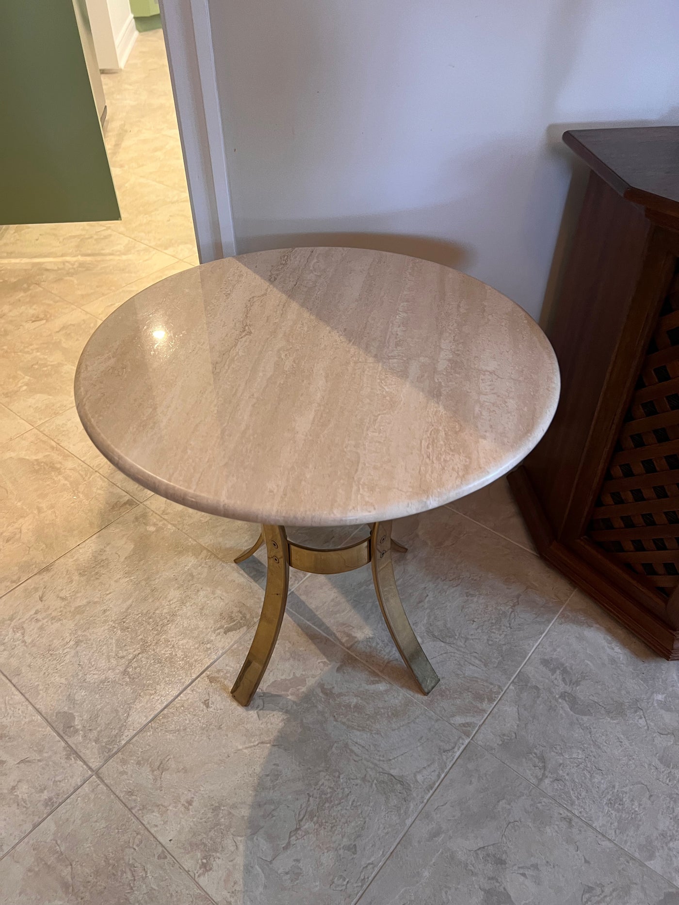 Vintage Travertine Side Table, Gold Base. The table top is sitting on the base and is not screwed in-- this is the design.