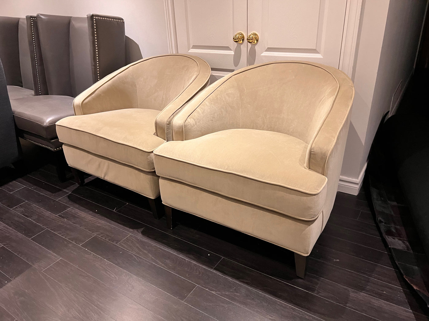 2 Sunpan Beige Microsuede Club Chairs (*retail $1,600).