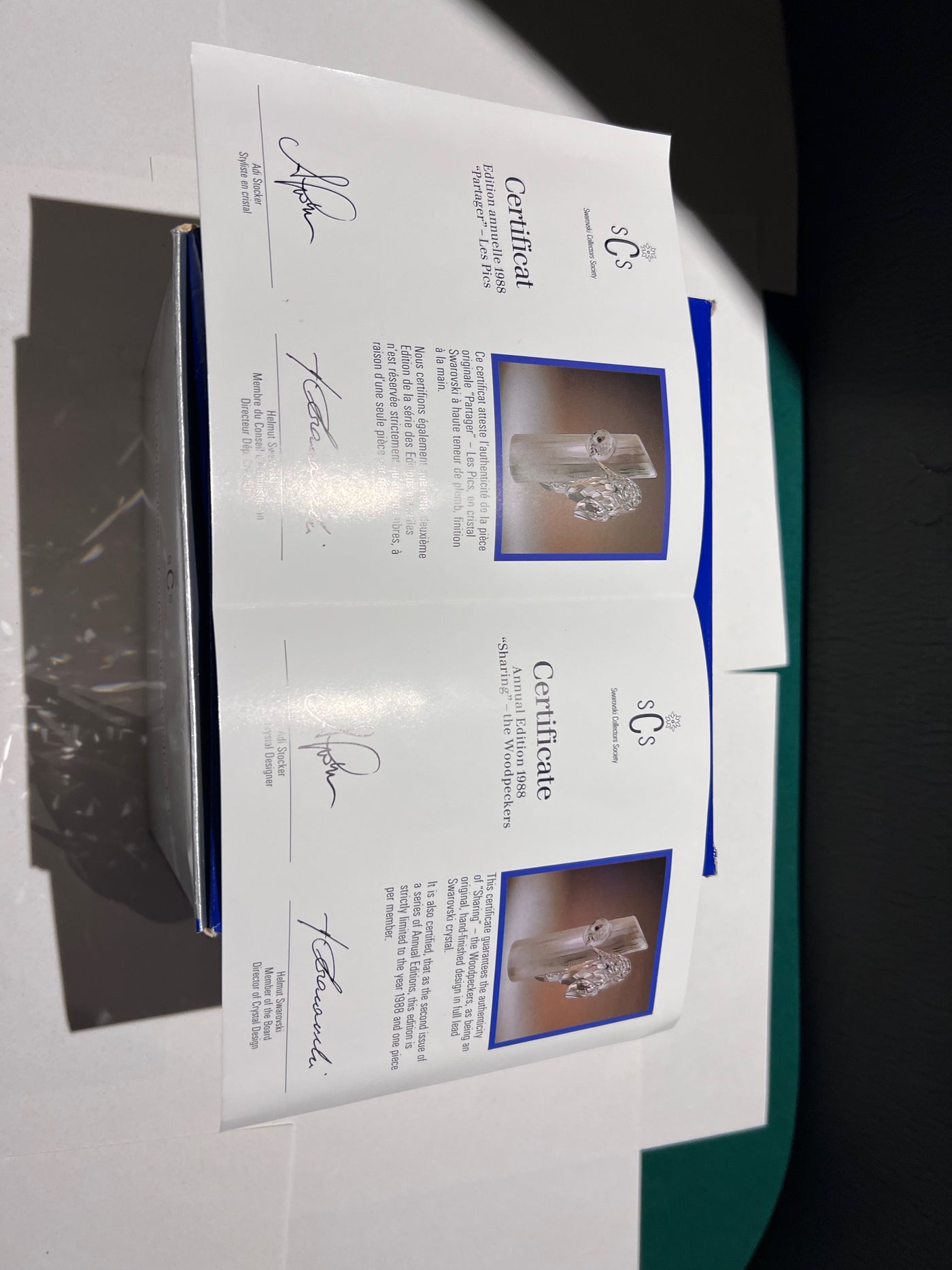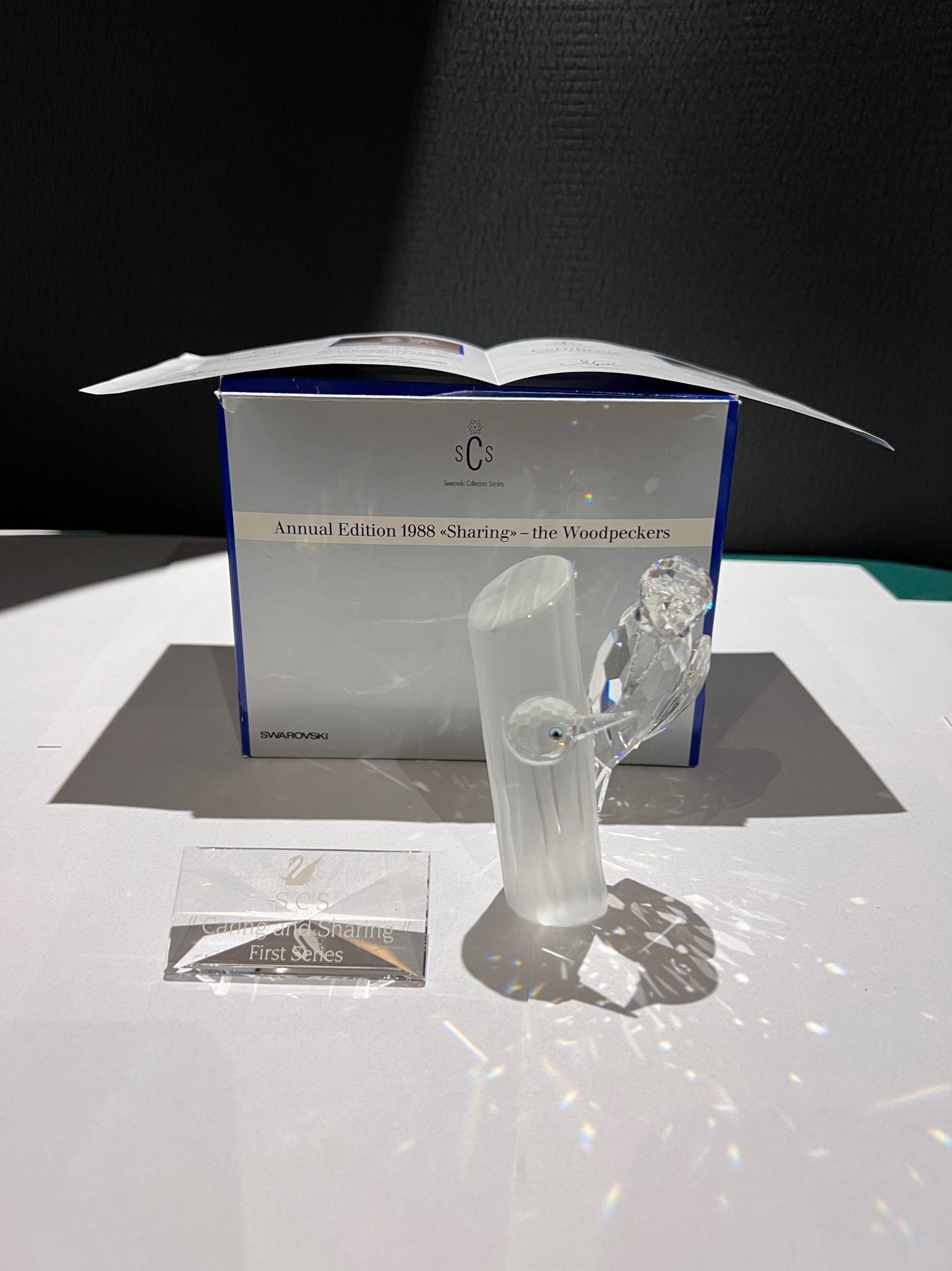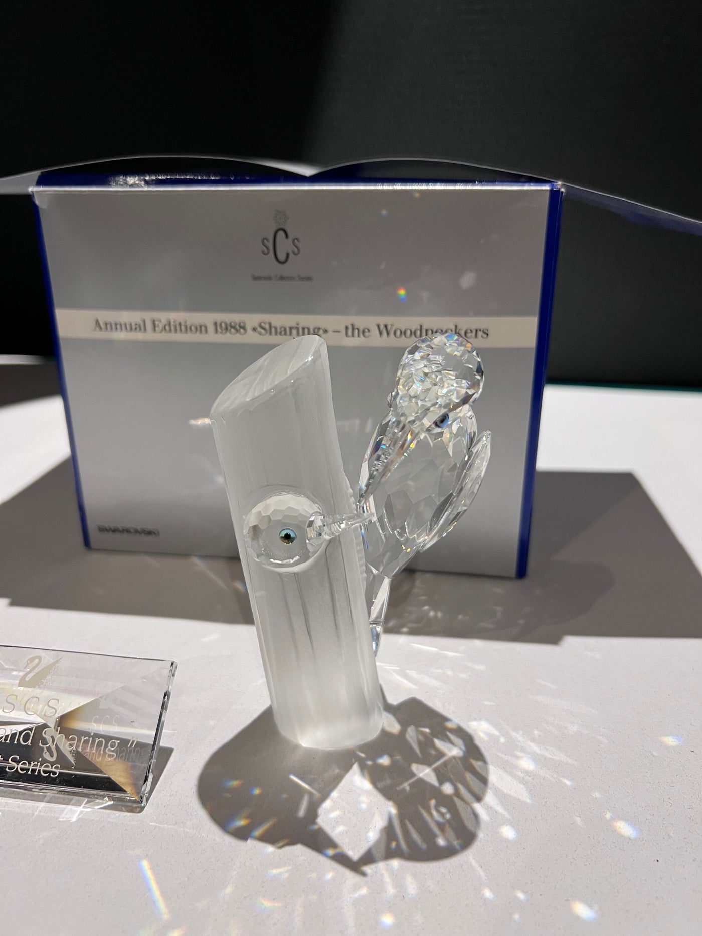Swarovski Crystal SCS Annual Edition 1988 "Sharing" The Woodpeckers +  Caring and Sharing First Series Plaque.
