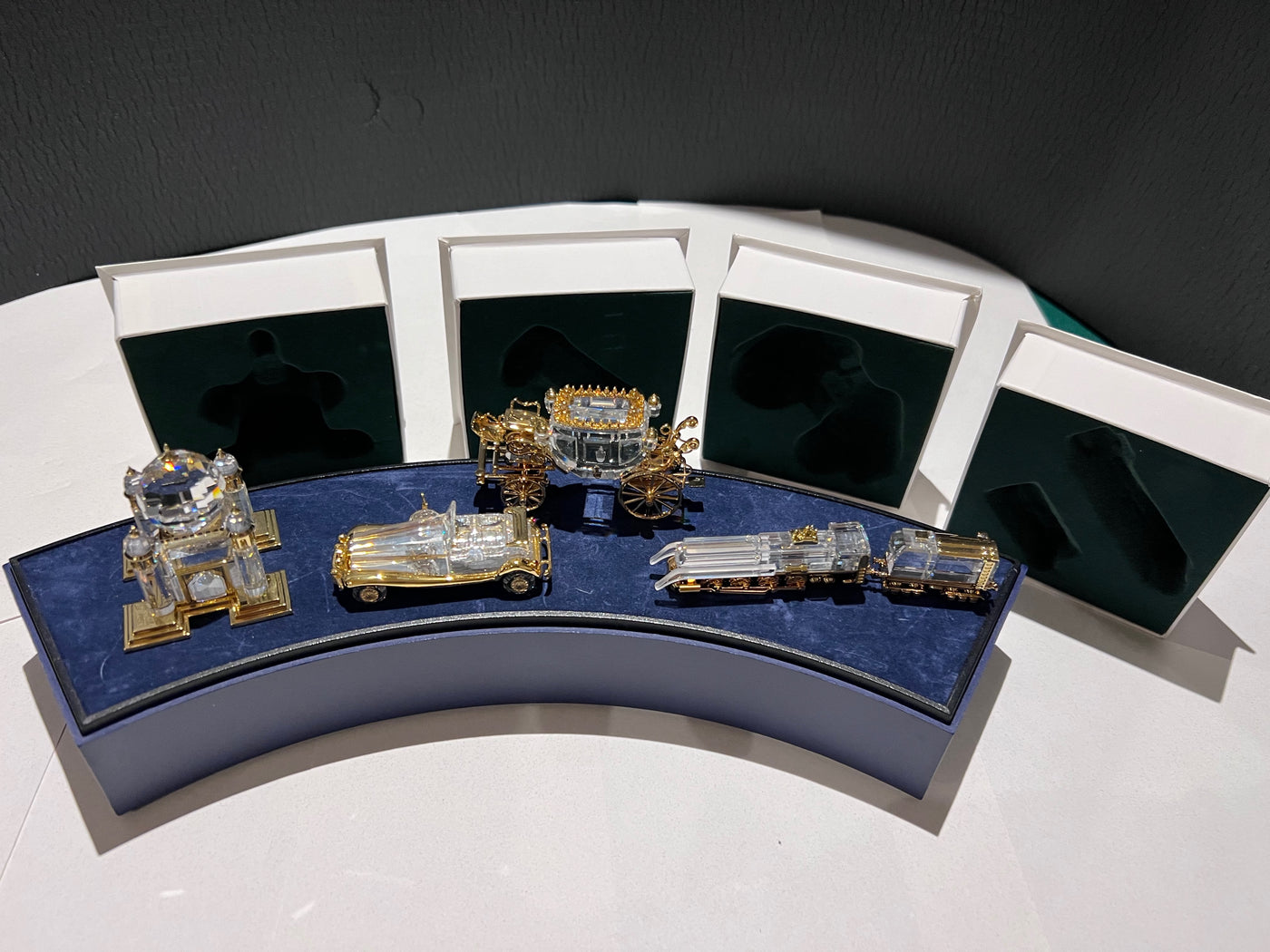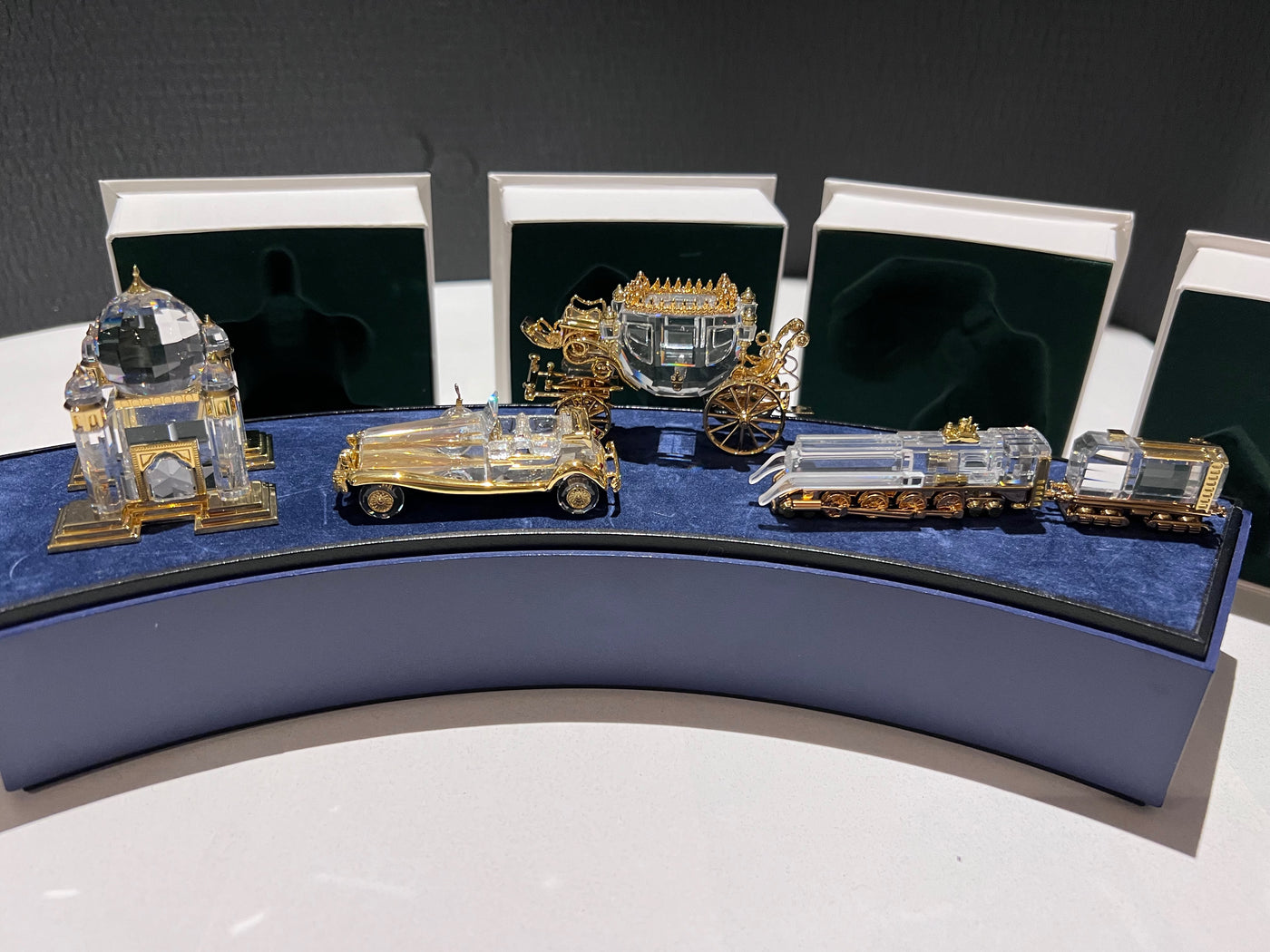 Swarovski Crystal- "Crystal Memories" Journeys Collection- Set of 4: Carriage, Taj Mahal, Limousine, Train Locomotive.