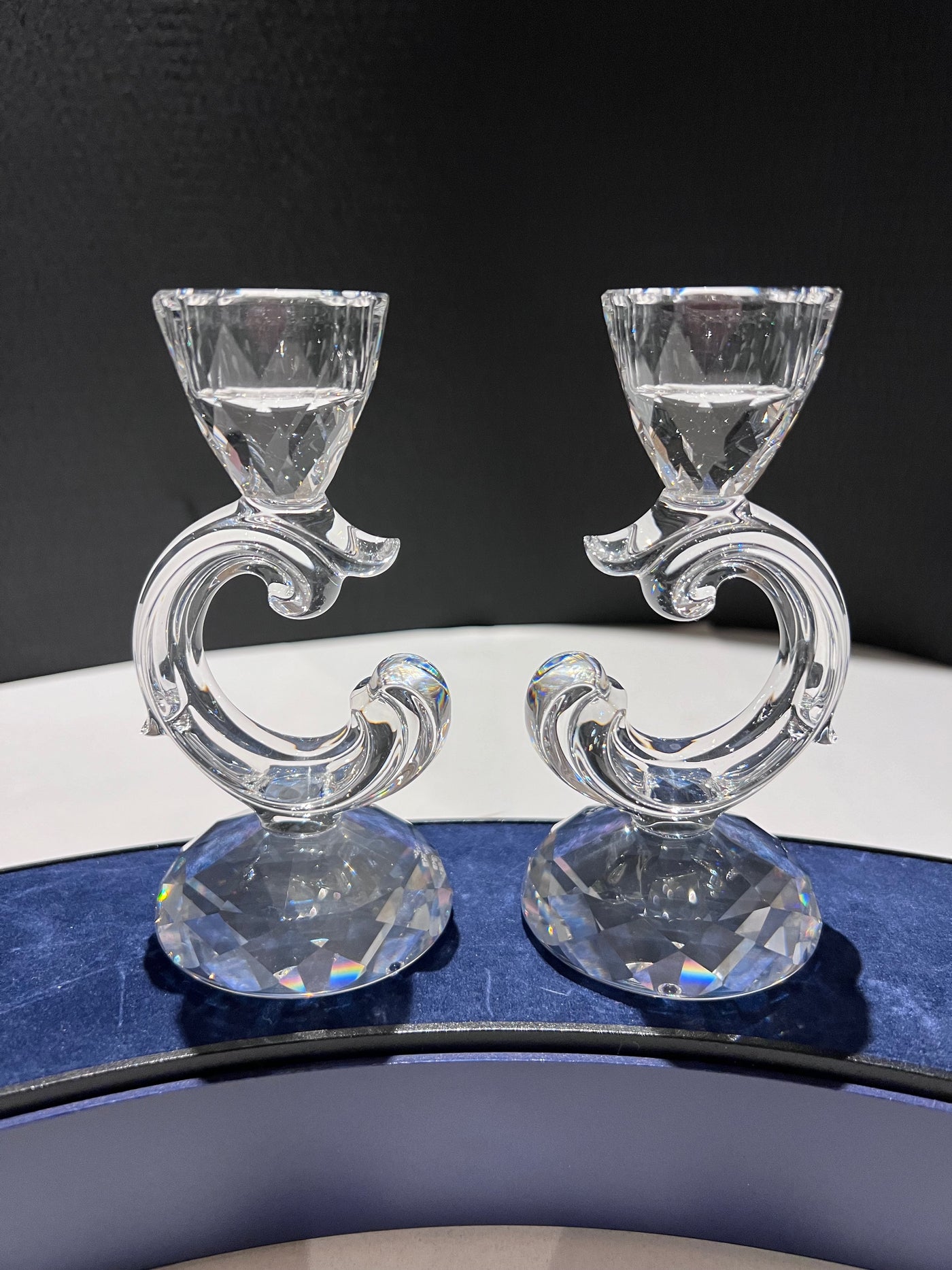 Swarovski Crystal Pair of Baroque Honeycomb Candle Holders.