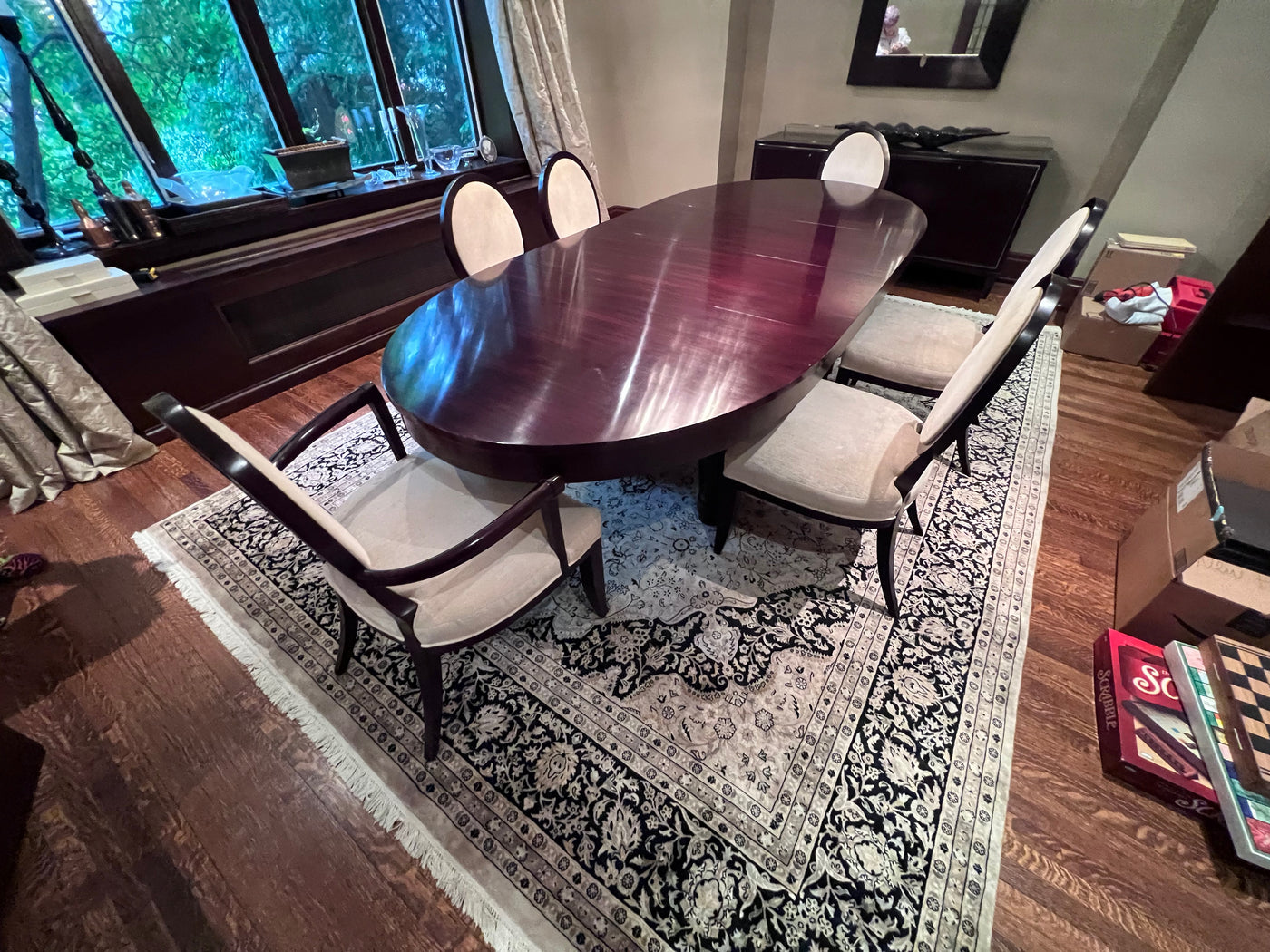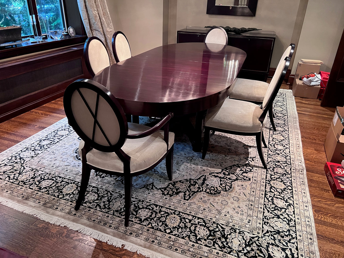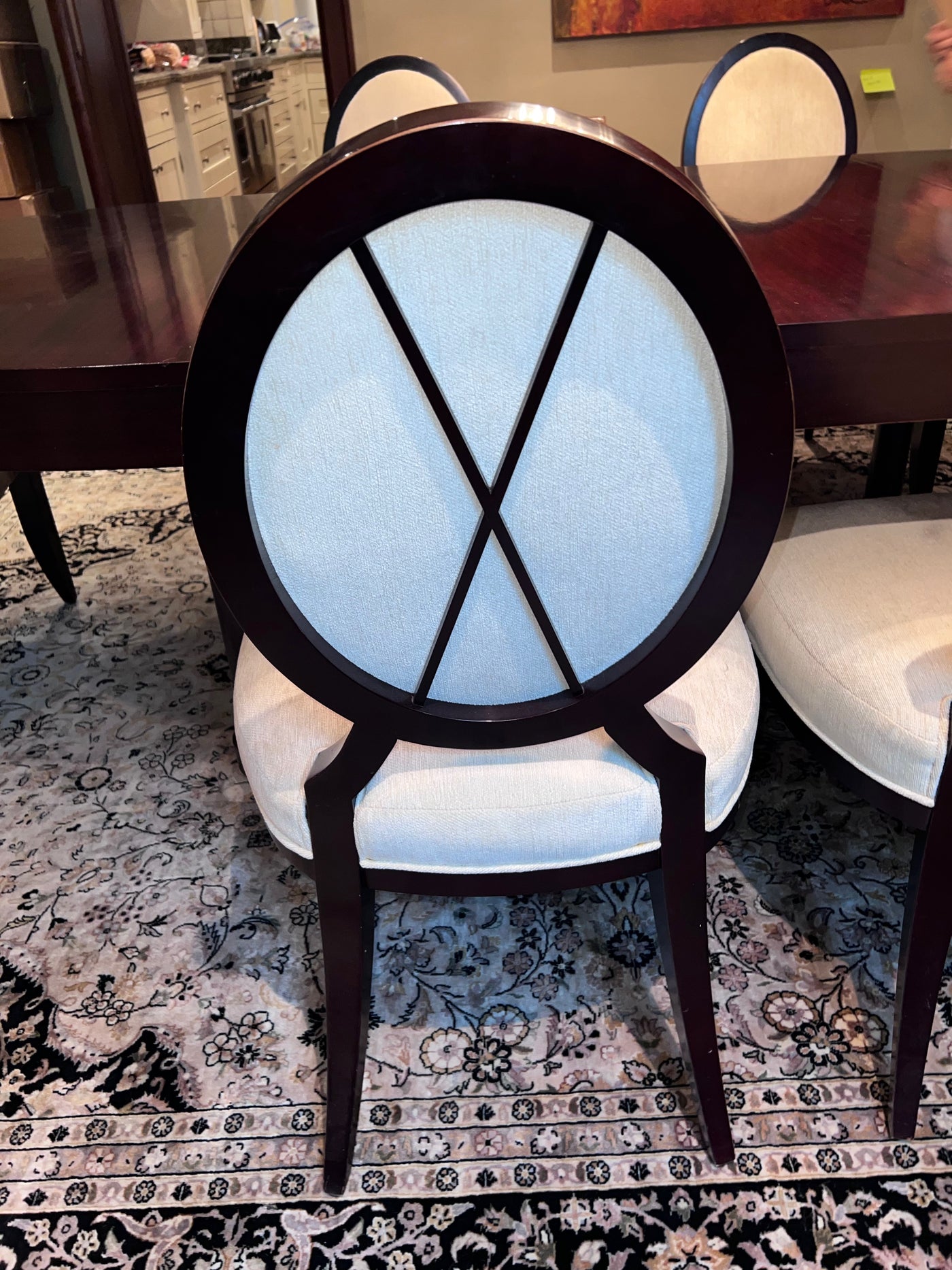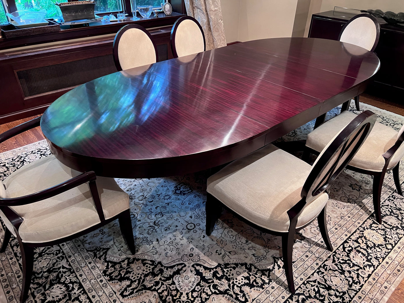 The Barbara Barry Collection by Baker Oval Dining Table + 6 "X Back" Chairs. 2 leaves included in the table.