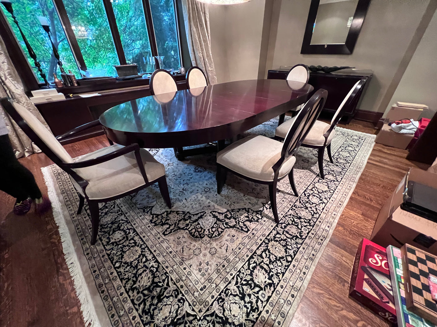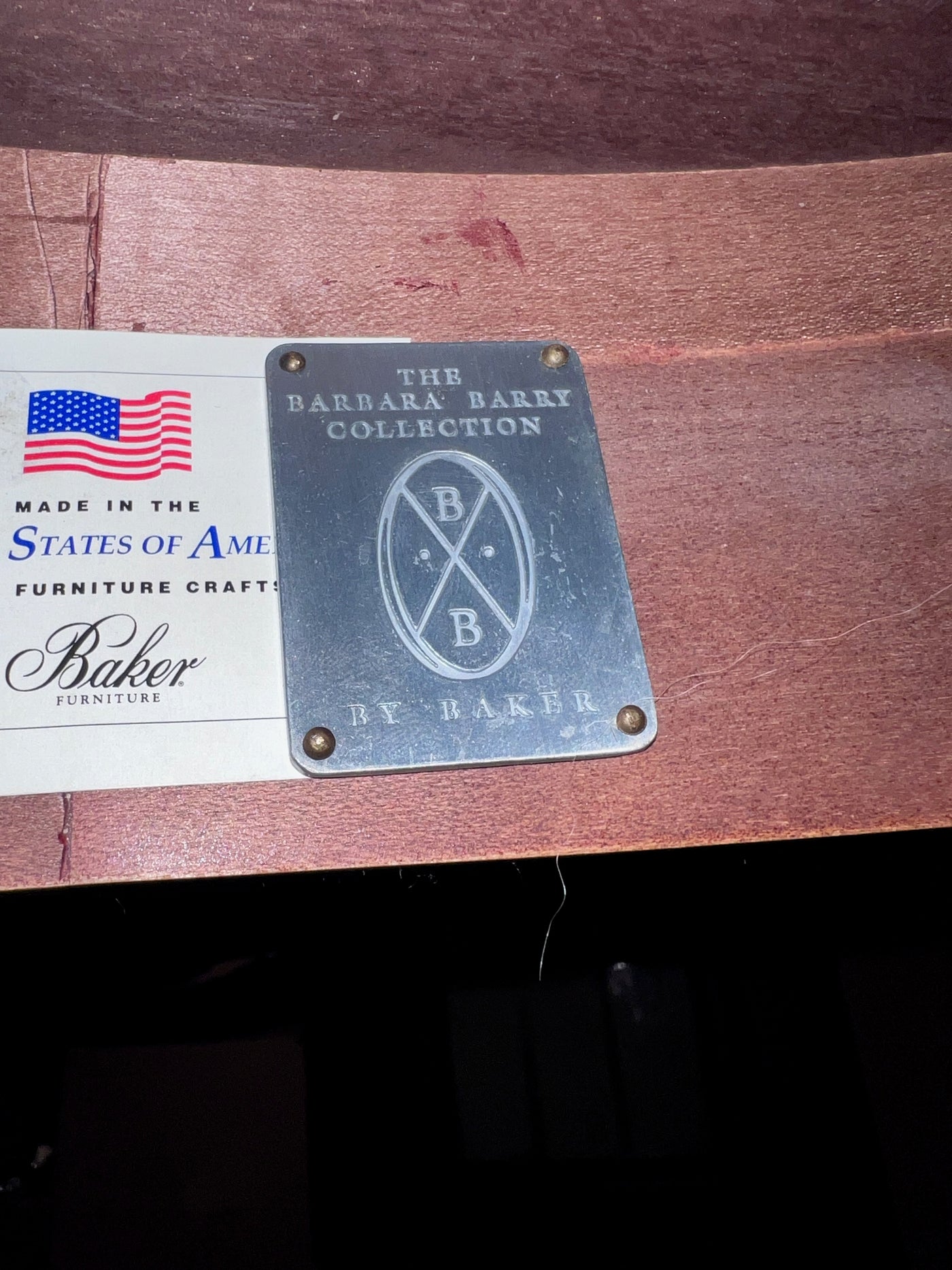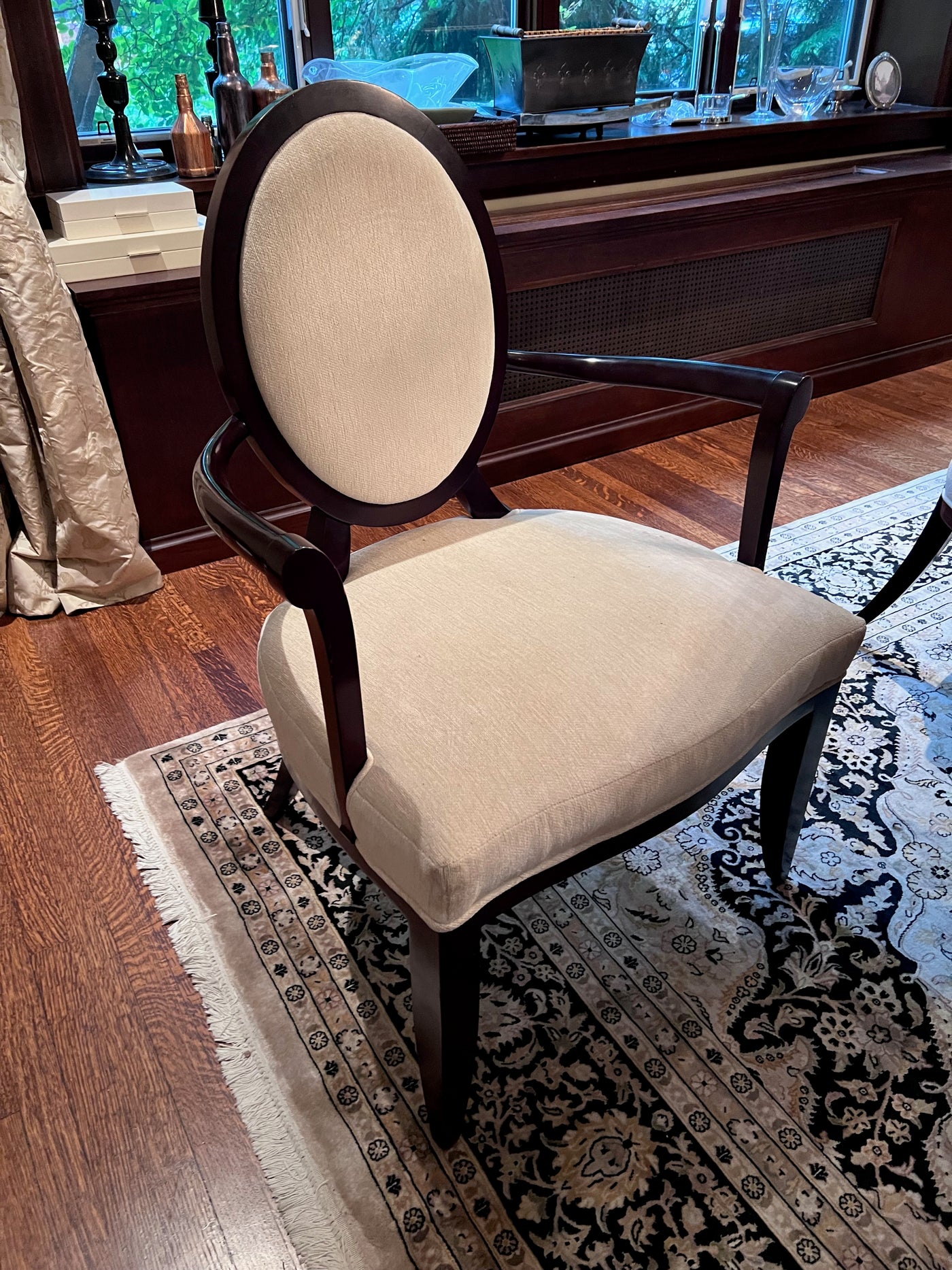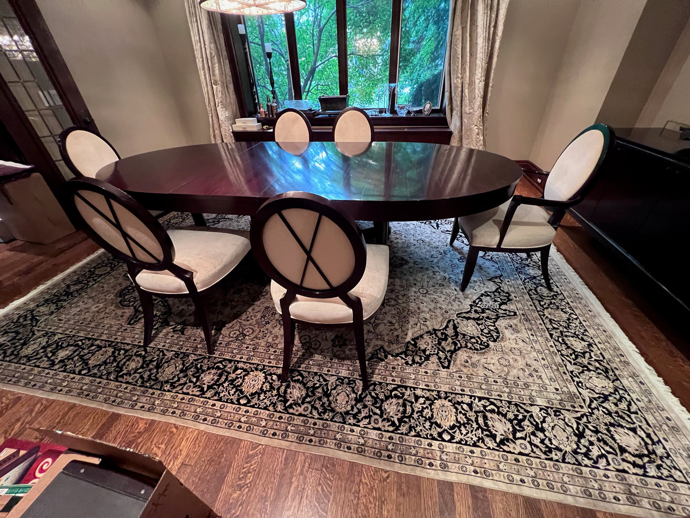 The Barbara Barry Collection by Baker Oval Dining Table + 6 "X Back" Chairs. 2 leaves included in the table.