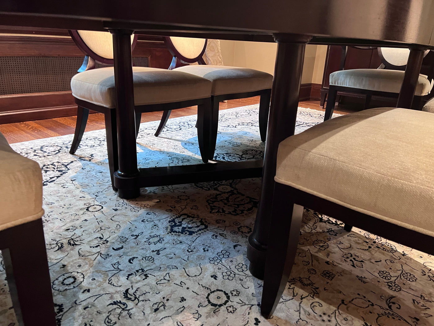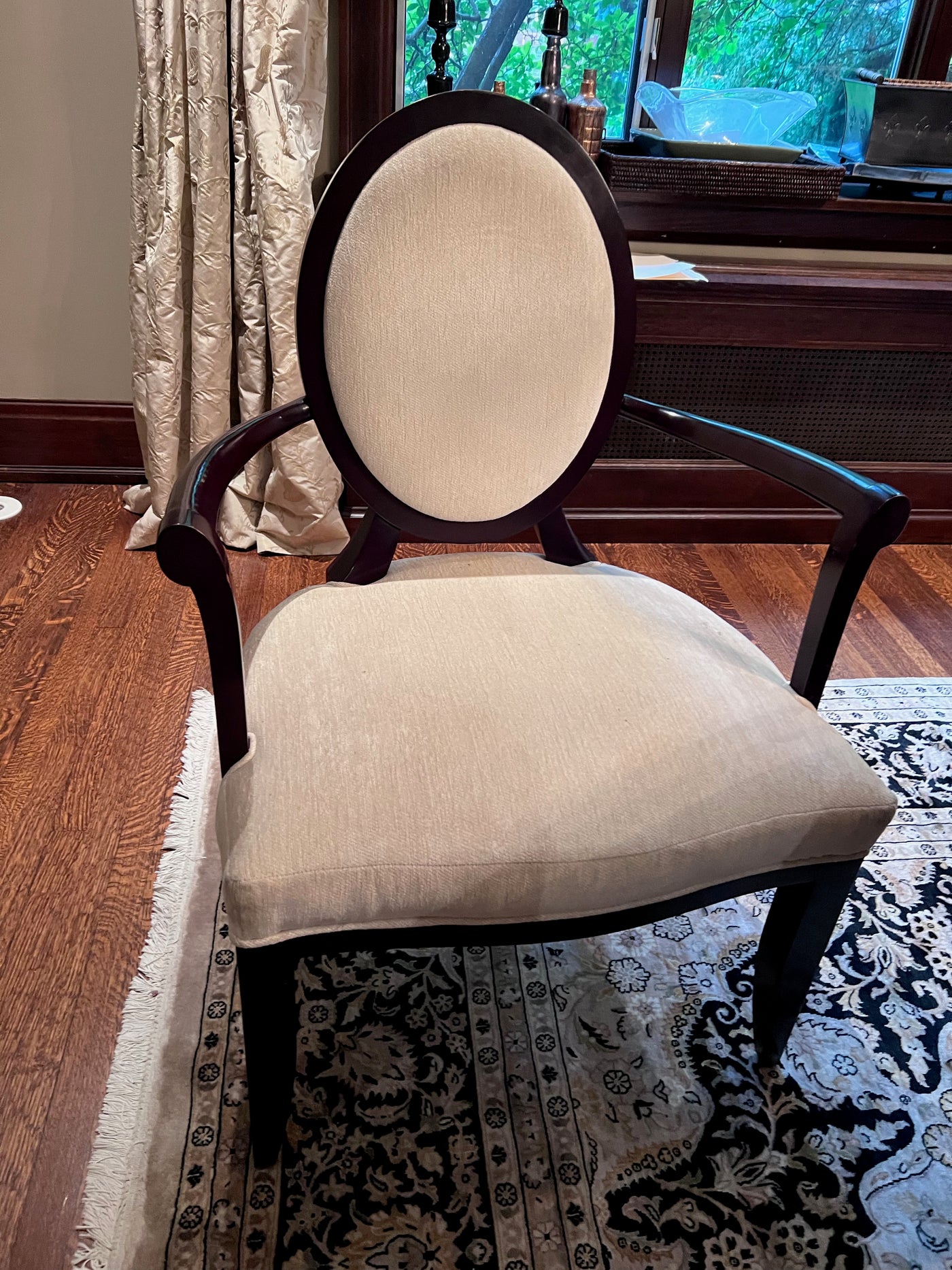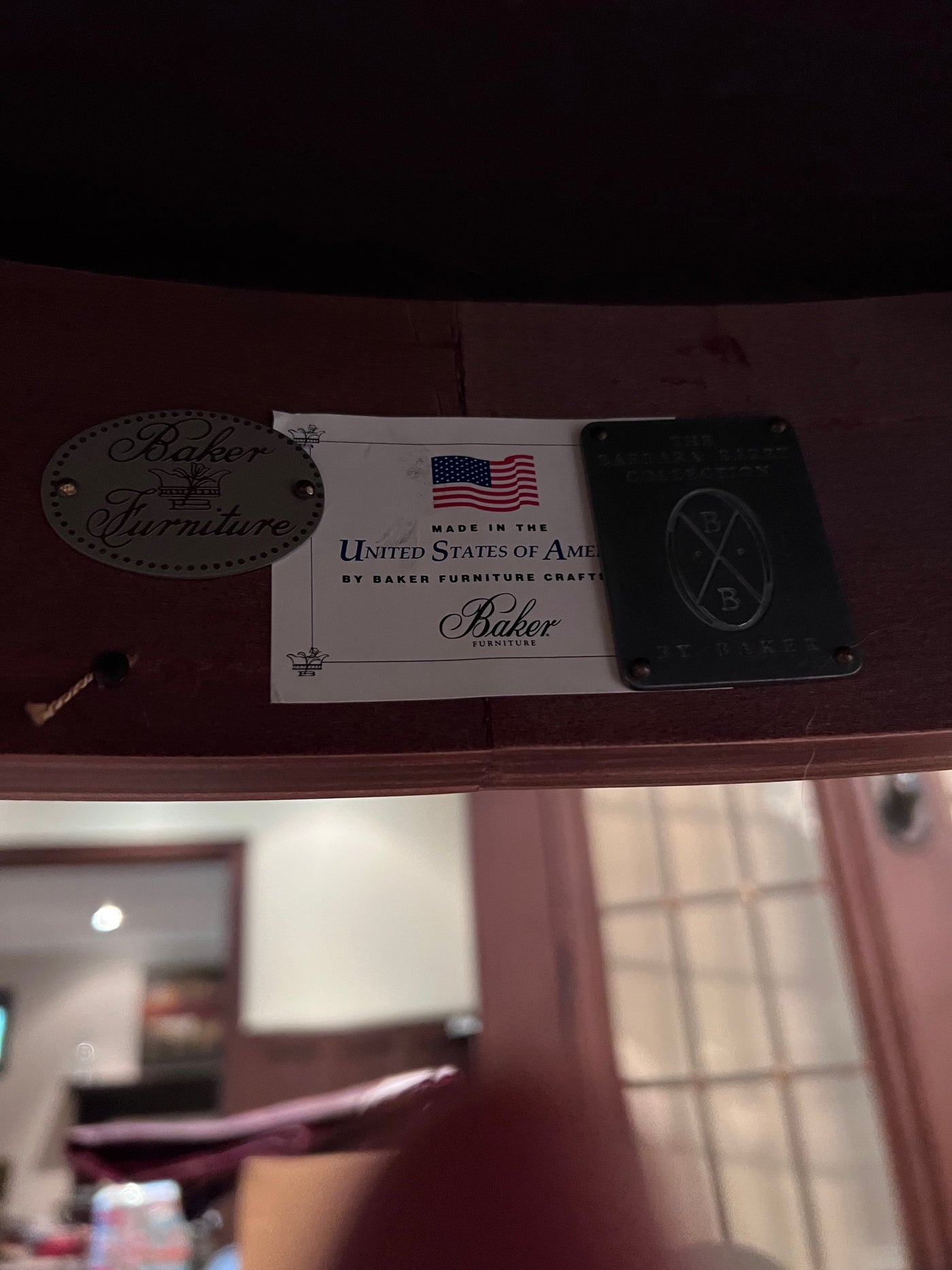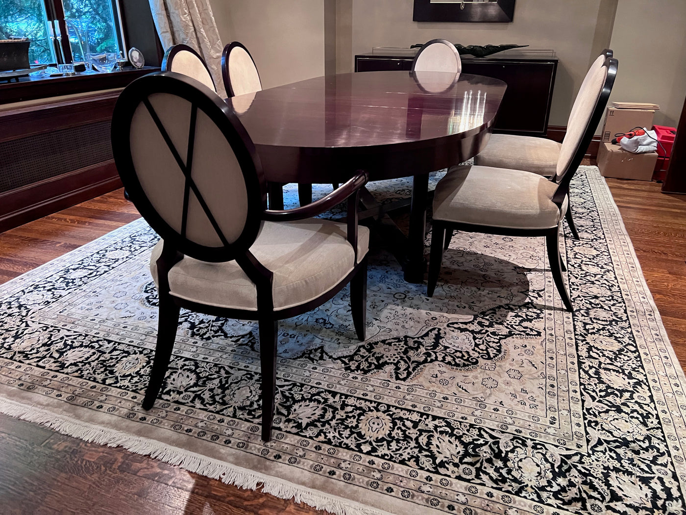 The Barbara Barry Collection by Baker Oval Dining Table + 6 "X Back" Chairs. 2 leaves included in the table.