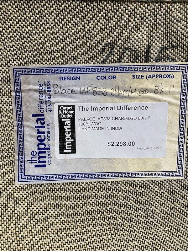The Imperial Carpet & Home- Charcoal and Gold Hand Made Indian Wool Rug- 8x11ft.