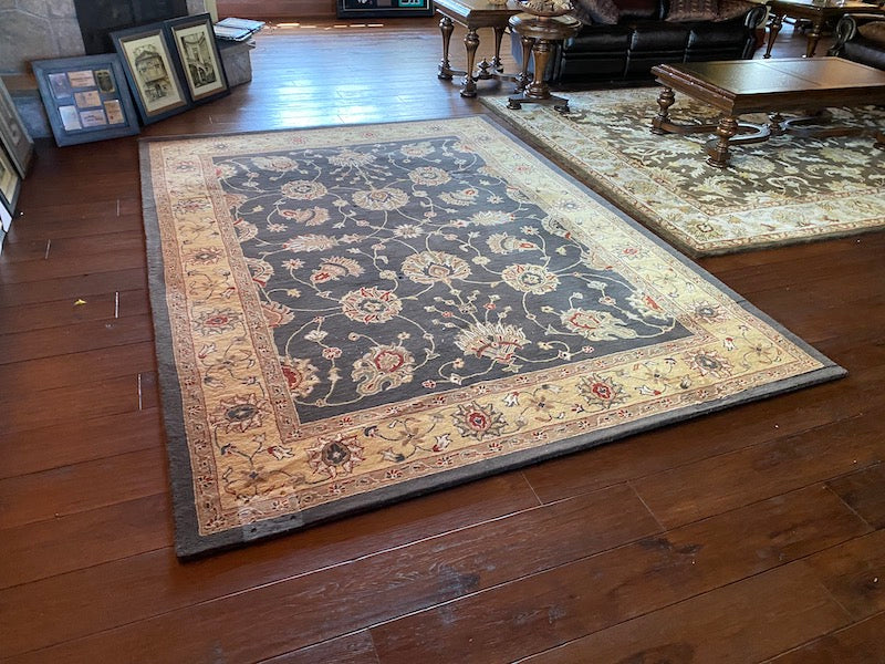 The Imperial Carpet & Home- Charcoal and Gold Hand Made Indian Wool Rug- 8x11