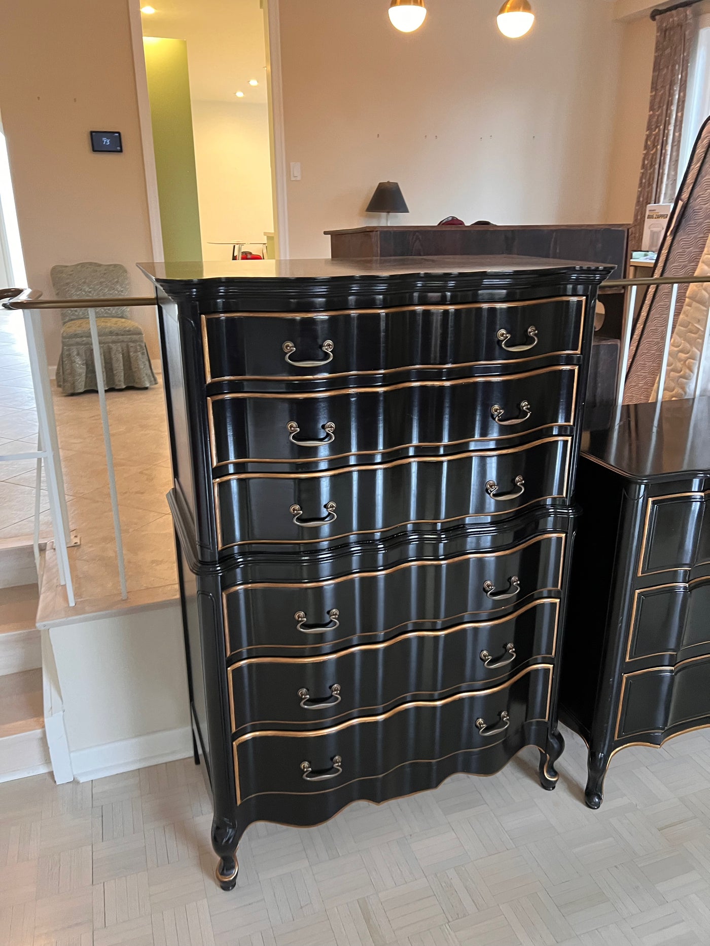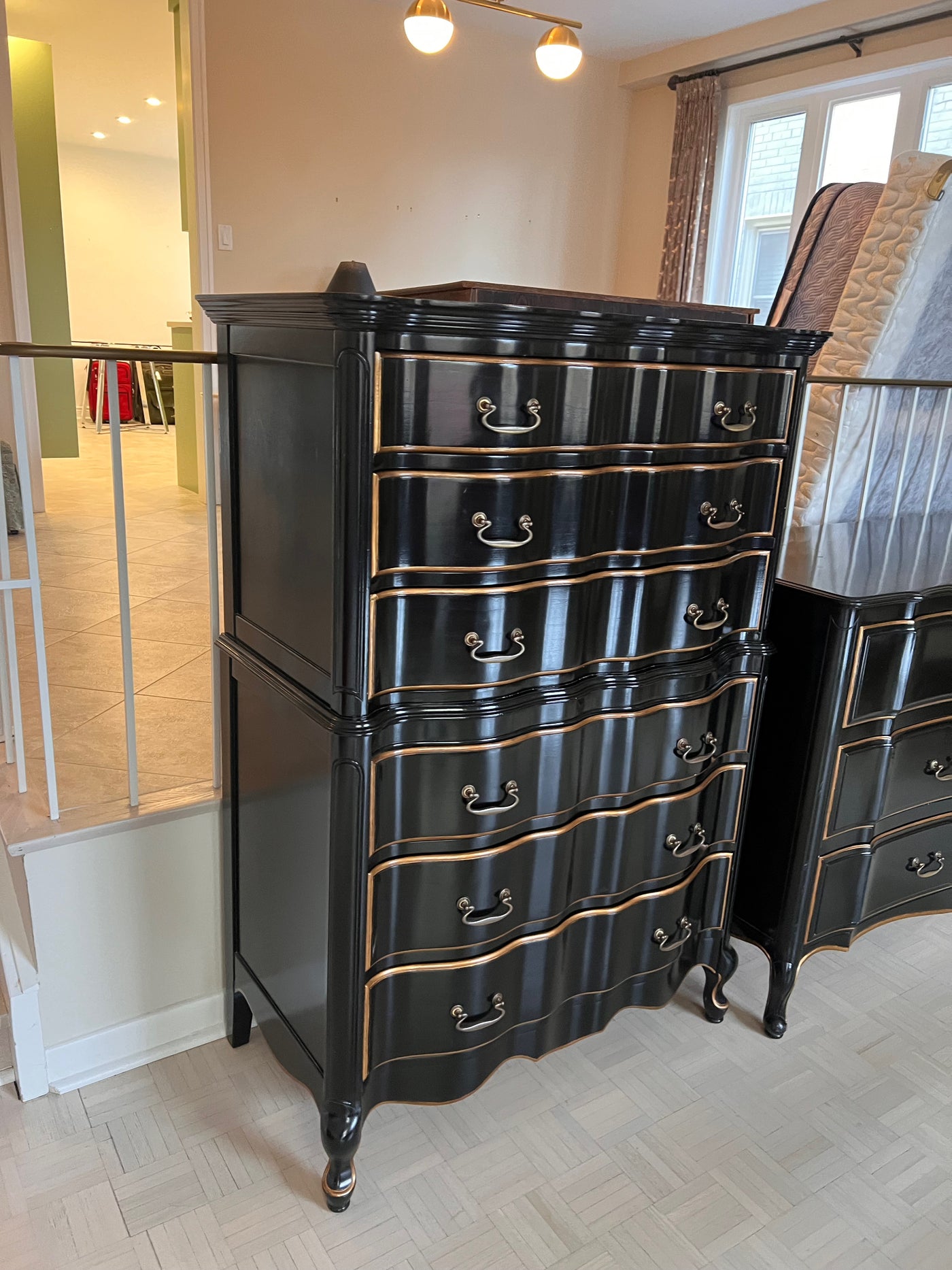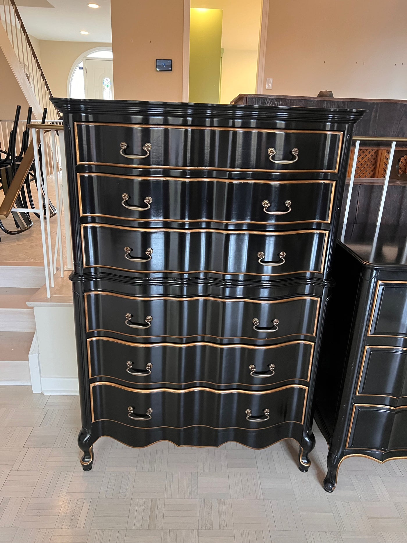Vintage Black Re-Finished Highboy Dresser. In excellent condition.